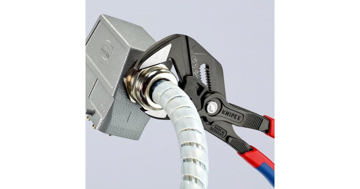 Der Knipex Zangenschlüssel 86 02 250 vereint Zange und Schraubenschlüssel in einem einzigen Gerät. Er ersetzt einen ganzen Satz Schraubenschlüssel, sowohl metrisch als auch zöllig. Er lässt sich per Knopfdruck schnell direkt am Werkstück einstellen und packt stufenlos alle Greifweiten bis 52mm (2"). Dabei rastet der Gelenkbolzen sicher ein und vermeidet unbeabsichtigtes Verstellen. Die glatten Greifbacken stehen genau parallel zueinander und packen das Werkstück, ohne dabei Kanten und empfindliche Oberflächen zu beschädigen, sogar direkt auf Chrom. Die spezielle Mechanik des Zangenschlüssels verstärkt die aufgebrachte Handkraft um das 10-fache, damit hält er Werkstücke sicher wie ein Schraubstock. Auch flache Gegenstände lassen sich dank der hohen Presskraft und der parallel geführten Backen hervorragend greifen und bearbeiten. Die Knipex Zangenschlüssel haben zwei gelaserte Skalen, an der Vorderseite metrisch, an der Rückseite zöllig. Damit kann man bei schwieriger zu erreichenden Werkstücken die Greifweite auch vorab einstellen. Der Knipex Zangenschlüssel 86 02 250 ist aus Chrom-Vanadium-Elektrostahl geschmiedet, ölgehärtet und somit extrem robust. Die Griffe sind dank Mehrkomponenten-Hüllen besonders rutschsicher und komfortabel.Art.-Nr.: 1865300
