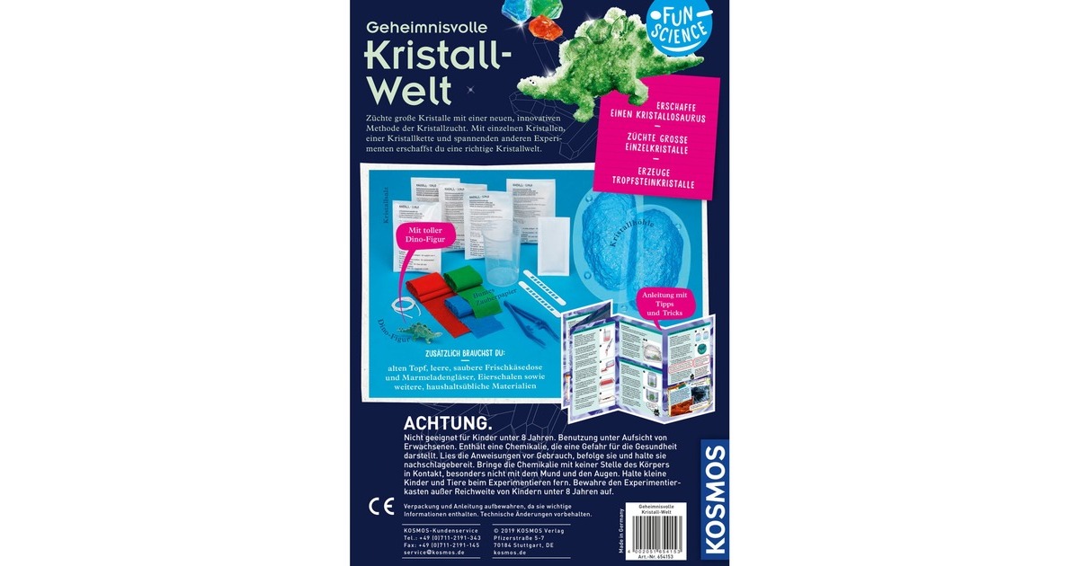 Kristalle züchten und färben mit innovativen Methoden. Dabei entstehen glitzernde Elemente in magischer Kristallhöhle und große Einzelkristalle.Art.-Nr.: 1524759