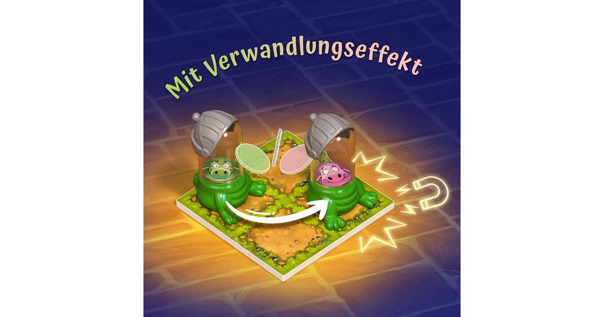 Hier ist Magie im Spiel! Die Juwelen der Prinzessin wurden gestohlen. Zaubärer Brummelus ist der gemeine Dieb! Kein Ritter traut sich zu seinem Schloss im dunklen Wald. Also muss der kleine Drache Raffi Raffzahn sein Glück versuchen. Er macht sich auf die abenteuerliche Suche. Stimmt es, dass der Zauberer jeden verwandelt, der sich seinem Zuhause nähert? Kinder ab sechs Jahren bewegen abwechselnd die magnetische Spielfigur des grünen Drachen und versuchen, die meisten Juwelen aufzusammeln. Doch dabei ist Vorsicht geboten: Auf jedem Feld könnte Raffi in ein Schweinchen verwandelt werden. Wer die meisten Juwelen findet, gewinnt das lustige Memo-Magnetspiel!Art.-Nr.: 1733392