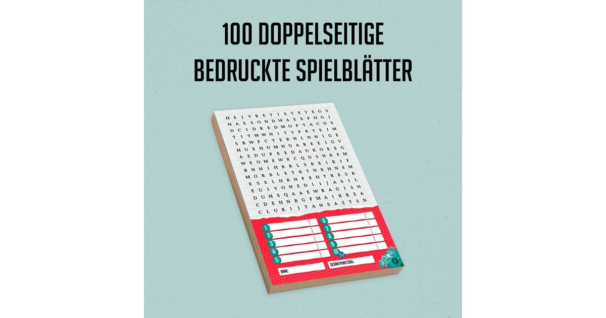 | Inhalt/Ausstattung | 1 Block mit 100 Spielblättern (beidseitig bedruckt), 32 Kategoriekarten, Spielanleitung |