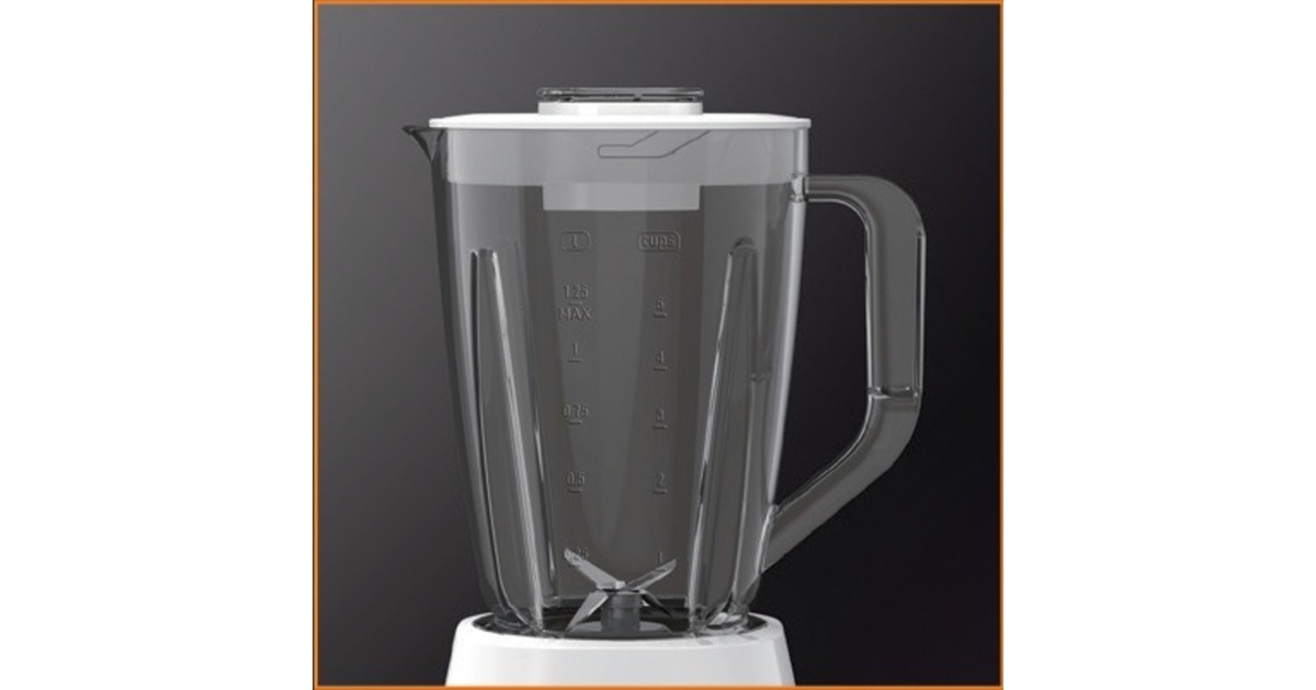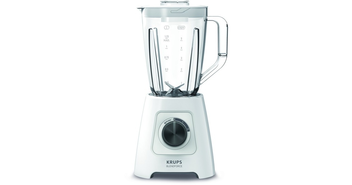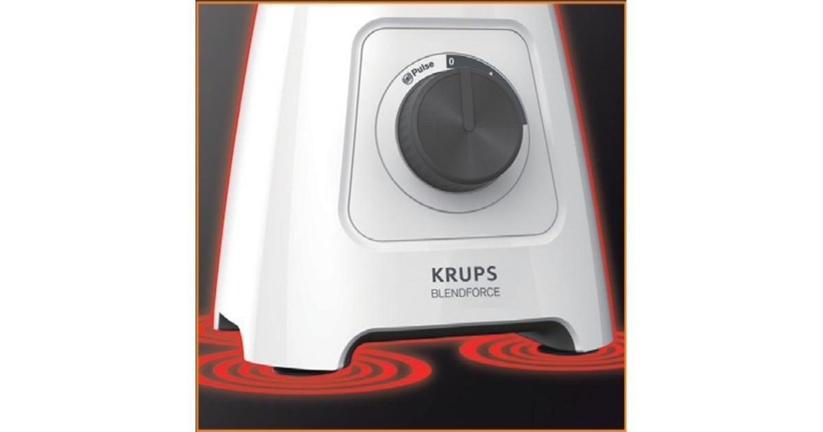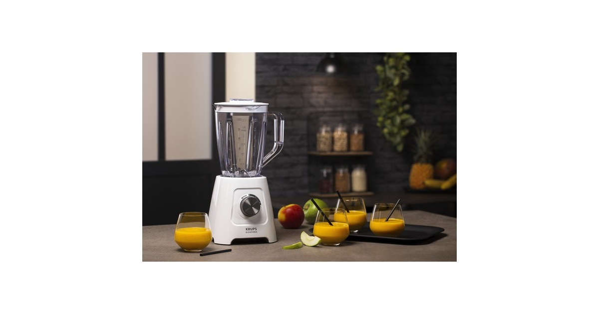 Der Krups Blendforce KB4201 Standmixer sorgt mit 600 W Leistung für optimale Mixergebnisse. Ein innovatives Kühlsystem sorgt für eine bessere Luftzirkulation, wodurch die Leistung des Motors verbessert wird und er bis zu 3 Minuten lang eingesetzt werden kann ohne zu überhitzen. Durch ein sicheres Verriegelungssystem können die Klingen zur einfachen Reinigung heraus genommen werden. Dank einer struktuierten Einfassung des Drehknopfes, sowie dem ergonomischen Griff, bekommt man ein intuitives und natürliches Gefühl beim Greifen. Der Mixbehälter fasst großzügige 2 Lieter und eignet sich wunderbar für sämtliche Rezepte. Ein gesonderter Messbecher sorgt für höchste Präzision beim Einfüllen der Zutaten. Der Blendforce KB4201 zaubert wunderbar cremige Soßen, fein pürierte Smoothies und zerkleinert auch Eis.Art.-Nr.: 1490959