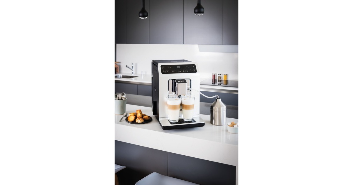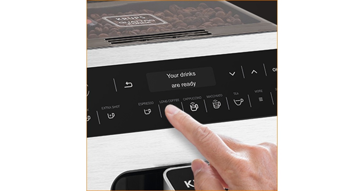 One-Touch-Cappuccino (OTC) Funktion, Two-in-One Touch System: Gleichzeitige Zubereitung von 2 Milchmixgetränken, Erkennungssystem für leeren Wassertank, Automatischer Doppelmahlzyklus für große Kaffees (220 ml) |