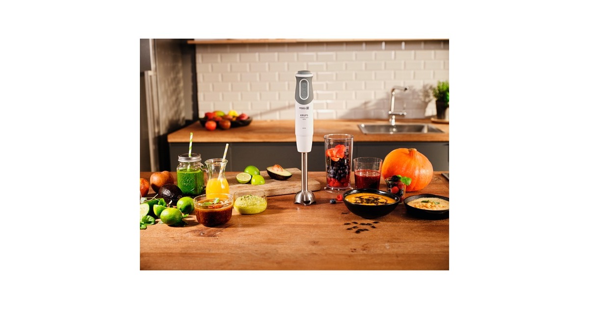 Mit dem Perfectmix 8000 Pürierstab von Krups kann die Leistung mühelos genutzt werden. Die exklusive PowelixTechnologie in Kombination mit einem leistungsstarken 800-W-Motor sorgt Tag für Tag für hohe Mixleistung und unglaublich cremige Ergebnisse, selbst bei den härtesten Zutaten. Speisen Lassen sich co einfach zubereiten und man behält dabei die volle Kontrolle, dank 20 einstellbarer Geschwindigkeiten und einem intuitiven bedienerfreundlichen Drehknopf. Darüber hinaus sorgen ein Spritzschutz und ein weicher Anti-Rutsch-Griff für eine praktische Handhabung, auch mit nassen Händen. Die spülmaschinenfeste Teile für eine einfache Reinigung.Art.-Nr.: 1623161