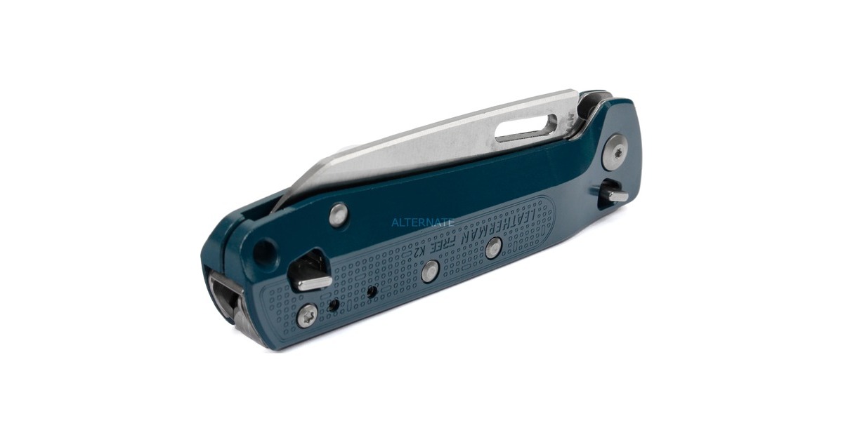 Das Leatherman Multitool FREE K2 in der Farbe "Navy" mit einer Edelstahl-Klinge von 8,4cm Länge und sieben weiteren Tools definiert den Begriff Multifunktion neu. Es lässt sich einfach mit einem leichten Daumendruck von der Außenseite des ergonomisch geformten Aluminium-Handgriffs öffnen. Die einzigartige Magnet-Technologie des Leatherman FREE ermöglicht die schnelle und leichte Bedienung aller Werkzeuge. So sind alle Tools schnell einsatzbereit. Durch diese Konstruktion sind die einzelnen Tools auch weniger Reibung ausgesetzt, so dass man noch länger Freude am Leatherman FREE haben wird. Außer dem Messer enthält das FREE K2 einen Nagelheber, einen Paketöffner, eine Ahle, einen Flaschenöffner, einen Kreuzschlitz-Schraubendreher, einen mittleren Schlitz-Schraubendreher und einen Uhrmacherschraubendreher.Art.-Nr.: 1892735