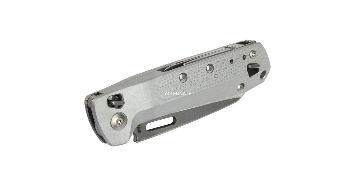 Das Leatherman Multitool FREE K2 mit einer Edelstahl-Klinge von 8,4cm Länge und sieben weiteren Tools definiert den Begriff Multifunktion neu. Es lässt sich einfach mit einem leichten Daumendruck von der Außenseite des ergonomisch geformten Aluminium-Handgriffs öffnen. Die einzigartige Magnet-Technologie des Leatherman FREE ermöglicht die schnelle und leichte Bedienung aller Werkzeuge. So sind alle Tools schnell einsatzbereit. Durch diese Konstruktion sind die einzelnen Tools auch weniger Reibung ausgesetzt, so dass man noch länger Freude am Leatherman FREE haben wird. Außer dem Messer enthält das FREE K2 einen Nagelheber, einen Paketöffner, eine Ahle, einen Flaschenöffner, einen Kreuzschlitz-Schraubendreher, einen mittleren Schlitz-Schraubendreher und einen Uhrmacherschraubendreher.Art.-Nr.: 1737691