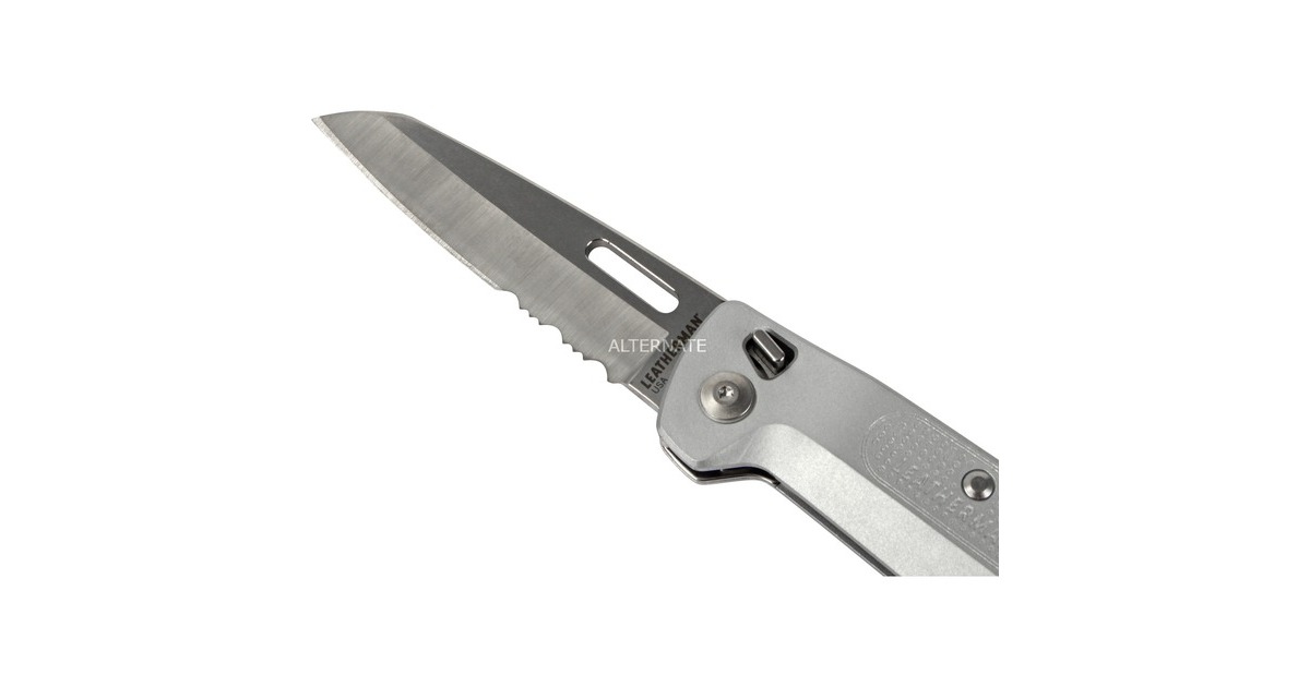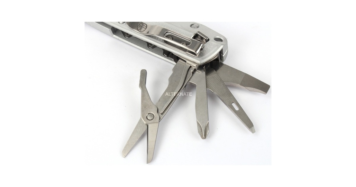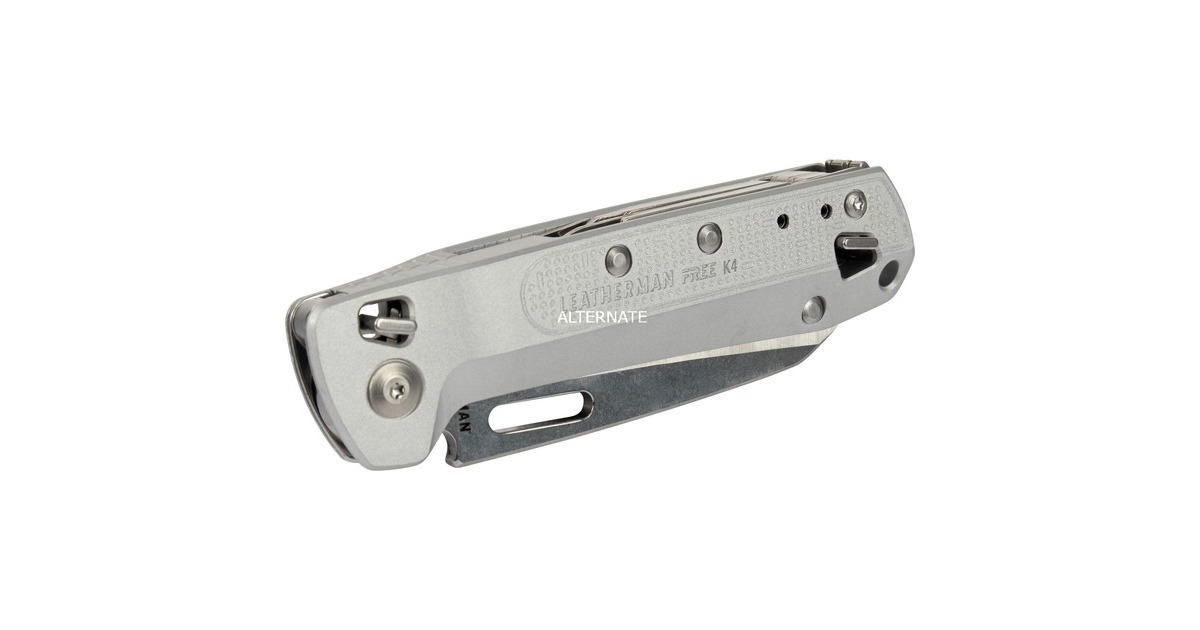 Das Leatherman Multitool FREE K4X mit einer Edelstahl-Klinge von 8,4cm Länge und acht weiteren Tools definiert den Begriff Multifunktion neu. Anders als beim K4 kommt beim K4X eine Kombiklinge zum Einsatz. Es lässt sich einfach mit einem leichten Daumendruck von der Außenseite des ergonomisch geformten Aluminium-Handgriffs öffnen. Die einzigartige Magnet-Technologie des Leatherman FREE ermöglicht die schnelle und leichte Bedienung aller Werkzeuge. So sind alle Tools schnell einsatzbereit. Durch diese Konstruktion sind die einzelnen Tools auch weniger Reibung ausgesetzt, so dass man noch länger Freude am Leatherman FREE haben wird. Außer dem Messer enthält das FREE K4X eine Schere mit Federbetätigung, einen Nagelheber, einen Paketöffner, eine Ahle, einen Flaschenöffner, einen Kreuzschlitz-Schraubendreher, einen mittleren Schlitz-Schraubendreher und einen Uhrmacherschraubendreher.Art.-Nr.: 1737694