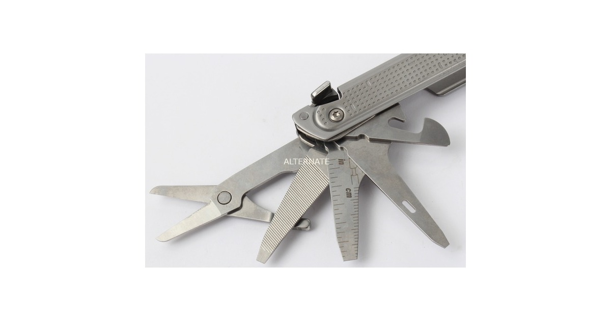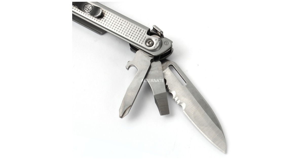 Das Leatherman Multitool FREE P2 mit einer Edelstahl-Kombiklinge von 7cm Länge und 18 weiteren Werkzeugen ist ein Multi-Tool mit maximaler Funktionalität. Es lässt sich einfach mit einem leichten Daumendruck von der Außenseite des ergonomisch geformten Handgriffs öffnen. Die einzigartige Magnet-Technologie des Leatherman FREE ermöglicht die schnelle und leichte Bedienung aller Werkzeuge. So sind alle Tools schnell einsatzbereit. Durch diese Konstruktion sind die einzelnen Tools auch weniger Reibung ausgesetzt, so dass man noch länger Freude am Leatherman FREE haben wird. Außer dem Messer mit Kombiklinge enthält das FREE P2 eine Spitzzange, eine normale Zange, einen auswechselbaren Drahtschneider, einen auswechselbaren Hartdrahtschneider, eine Crimpzange, eine Abisolierklinge, eine Schere mit Federbetätigung, einen Paketöffner, eine Ahle, einen Flaschenöffner, einen Dosenöffner, eine Holz-/Metallfeile, einen Kreuzschlitz-Schraubendreher, einen mittleren und einen kleinen Schlitz-Schraubendreher und einen Uhrmacherschraubendreher.Art.-Nr.: 1737681