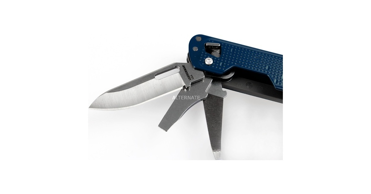 Das Leatherman Multitool FREE T4 in der Farbe "Navy" mit einer Edelstahl-Klinge von 5,6cm Länge und elf weiteren Tools ist besonders handlich. Es verfügt über alle Vorteile des T2 und bietet zusätzlich eine Schere, eine Pinzette und eine robuste Nagelfeile. Es lässt sich einfach mit einem leichten Daumendruck von der Außenseite des ergonomisch geformten Handgriffs aus glasfaserverstärktem Nylon öffnen. Die einzigartige Magnet-Technologie des Leatherman FREE ermöglicht die schnelle und leichte Bedienung aller Werkzeuge. So sind alle Tools schnell einsatzbereit. Durch diese Konstruktion sind die einzelnen Tools auch weniger Reibung ausgesetzt, so dass man noch länger Freude am Leatherman FREE haben wird. Außer dem Messer enthält das FREE T4 einen Nagelheber, einen Paketöffner, eine Ahle, einen Flaschenöffner, eine Schere mit Federbetätigung, eine Pinzette, eine Nagelfeile, einen Kreuzschlitz-Schraubendreher, einen mittleren und einen kleinen Schlitz-Schraubendreher und einen Uhrmacherschraubendreher.Art.-Nr.: 1892739