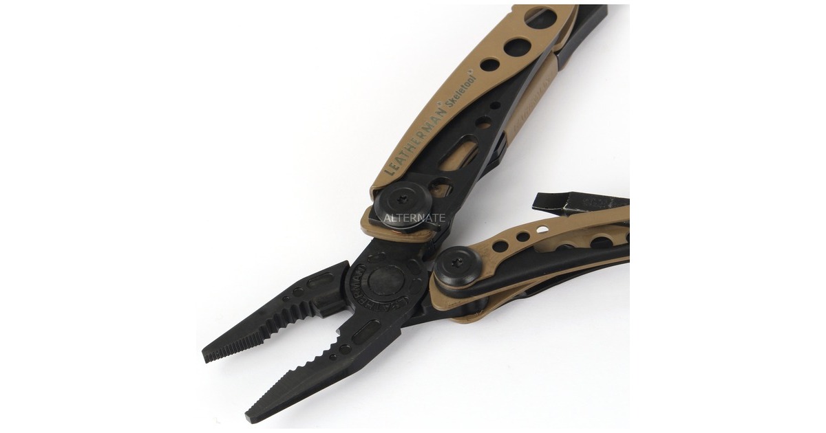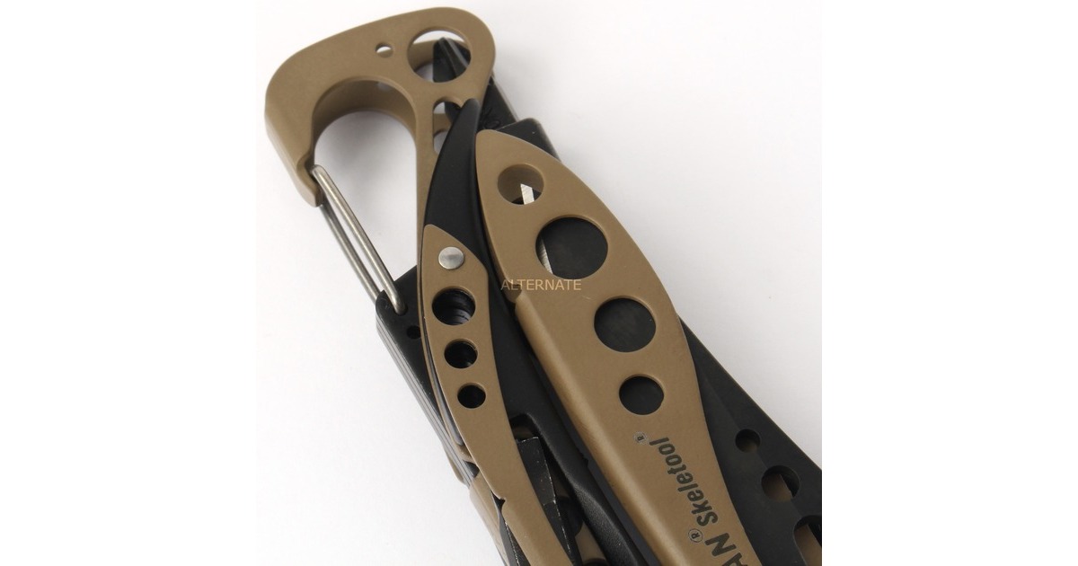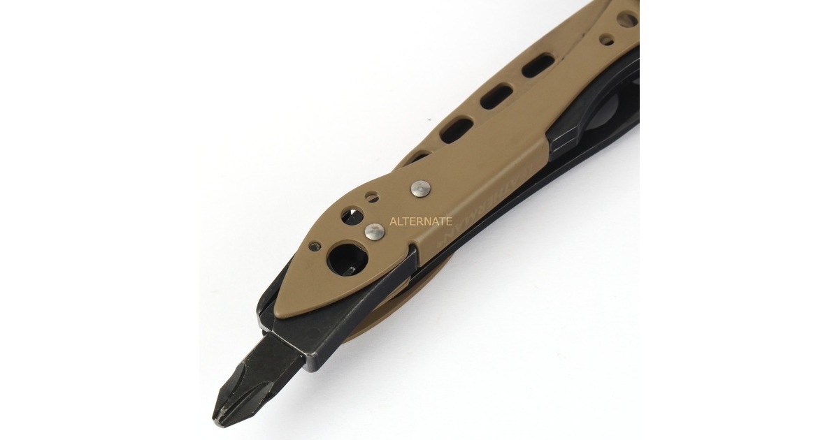 Das Leatherman Multitool SKELETOOL ist aus 100% Edelstahl gefertigt. In dem ultraleichten Tool stecken sieben nützliche Werkzeuge. Neben dem 420HC-Kombimesser mit 6,6cm Klinge enthält das SKELETOOL eine Spitzzange, eine normale Zange, einen Drahtschneider, einen Hartdrahtschneider, einen Flaschenöffner, einen Karabiner und einen großen Bithalter. Im integrierten Bitfach befinden sich zwei doppelseitige Bits. Alle Funktionen dieses Werkzeugs können mit einer Hand geöffnet und genutzt werden. Dadurch hat man die andere Hand frei, wenn man mehrere Dinge gleichzeitig machen muss oder eine freie Hand braucht.Art.-Nr.: 1737655
