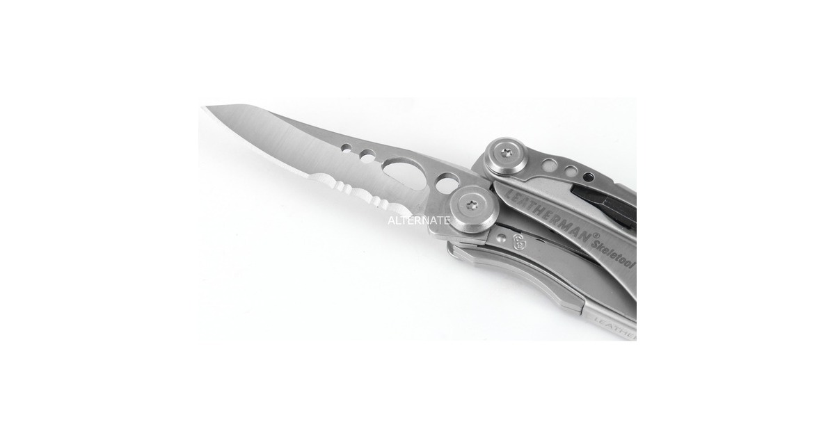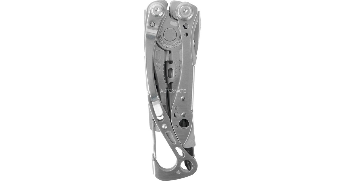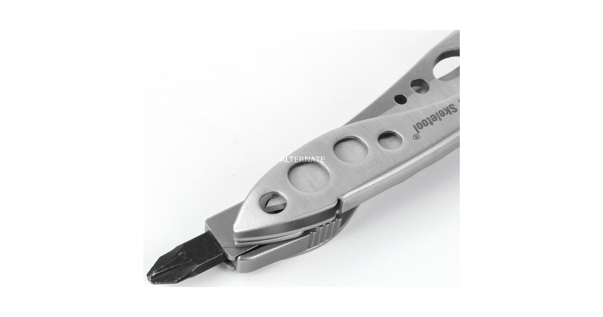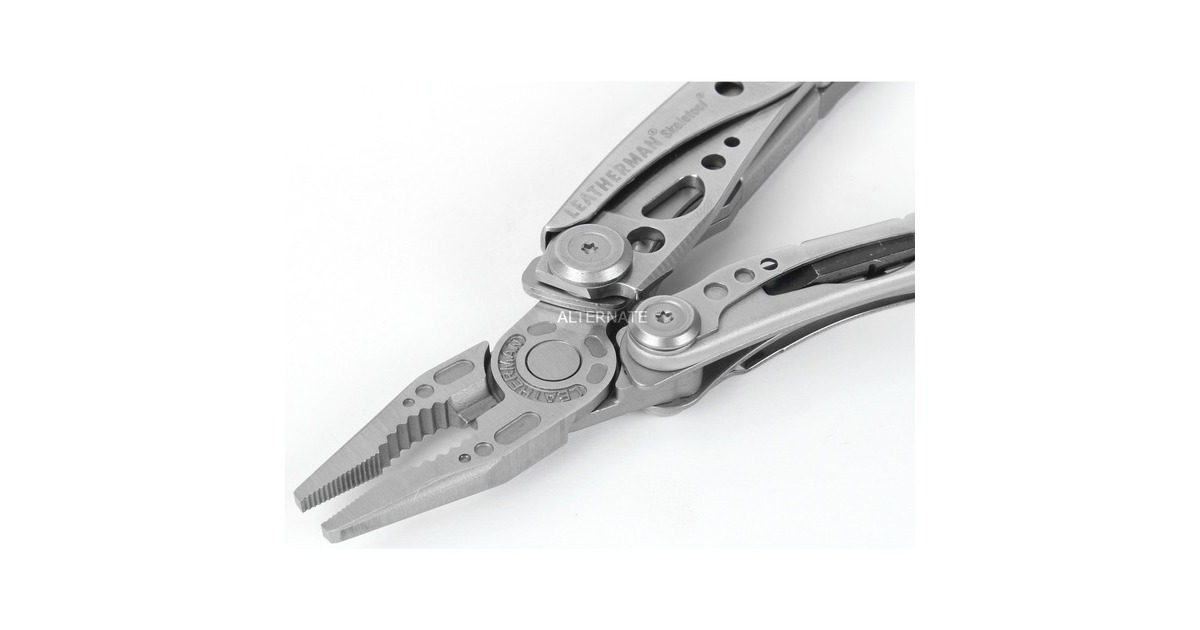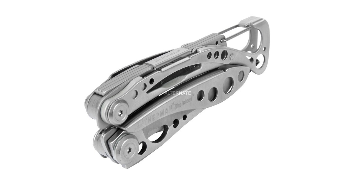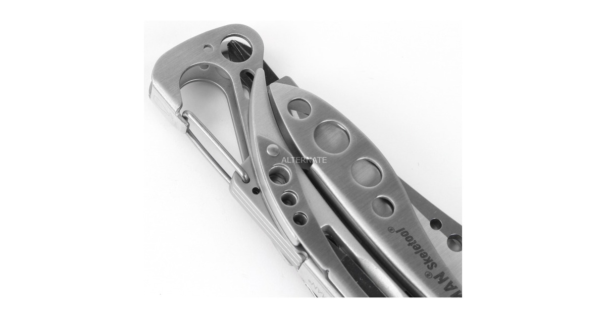 Das Leatherman Multitool SKELETOOL ist aus 100% Edelstahl gefertigt. In dem ultraleichten Tool stecken sieben nützliche Werkzeuge. Neben dem 420HC-Kombimesser mit 6,6cm Klinge enthält das SKELETOOL eine Spitzzange, eine normale Zange, einen Drahtschneider, einen Hartdrahtschneider, einen Flaschenöffner, einen Karabiner und einen großen Bithalter. Im integrierten Bitfach befinden sich zwei doppelseitige Bits. Alle Funktionen dieses Werkzeugs können mit einer Hand geöffnet und genutzt werden. Dadurch hat man die andere Hand frei, wenn man mehrere Dinge gleichzeitig machen muss oder eine freie Hand braucht.Art.-Nr.: 1737645