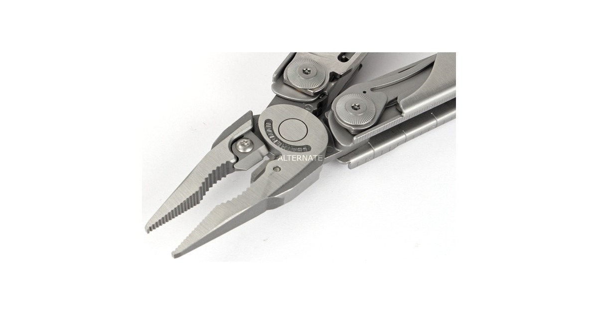 Das Leatherman Surge in Silber/Edelstahl ist ein äußerst umfangreiches Multitool – ein wahres Kraftpaket, ausgerüstet mit einer sehr großen Zange und den besonders langen Multitool-Klingen. Benutzerfreundliche Arretierungen, der einzigartige Klingenwechsler und vier von außen zugängliche Klingen erlauben schnellen Zugriff auf die Werkzeuge, die man am häufigsten braucht. Das Surge besteht aus einer verbesserten Version des 420er Edelstahls mit hohem Kohlenstoffgehalt und ist der Spezialist für Schwerstarbeit.Art.-Nr.: 1382331