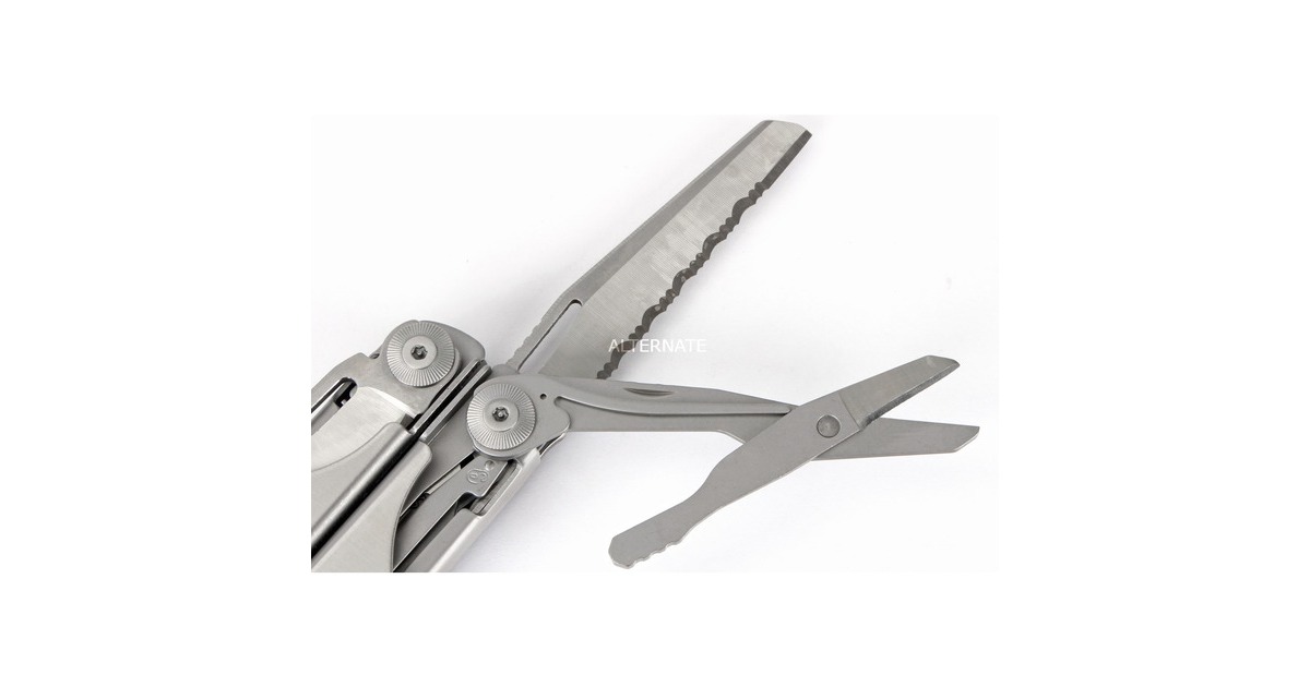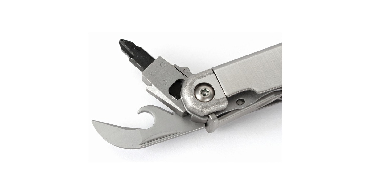 1x Auswechselbarer 154CM Drahtschneider, 1x Auswechselbare 154CM Hartdrahtschneider, 1x Litzenschneider, 1x Elektro Crimpzange, 1x Abisolierklinge, 1x 420HC Wellenschliffmesser, 1x Schere mit Federbetätigun, 1x Ahle mit Öse, 1x Lineal (8 Zoll, 19 cm), 1x Dosenöffner, 1x Flaschenöffner, 1x Holz-/Metallfeile, 1x diamantbeschichtete Feile, 1x Klingenwechsler |