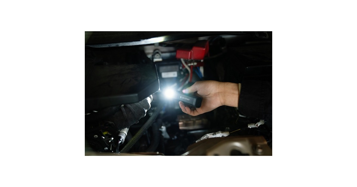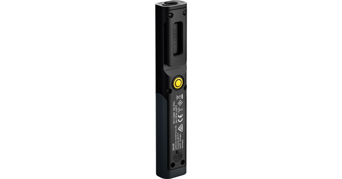 Die iW4R ist kaum größer als ein Stift und daher immer schnell zu Hand - ideal als schnelle Leuchtquelle bei komplizierten Arbeitsvorgängen. Durch den integrierten Magneten und den Kippmechanismus lässt sie sich flexibel befestigen. Diese Taschenlampe wird mit einem integrierten Akku betrieben, per USB aufgeladen und erreicht eine Leuchtdauer von bis zu 4 Stunden bei einem Lichtstrom von bis zu 150 Lumen. Dabei lässt sich flexibel zwischen dem fokussierten Spot-Licht im Lampenkopf und der breiter streuenden COB-LED an der Seite wechseln. Art.-Nr.: 1687907