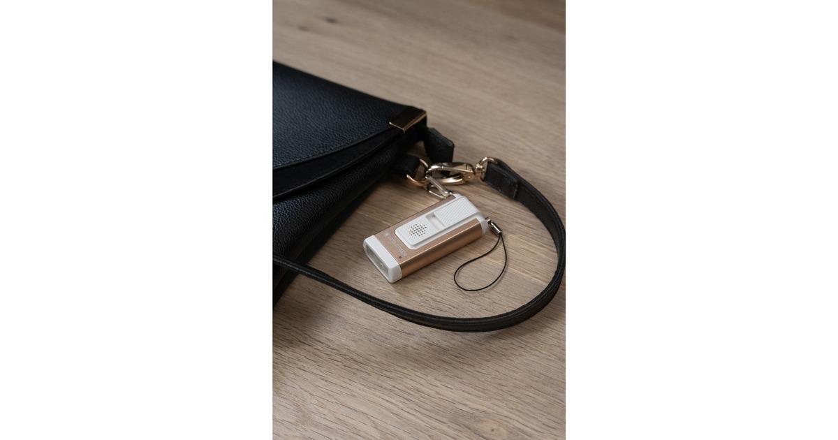 Gehäuse aus gebürstetem Aluminium mit Karabinerhaken zur einfachen Befestigung, Lautstarker Schrillalarm, einfach aktivierbar durch Ziehen eines Pins, zusätzlicher Strobe-Modus zum Blenden von Angreifern bis zu 400 Lumen Lichtleistung, einfaches und schnelles Aufladen per ausklappbarer USB-A-Schnittstelle ohne separates Ladekabel, integrierte Akku- und Ladestandsanzeige |