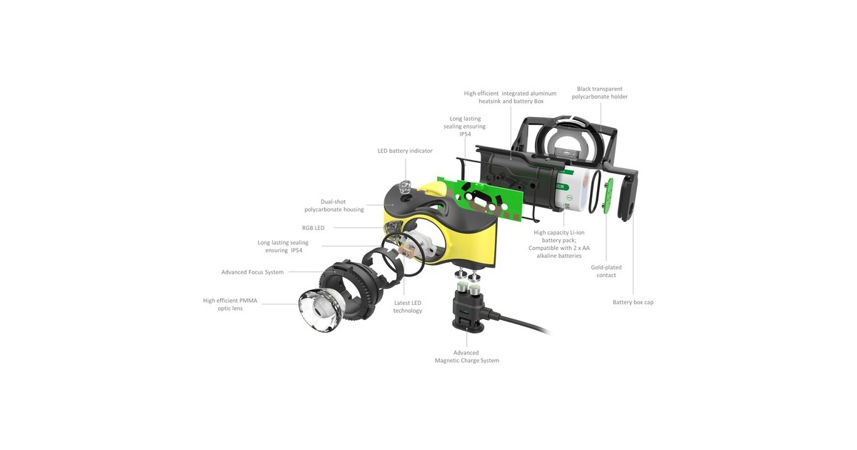 Magnetic Charge System, Smart Light Technology, Rapid Focus, Dual Power Source, Advanced Focus System, Cooling Technology, Energy Saving, Constant Light, Low Battery Warning, Charge Indicator, Battery Indicator, Transportation Lock, Red Light, Green Light, Blue Light |
