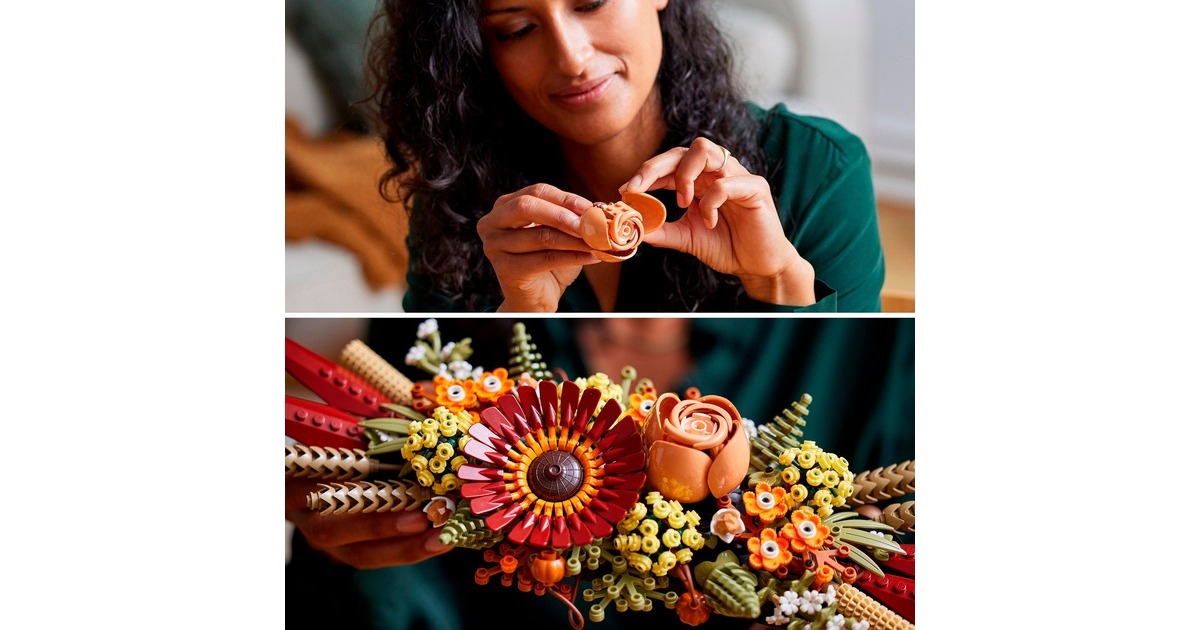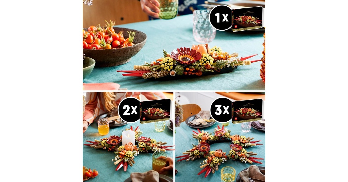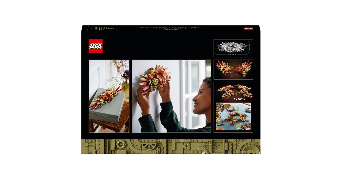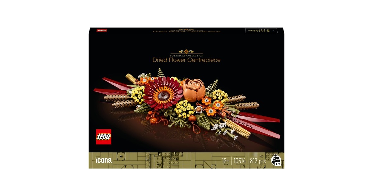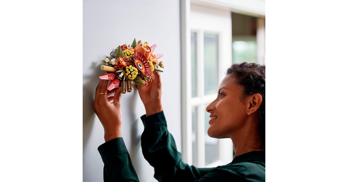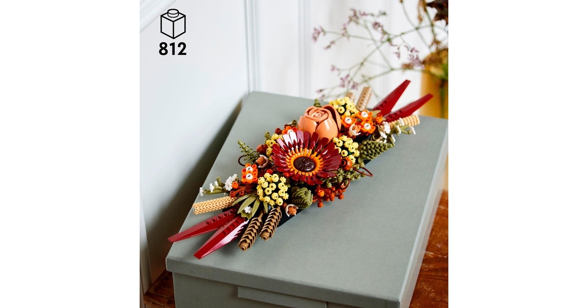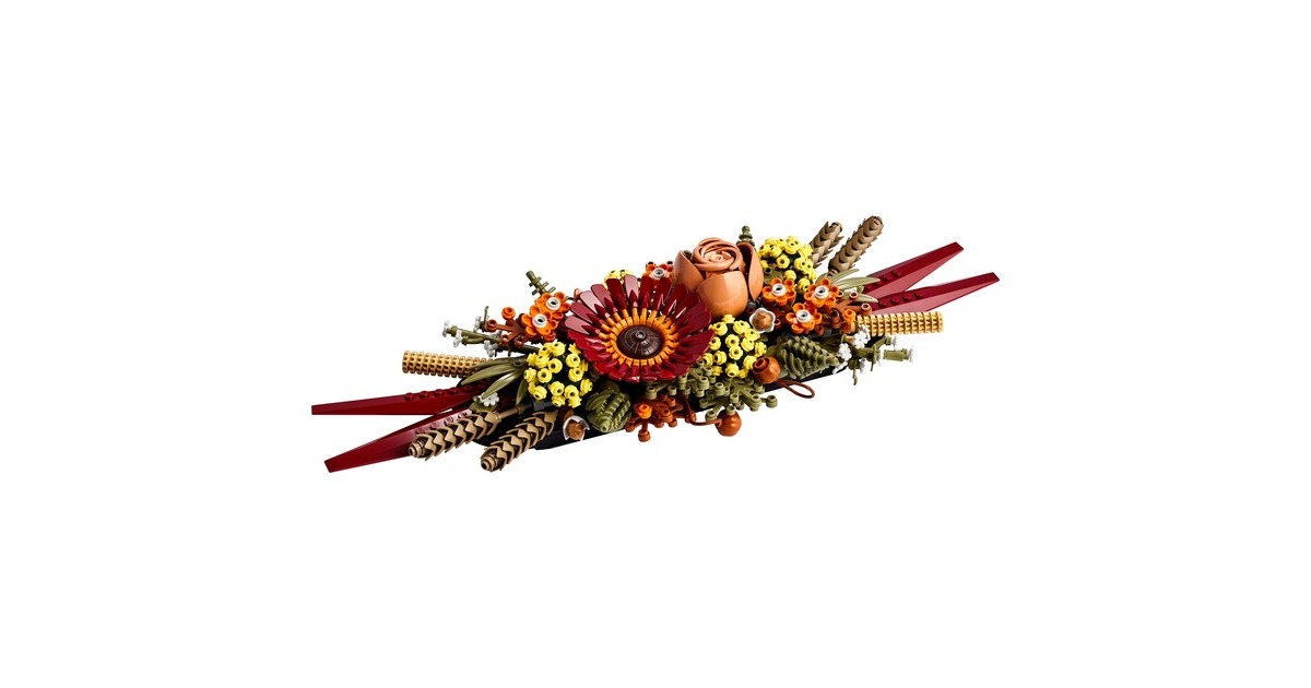 Mit dem Trockenblumengesteck aus der LEGO-Serie Icons ziehen herbstliche Farben in die Botanical Collection von LEGO ein. Mit diesem Set entsteht ein prächtiges Dekoobjekt, das sich dank der variablen Halterung in unterschiedlichen Kombinationen präsentieren lässt. Das fertig aufgebaute Gesteck erreicht eine Länge von etwa 40 Zentimetern und ist 13 Zentimeter hoch. Ein fesselndes, mit vielen raffinierten Details angereichertes Bauerlebnis für Naturliebhaber oder angehende Floristen. Art.-Nr.: 1871764