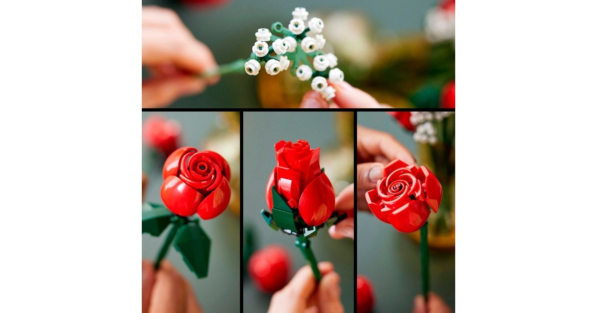 Baue Blumen, die niemals verblühen: Mit diesem Set aus der LEGO-Serie Icons entsteht ein prächtiger Strauß Rosen - ein stilvoll gestaltetes Kunstwerk, das komplett aus LEGO-Steinen besteht. Dieses Set zeigt insgesamt zwölf rote Rosen in verschiedenen Blütestadien: 4 Rosen in voller Blüte, 4 mit halb geöffneten Blüten und 4 mit Knospen. Mit seinen langen, grünen Stängeln fällt die Präsentation des Straußes in einer Vase leicht. Zusätzlich gibt es 4 baubare Zweige Schleierkraut, die dem Strauß den letzten Schliff verpassen. Ein fesselndes Bauerlebnis und ein echter Blickfang in jedem Raum - nicht nur zum Valentinstag. Art.-Nr.: 100012681