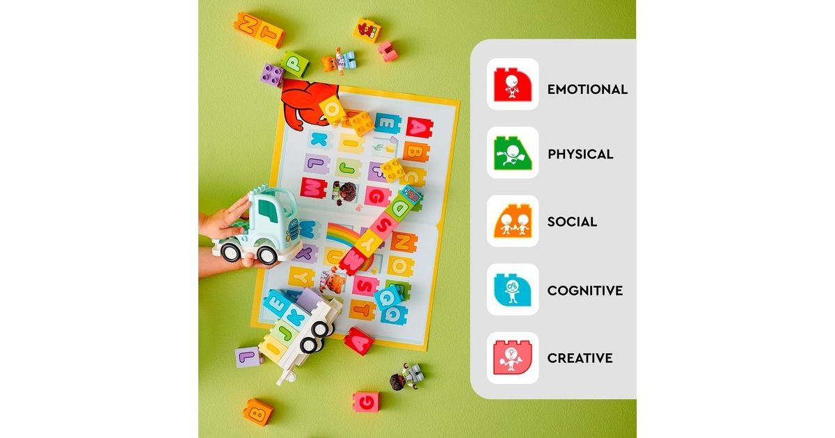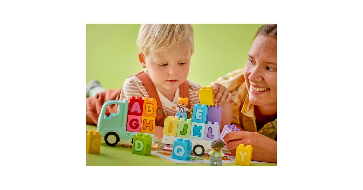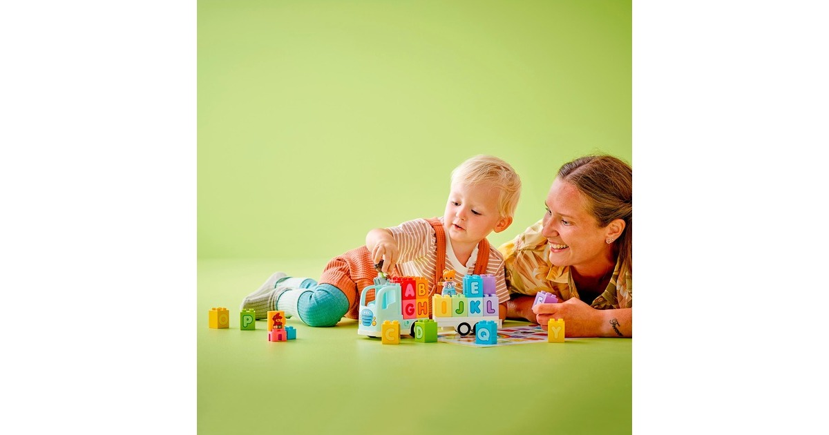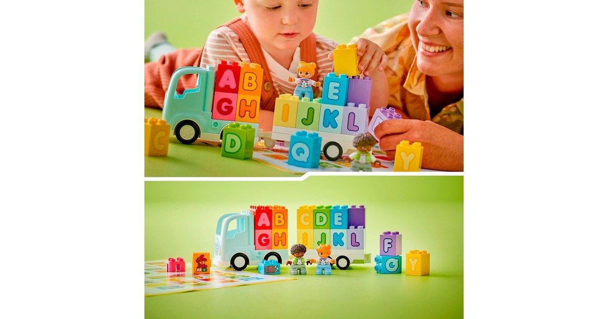 Der LEGO DUPLO ABC-Lastwagen verbessert spielerisch die Buchstabenkenntnisse und Fingerfertigkeit von Kleinkindern. Durch das Ankoppeln des Anhängers und das Auf- und Abladen der bedruckten Steine werden wichtige Fähigkeiten trainiert. Die beiden DUPLO-Figuren unterstützen dabei, erste Buchstaben zu erkennen und Farben zu lernen. Das Set enthält zudem ein LEGO DUPLO ABC-Buch und einen Stereoanlagen-Stein. Vorschulkinder können ihrer Fantasie freien Lauf lassen und eigene, kreative Geschichten erfinden. Der LEGO DUPLO ABC-Lastwagen fördert somit wichtige Entwicklungsschritte bei Kindern und ist ein tolles Geschenk für Kinder ab zwei Jahren.Art.-Nr.: 100011248