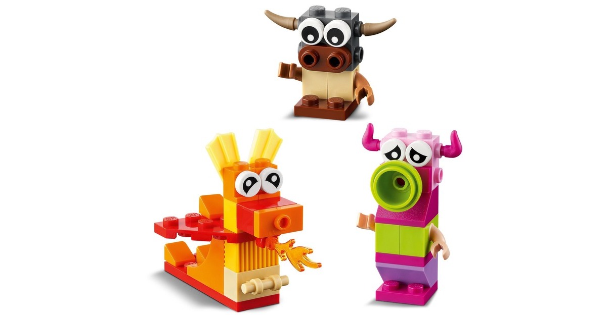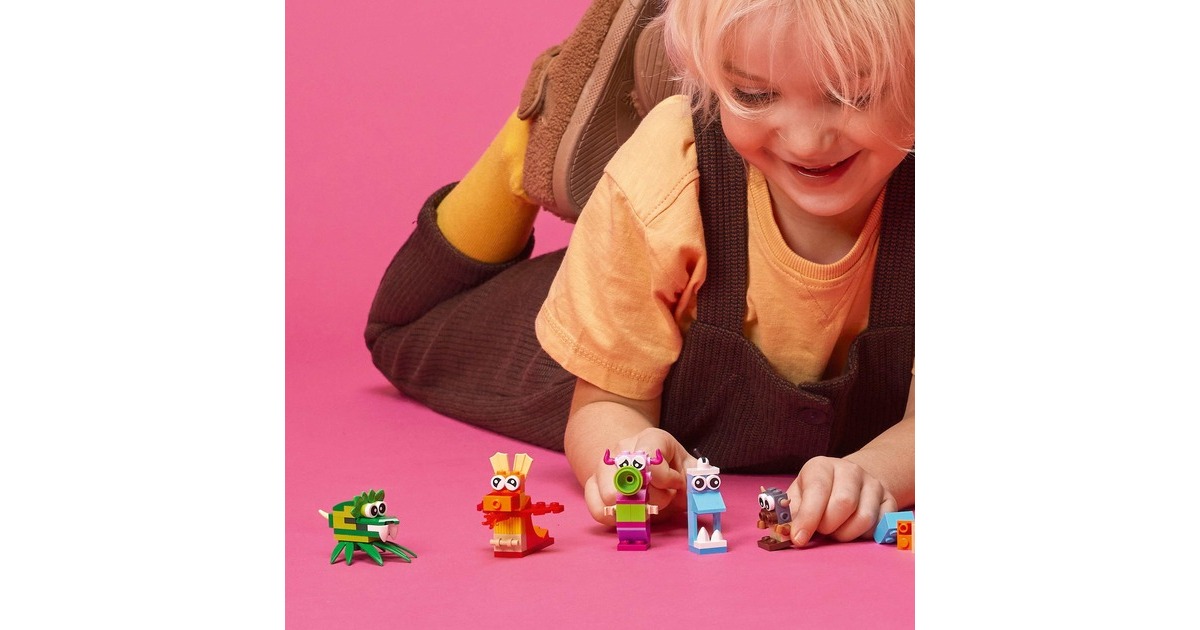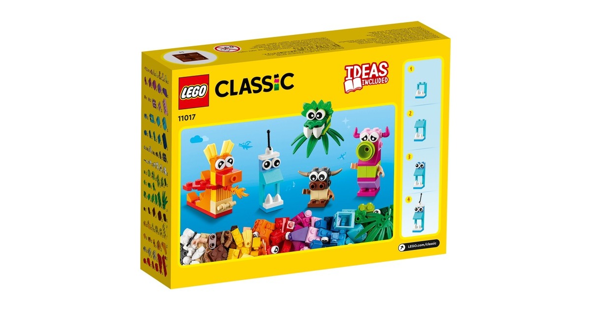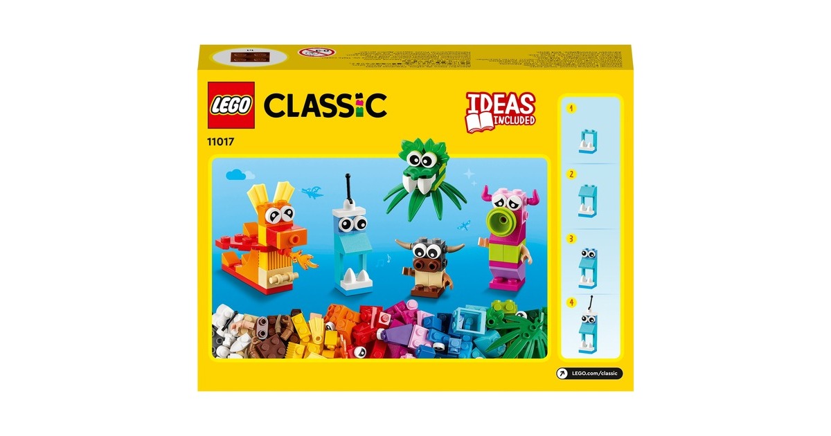 Kinder, Freunde und Familien können mit diesem LEGO Classic Kreative Monster (11017) Kreativ-Set für Kinder ab 4 Jahre stundenlang Spaß haben. Diese Box enthält einen Regenbogen aus bunten LEGO Steinen, 5 Monster-Bauideen und einen Beutel mit zusätzlichen Bausteinen zum freien Bauen! Zu jeder der 5 Mini-Monster-Bauideen gibt es eine bebilderte Schritt-für-Schritt-Bauanleitung, so dass auch Bauanfänger mit Stolz und Freude ihr eigenes Spielzeug-Monster konstruieren können. Die LEGO Kreativ-Boxen geben Kindern Ideen und Inspirationen und fördern die Entwicklung wichtiger Kompetenzen durch kreative Aktivitäten. Mit den Konstruktionsspielzeugen, die zum unbegrenzten Spielen anregen, unterstützen sie ihr Kind bei der Entwicklung kreativer Fähigkeiten. Art.-Nr.: 1787625