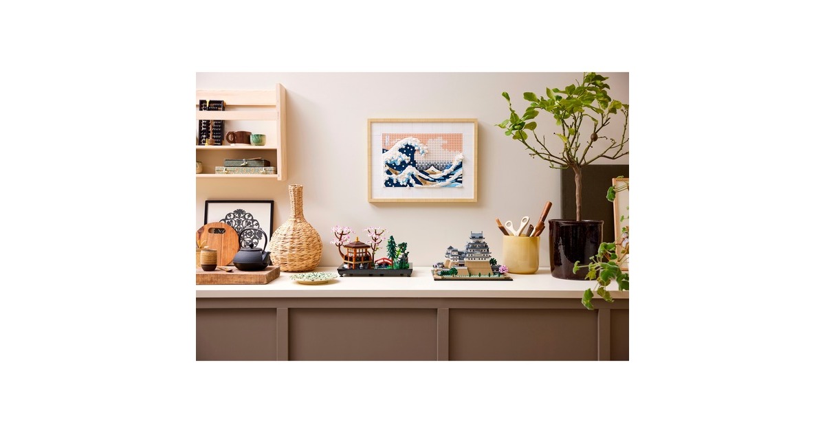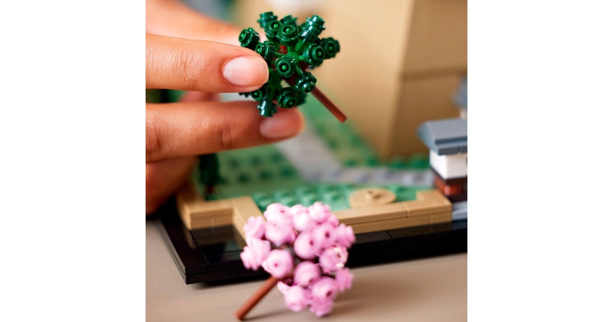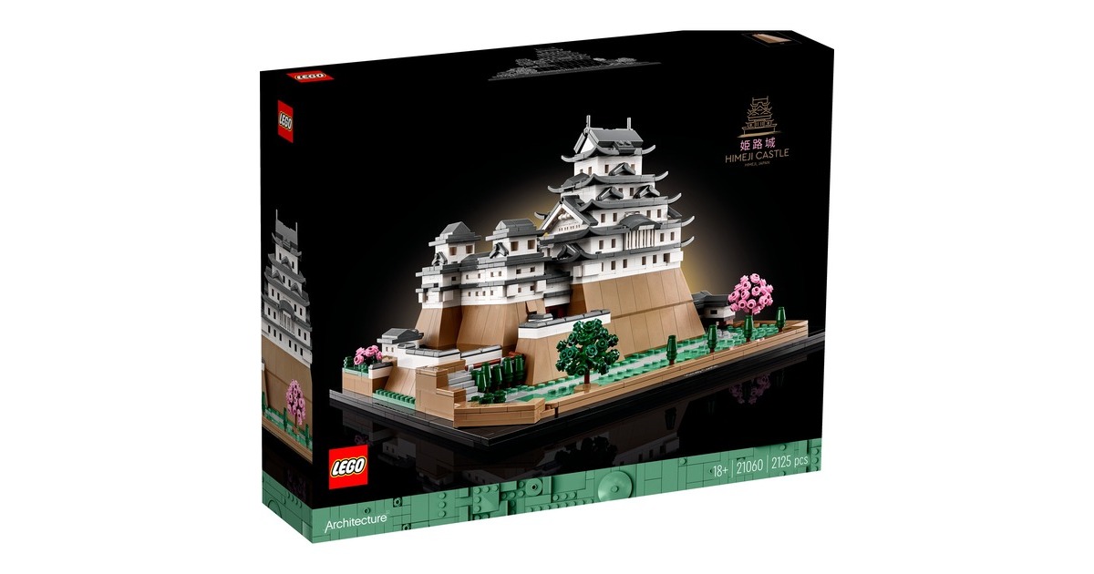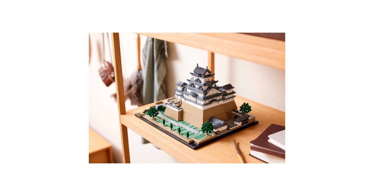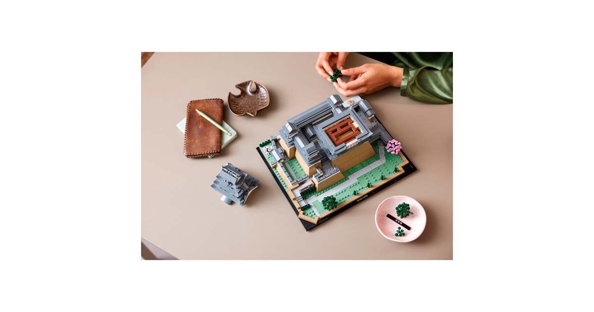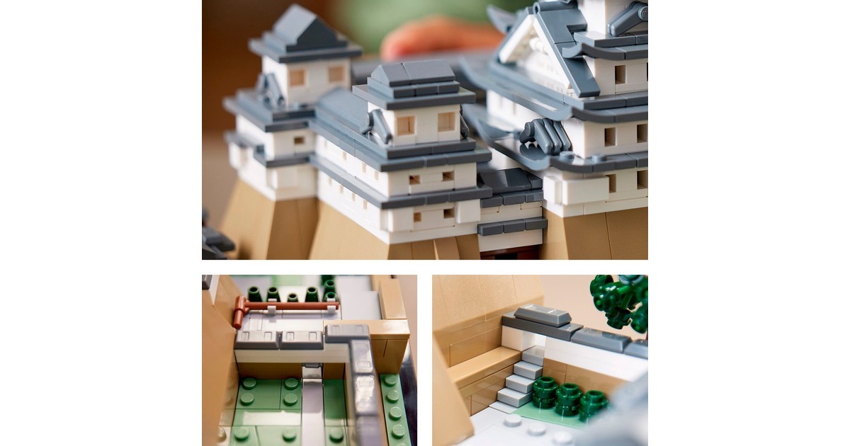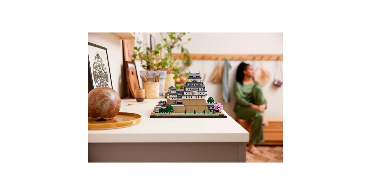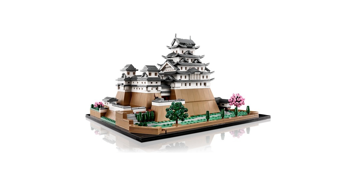 Aus 2125 Teile entsteht mit diesem LEGO-Set aus der Serie Architecture die kleine Version eines erhabenen, japanischen Bauwerks: Das Modell der Burg Himeji begeistert mit authentischen Details wie originalgetreuen Türmen, Gängen und asymmetrischen Mauern. Das Dach lässt sich abnehmen, womit eine vereinfachte Darstellung des Grundrisses sichtbar wird. Auf dem Burggelände befinden sich vier baubare Kirschbäume - zwei mit grünen Blättern und 2 mit rosafarbenen Blüten. Das fertige Modell ist 32 cm breit.Art.-Nr.: 1904753