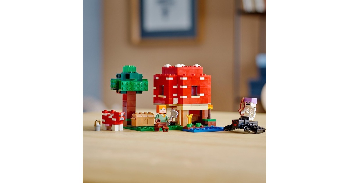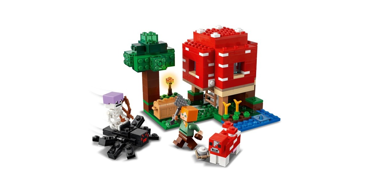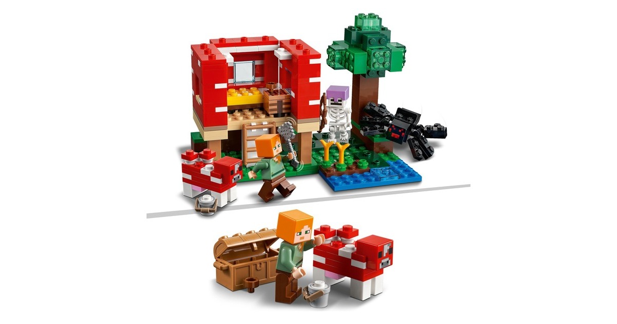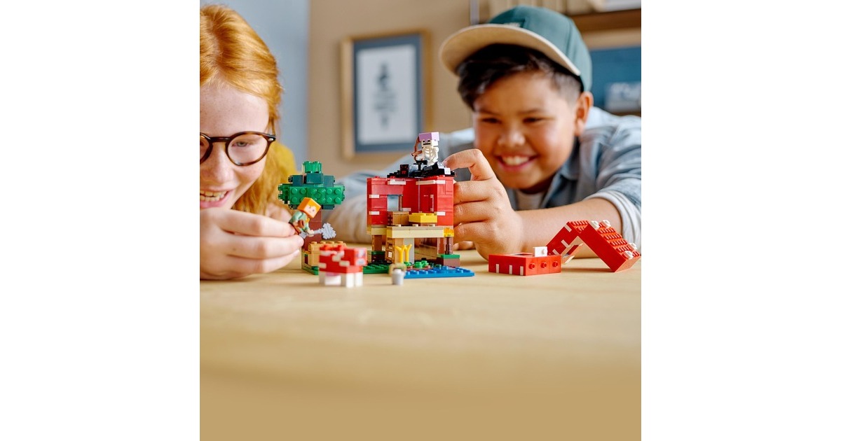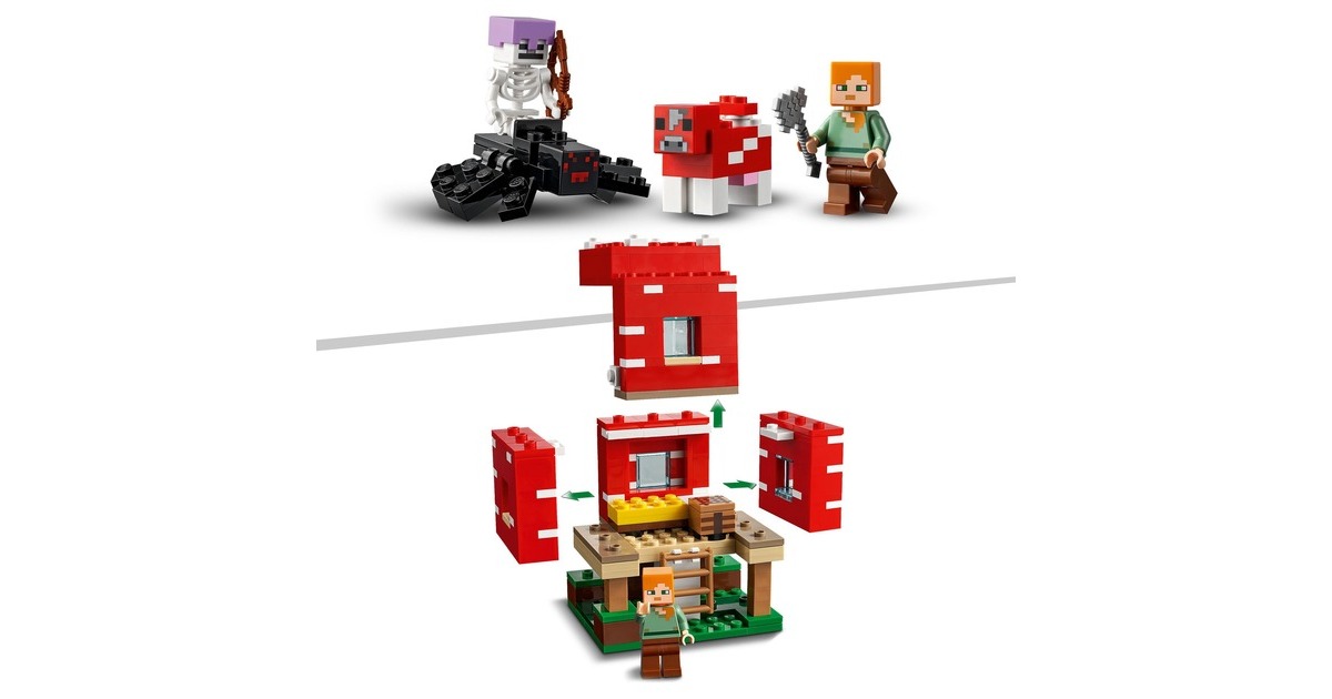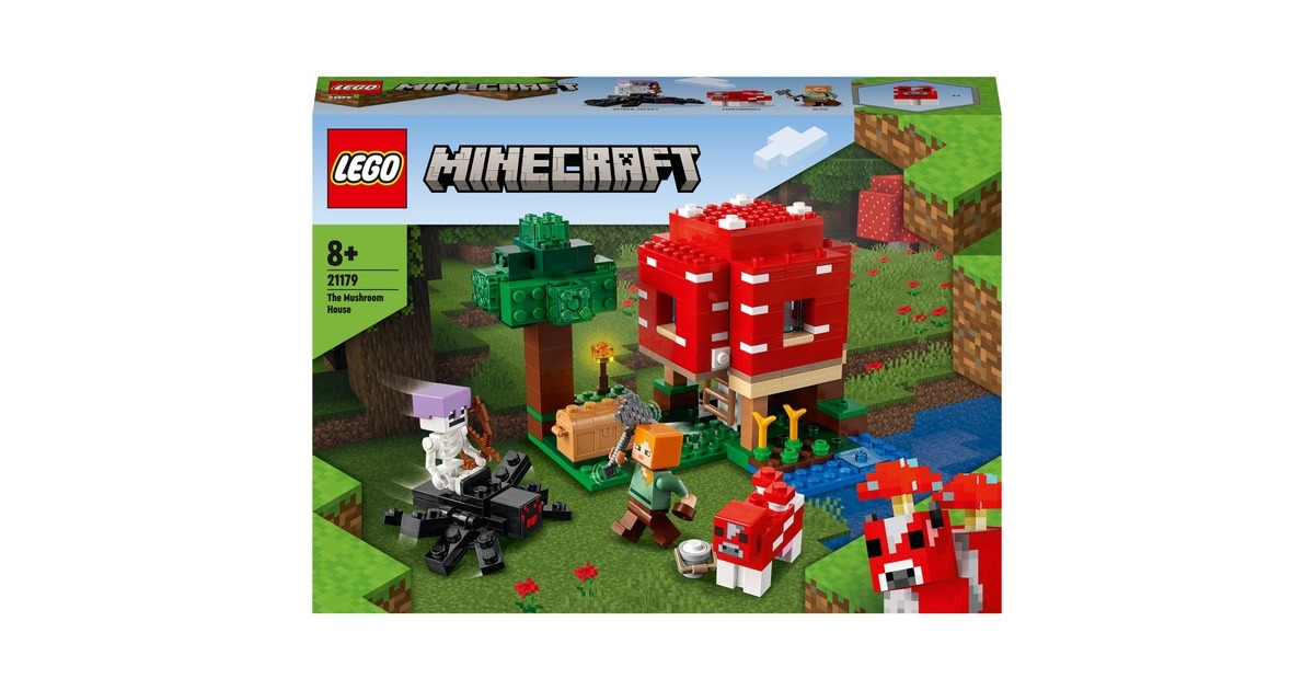 Das LEGO Minecraft Pilzhaus (21179) entführt Minecraft-Spieler in eine andere Welt mit endlosen kreativen Spielmöglichkeiten innerhalb und außerhalb des lustigen Spielzeug-Hauses. Das riesige Pilzhaus regt die Kinder zu kreativem Spielen an. Die Wände und das Dach lassen sich abnehmen, um den Basteltisch und die Möbel zu erreichen. Draußen ist die Minecraft-Figur Alex mit einer Schüssel unterwegs, um Suppe von der Mooshroom-Kuh zu melken. Doch alles kommt anders, als ein Skelett-Spinnenreiter durch die Szene wütet. Dieses Spielzeug für Kinder ab 8 Jahren hat eine Menge zu bieten! Die LEGO Minecraft-Sets eröffnen Spielern eine neue Möglichkeit, ihr Lieblingsspiel zu erleben. Mit einer fantasievollen Mischung aus LEGO Steinen und Teilen erwachen Charaktere, Szenen und Details zum Leben. Das LEGO Minecraft-Spielzeug ab 8 Jahren mit authentischen Details, coolen Funktionen und lustigem Zubehör aus dem erfolgreichen Computerspiel ist das perfekte Geburtstags- oder Minecraft-Geschenk für Kinder und alle Fans des Spiels, egal ob groß oder klein!Art.-Nr.: 1787943