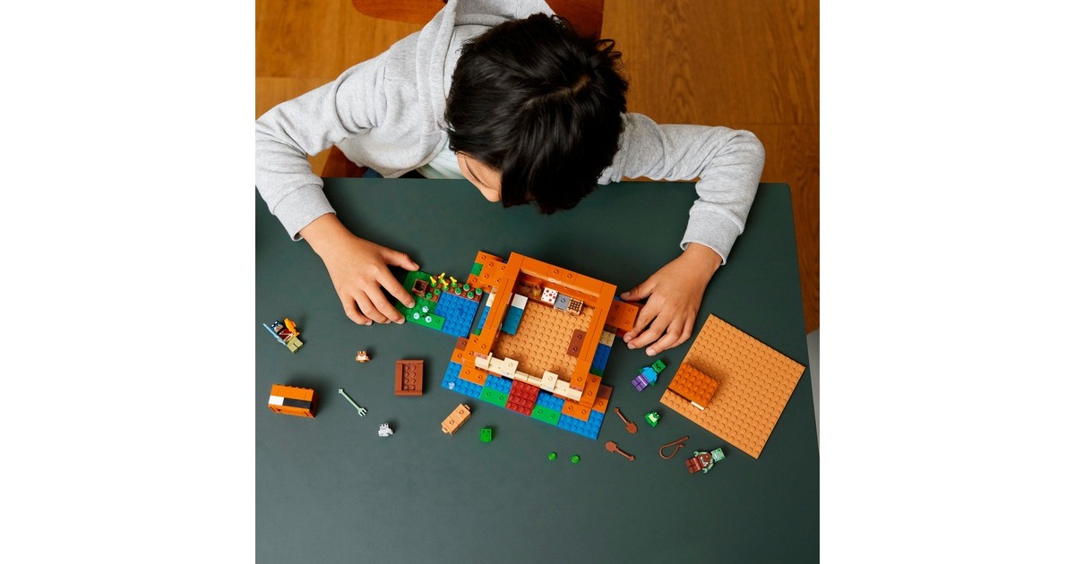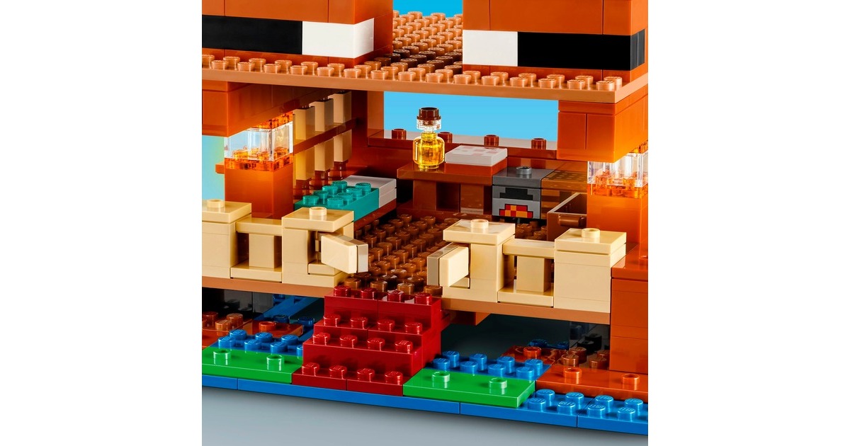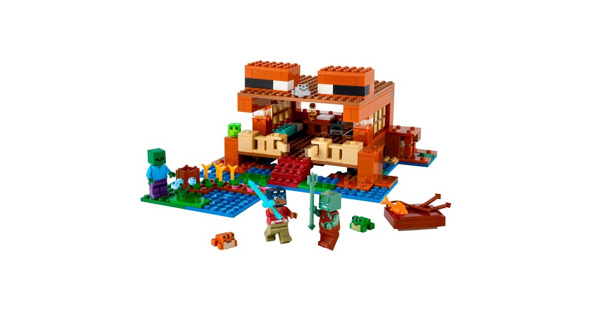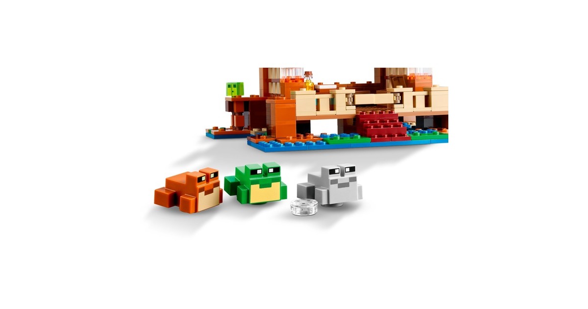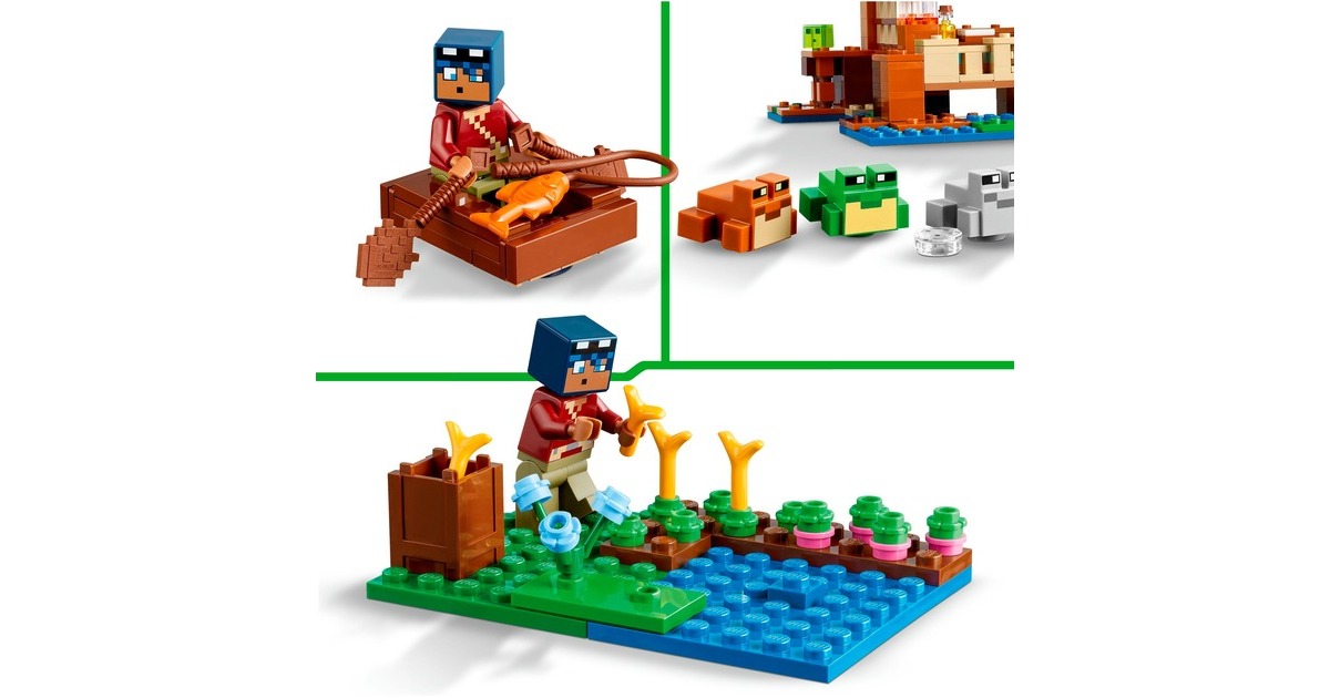 Mit diesem LEGO-Set aus der Serie Minecraft kommt eine Herausforderung für Kinder, die Minecraft lieben. Aus LEGO-Teilen entsteht ein Spielzeug-Haus in Form eine Frosches mit vielen, aus dem Videospiel bekannten Details. Das Dach ist abnehmbar, so dass Bett, Tisch, Werkbank, Ofen, Truhe, Kuchen und Honig gut zugänglich sind. Im Außenbereich können Rote Beete, Weizen und Blumen geerntet werden. Mit dem Boot und der Angelrute mit Fisch geht es zum Angeln auf den See. Dieses Set wird von mehreren Minecraft-Figuren und -Tieren bevölkert: Neben einem Sumpfforscher, einem Minecraft-Zombie und einem Ertrunkenen mit Dreizack sind drei Frosch-Figuren in grün, grau und braun enthalten. Hinzu kommt ein Minecraft-Schleim. Ein Set mit 400 Teilen für Minecraft-Fans ab 8 Jahren. So wird Minecraft in der echten Welt lebendig - und nach dem Spielen kann das Set einfach im Kinderzimmer ausgestellt werden.Art.-Nr.: 100012599
