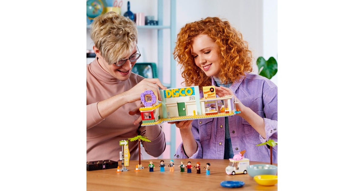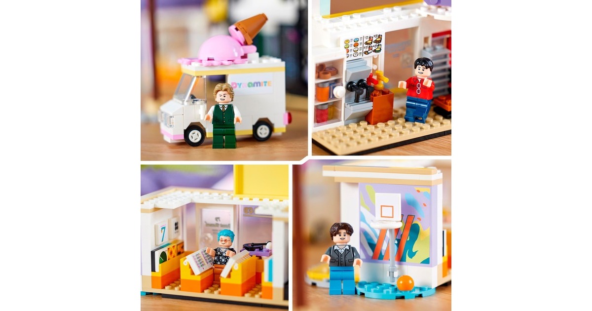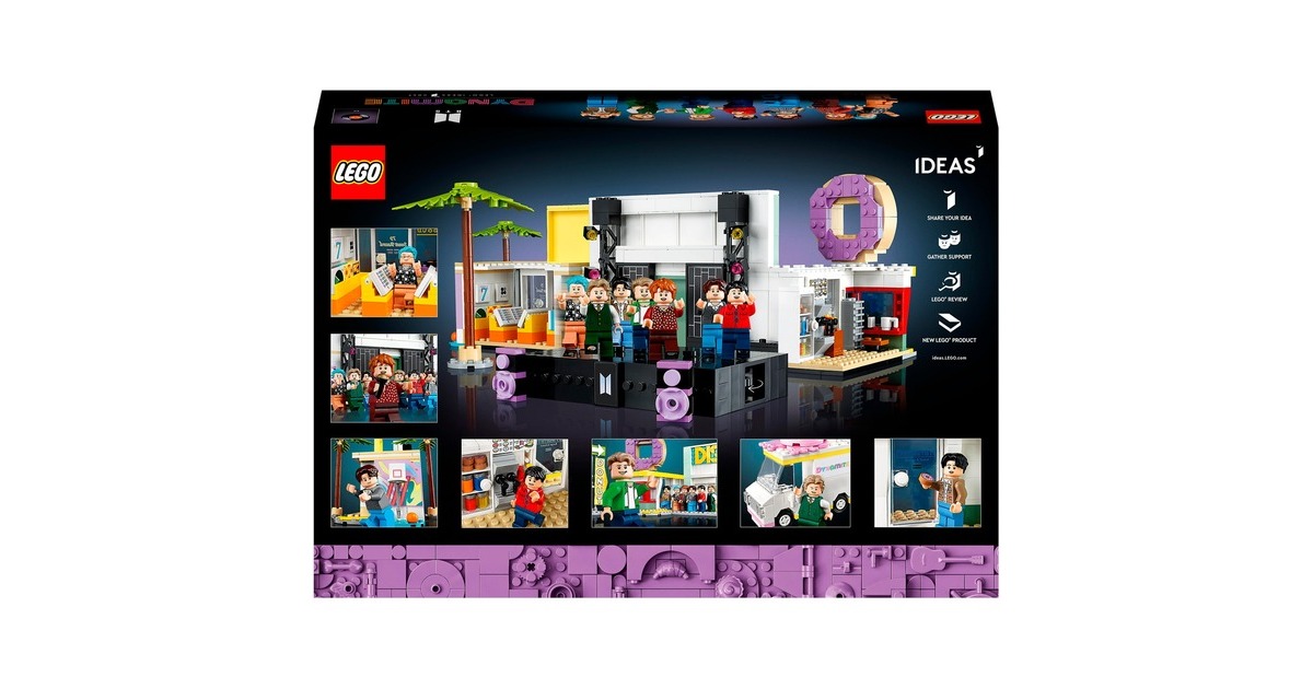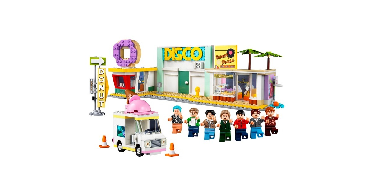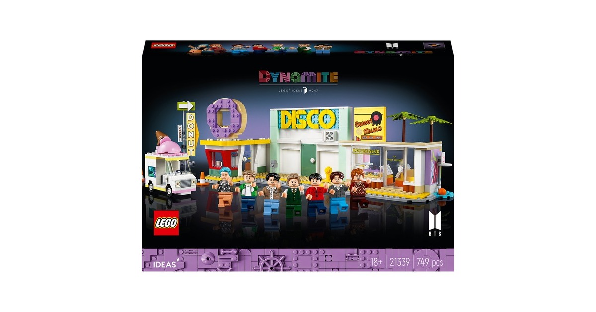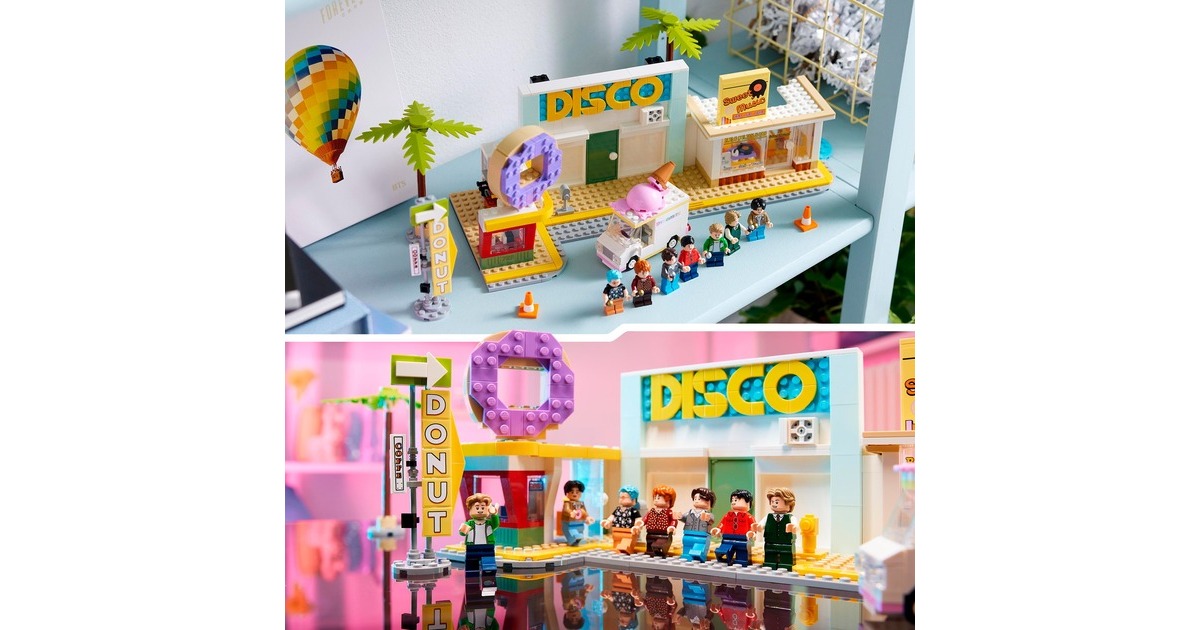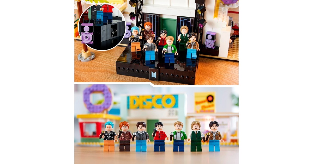 BTS sind ein Phänomen: Die Popgiganten des 21. Jahrhunderts gibt es nun auch als LEGO-Set - im Setting ihres bekannten Musikvideos zum Song "Dynamite" mit Nachbildungen der Disco, des Plattenladens, des Donut-Shops und des Eiswagens. Mit dabei: 7 Minifiguren von RM, Jin, SUGA, j-hope, Jimin, V und Jung Kook. Sie können alle auf der ebenfalls enthaltenen, besonderen Bühne auftreten. Der Clou: Wird das Rad gedreht, bewegt sich die Bühne. Dieses Set aus der Reihe LEGO Ideas enthält insgesamt 749 Teile. Art.-Nr.: 1906250