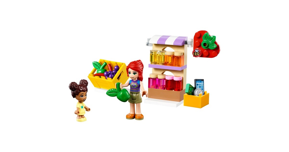 Kinder, die Kaufmannsläden lieben, können die LEGO Friends Marktbude (30416) bauen und nach Herzenslust umgestalten. Auch Bioprodukte oder Backwaren können dort verkauft werden.Art.-Nr.: 1857680