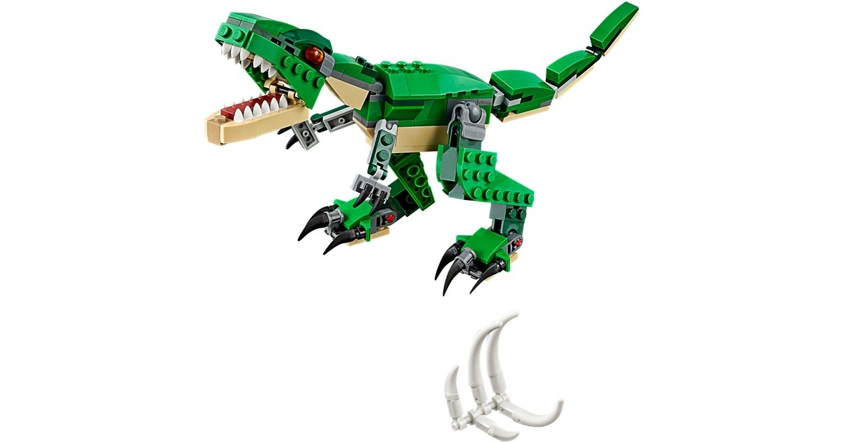 Enthält das 3-in-1-Modell eines T-Rex mit leuchtend orangen Augen, beweglichen Gelenken, einem beweglichen Kopf, großen Klauen und einem aufklappbaren Maul mit spitzen Zähnen. Ebenfalls enthalten sind die Überreste der letzten Mahlzeit des Dinos - und zwar in Gestalt eines Brustkorbs zum Zusammenbauen. Lässt sich in andere Dinosaurier umbauen. |
