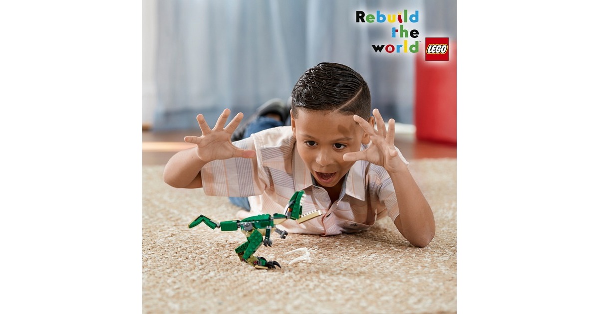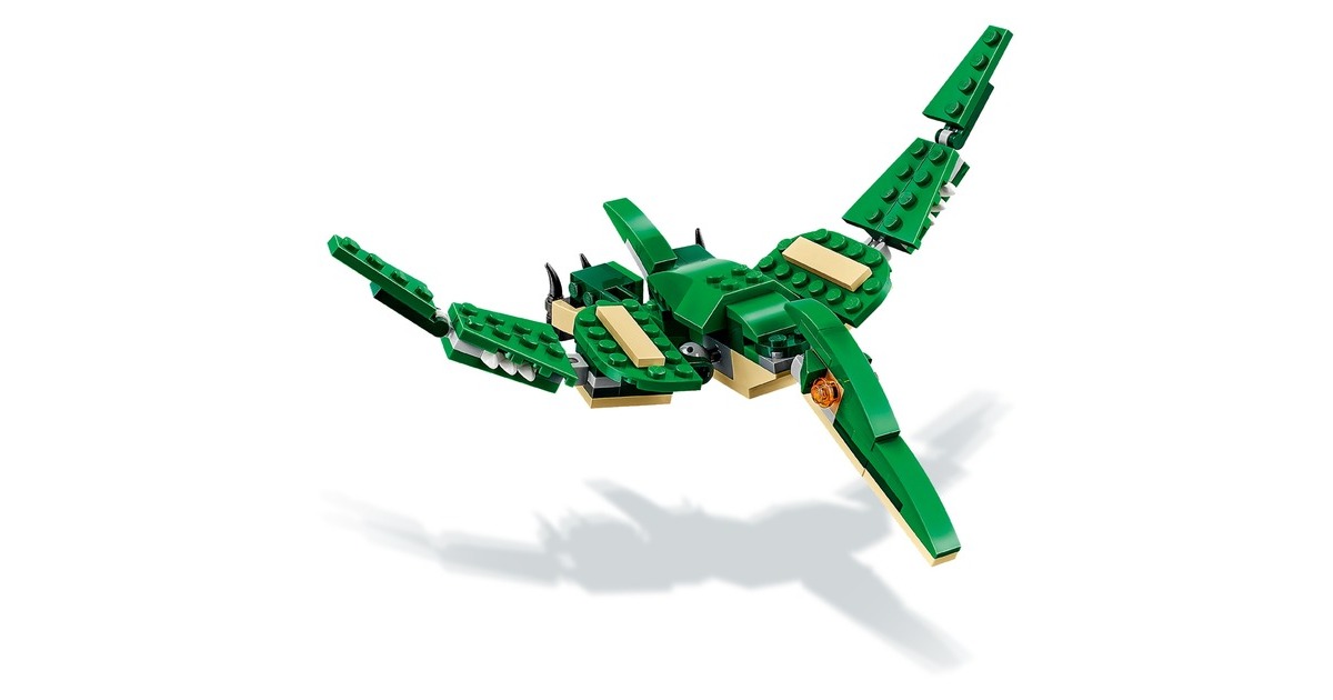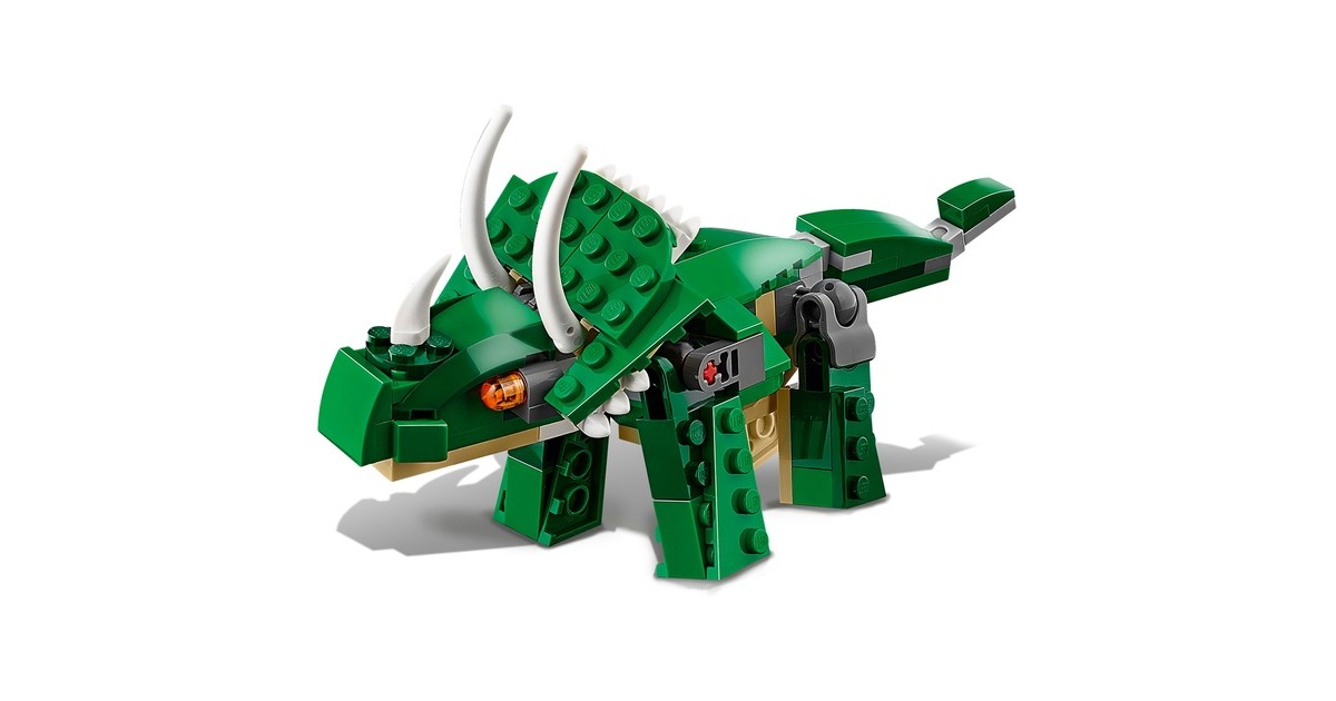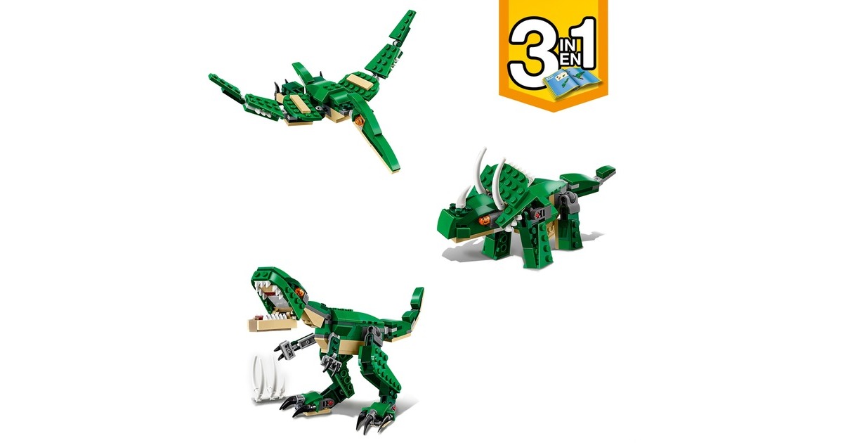 Mit diesem bedrohlichen T-Rex in den Farben Dunkelgrün und Beige und mit leuchtend orangen Augen kannst du den Boden erzittern lassen. Wenn du sein Maul aufklappst, kommen rasiermesserscharfe Zähne zum Vorschein. Seine gewaltigen Klauen lassen sich ebenso bewegen wie sein Kopf und sein Schwanz. In diesem Set sind auch die Überreste von der letzten Mahlzeit des T-Rex enthalten! Lässt sich auch in zwei andere Dinosaurier umbauen - in einen kräftigen Triceratops oder einen eindrucksvollen Pterodactylus.Art.-Nr.: 1316863