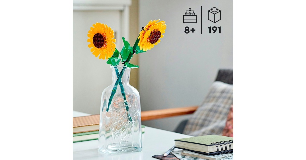 Sonnenblumen stehen für Heiterkeit und Optimismus - und das gilt auch für diese LEGO-Set aus der Serie Iconic. Aus 191 Teilen entstehen zwei Sonnenblumen mit individuell anpassbaren Stängeln und Blättern. Ob zum Ausstellen oder Verschenken - ein Farbtupfer in jeder Umgebung. Art.-Nr.: 100012105