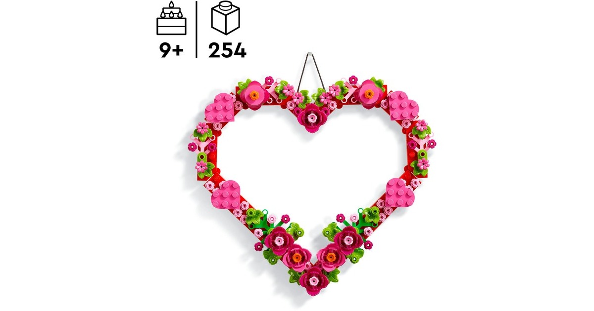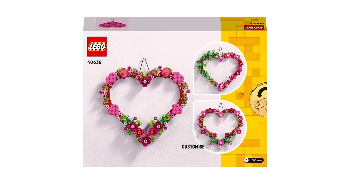 Dieses individuell gestaltbare Herz aus LEGO-Teilen kann an vielen Anlässen wie Valentinstag, Muttertag oder Vatertag das Wohnzimmer oder das Büro schmücken. Die 254 Teile enthalten auch einen Aufhänger, mit dem das Herz an einer Wand, einer Tür oder an einem Fenster befestigt werden kann. Art.-Nr.: 1918926