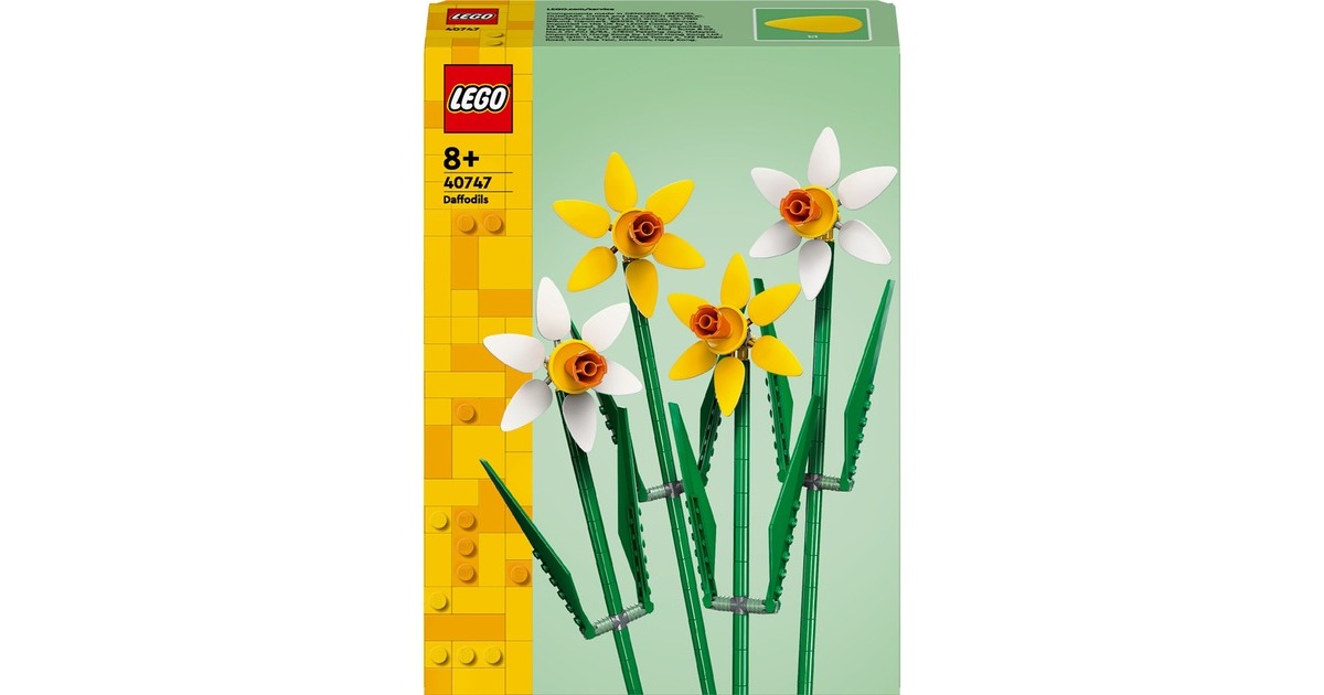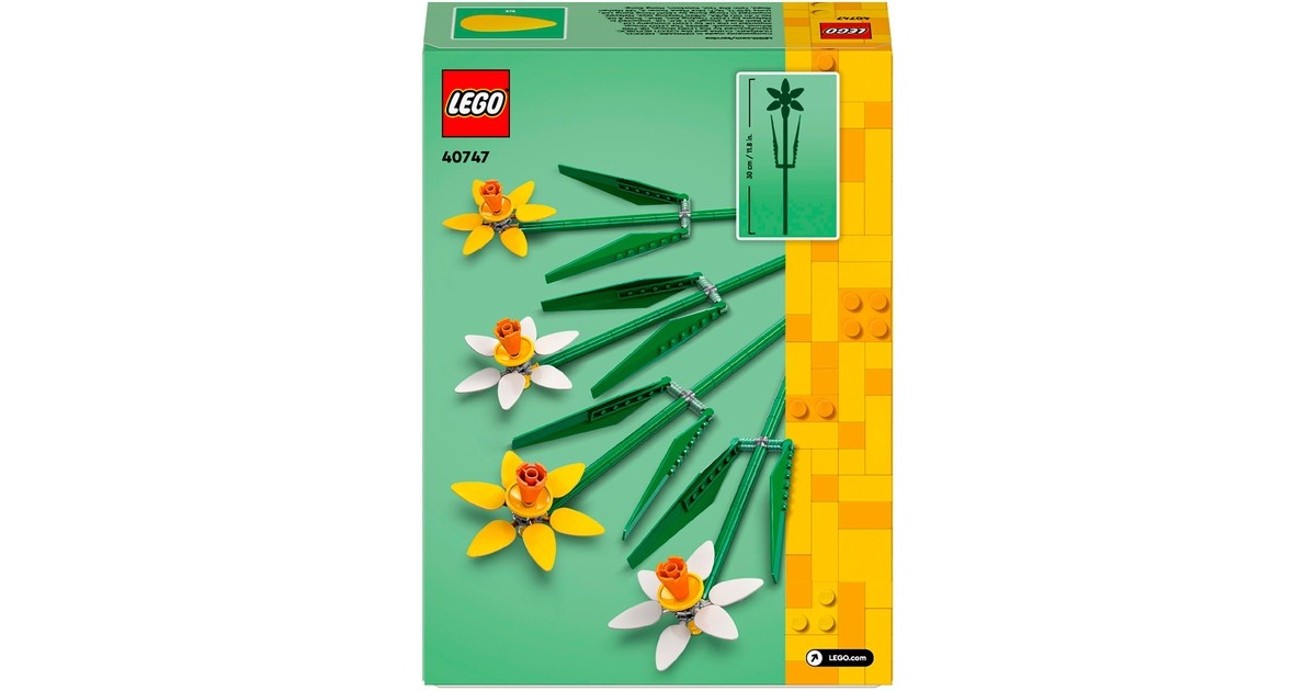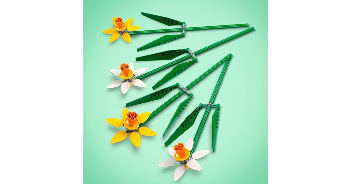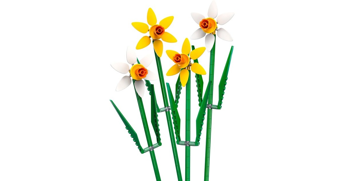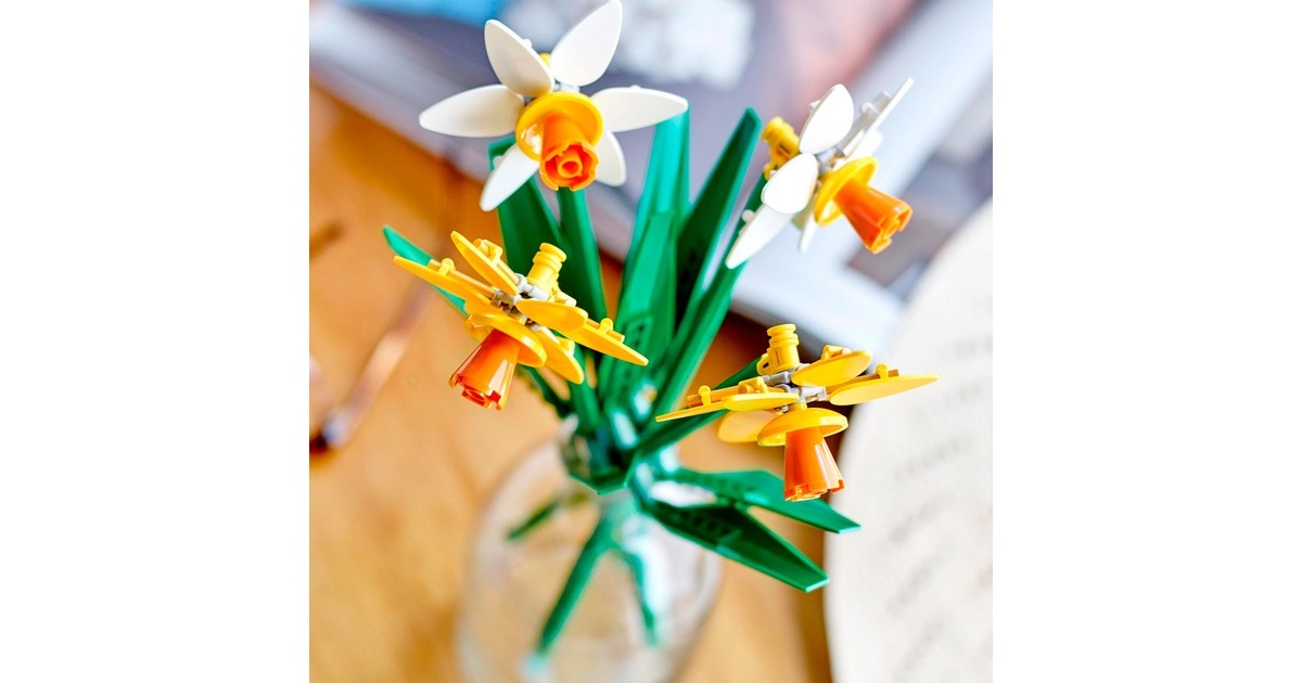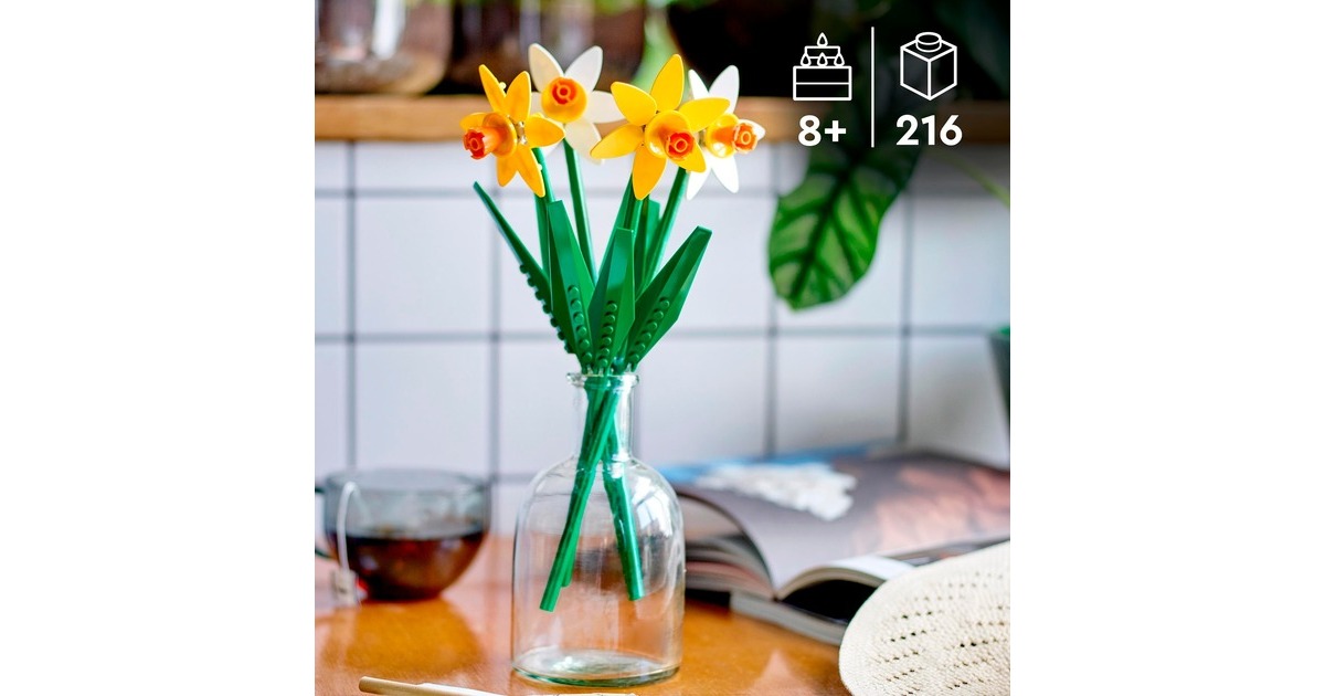 Dieses Set aus der Serie LEGO Iconic bringt natürliche Schönheit nach Hause. Es enthält zwei gelbe und zwei weiße Narzissen mit vier pastellfarbenen Blüten. Stängel und Blätter lassen sich individuell platzieren und verstellen. Die fertigen künstlichen Blumen können alleine oder in Kombination mit anderen, separat erhältlichen LEGO-Blumensets ausgestellt werden - ideal für das Kinderzimmer oder als Schreibtisch-Dekoration.Art.-Nr.: 100012118