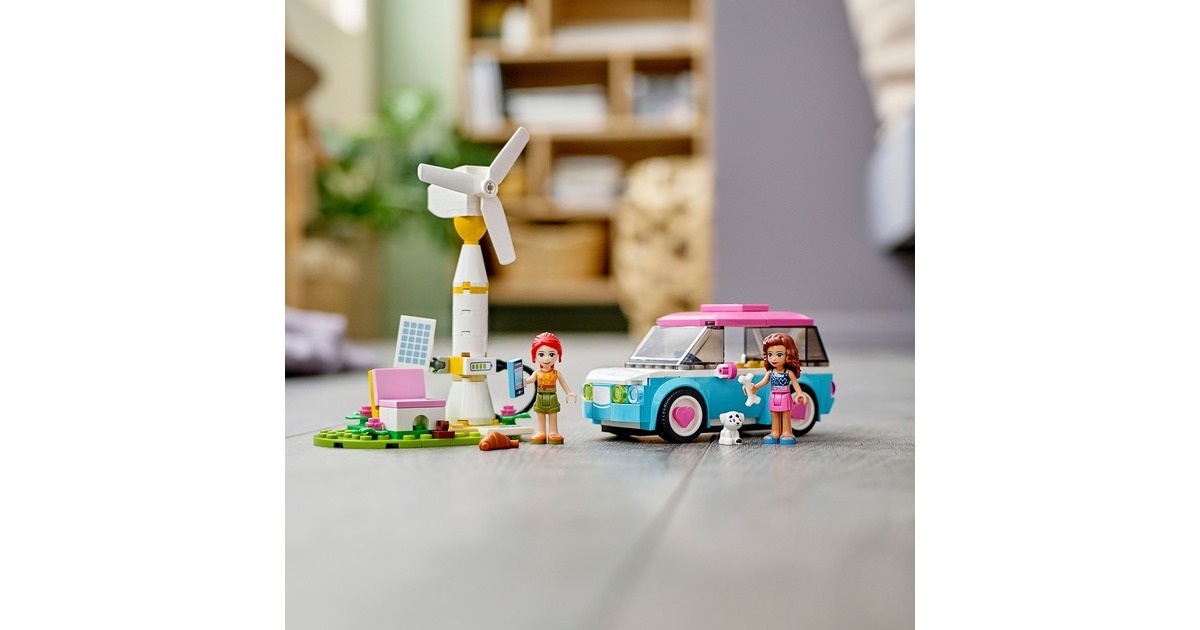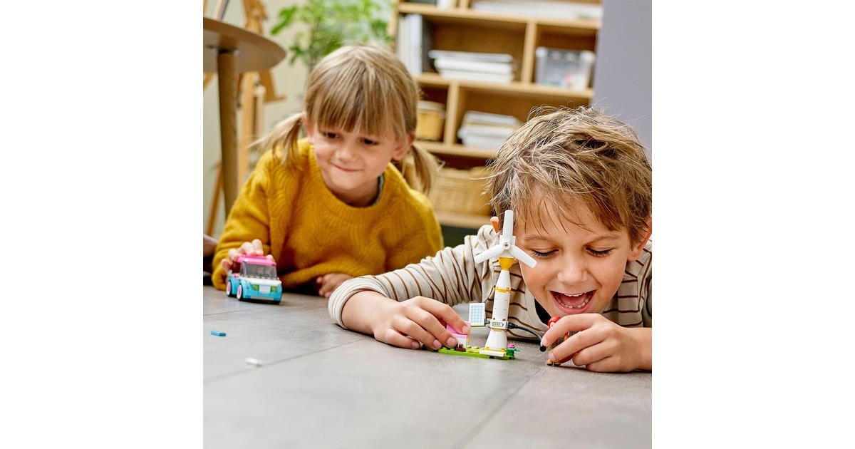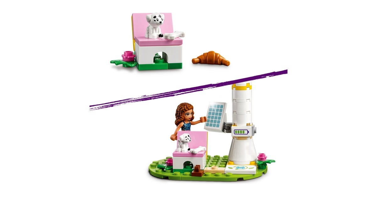 Das Spielset enthält 2 Spielfiguren (Olivia und Mia) und eine Welpenfigur sowie ein baubares Auto. Außerdem gibt es eine Ladestation mit Spielzeug-Windturbine und Solarpanel und einen Picknickplatz. |