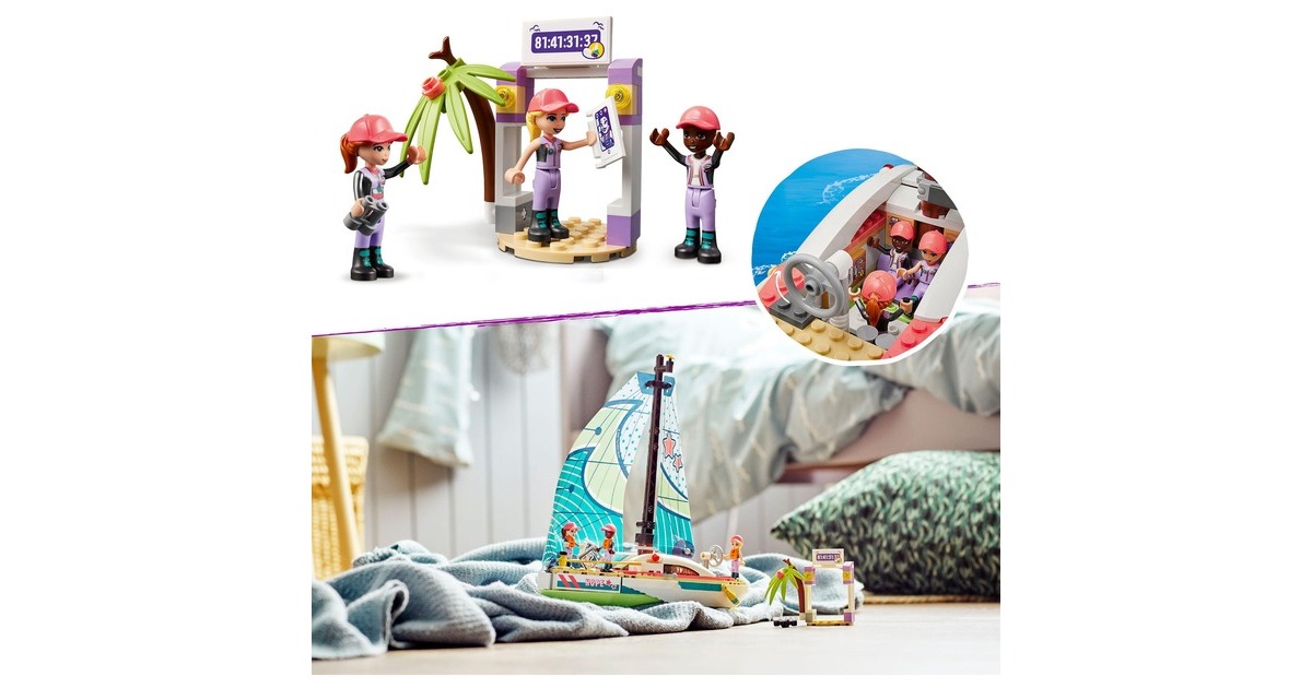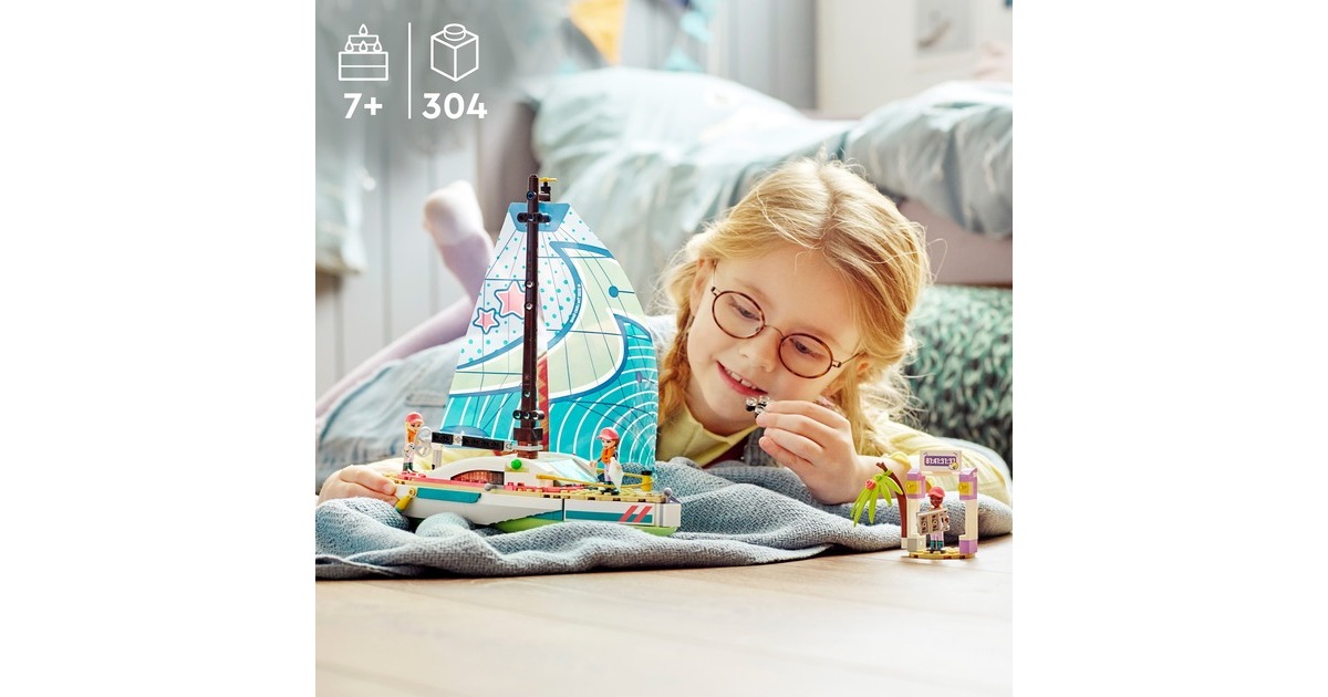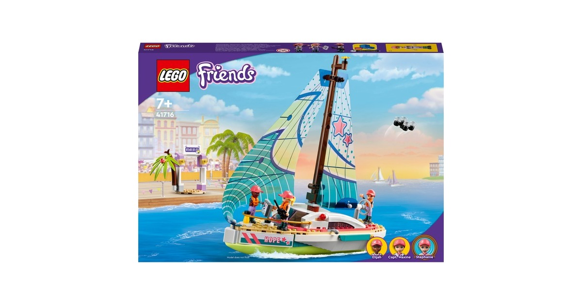 Schenke deinen Kleinen, die Boote und coole LEGO Fahrzeugmodelle lieben, LEGO Friends Stephanies Segelabenteuer (41716), ein Spielzeug Segelboot für Kinder ab 7 Jahren. Die Kinder können LEGO Friends Stephanie begleiten, die sich ihren Traum erfüllt hat und sich einer Crew anschließt, die versucht, den Weltrekord im Segeln rund um den Globus zu brechen. Dieses LEGO Friends Spielset enthält ein Spielzeug Segelboot mit authentischen Details wie einem flexiblen Segel, Radar und einem Schiffsrad, das sich tatsächlich dreht. Außerdem gibt es 3 LEGO Friends Mini-Figuren, die helfen, fantasievolle Geschichten über Abenteuer auf hoher See zu erzählen: Stephanie, Elijah und Kapitän Maxine mit jeder Menge coolem Zubehör wie einem Tablet, mit dem man zu Hause anrufen kann, einem Walkie-Talkie, einem Spielzeug-Fernglas, einer Drohne und einem Controller sowie 3 Schwimmwesten, um die Mini-Figuren zu schützen. Mit diesem kreativen Set lernen Kinder auch etwas über die epische Leistung eines weltbekannten Seglers, wenn sie an Stephanies Traumreise teilnehmen, bei der sie alles gibt, um sportliche Höchstleistungen zu erbringen.