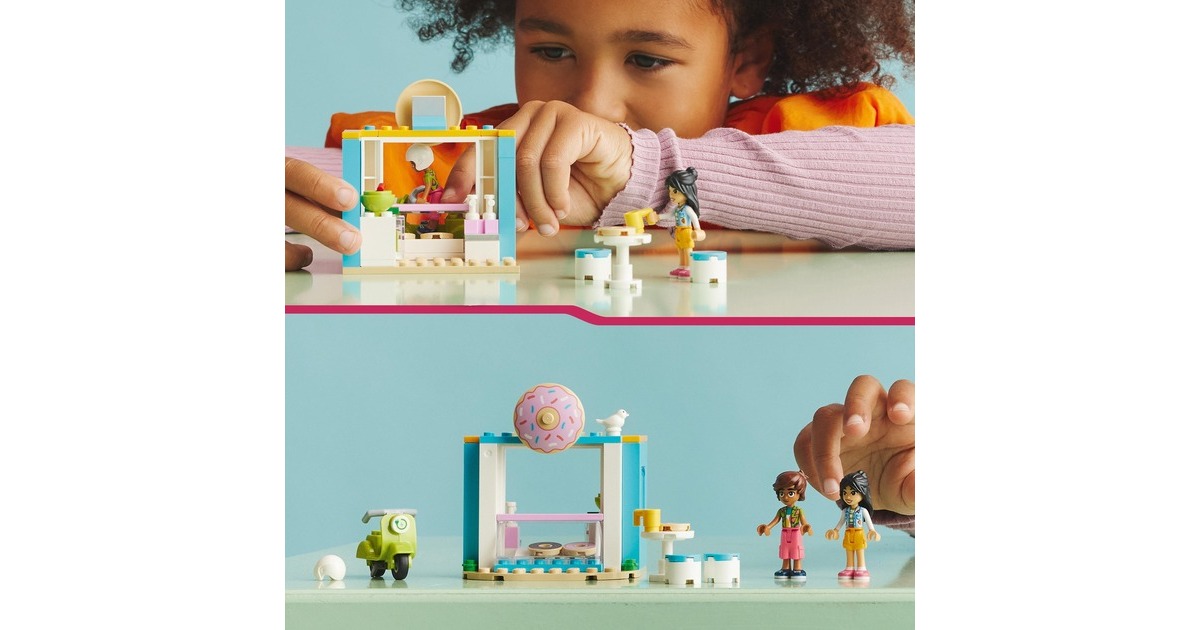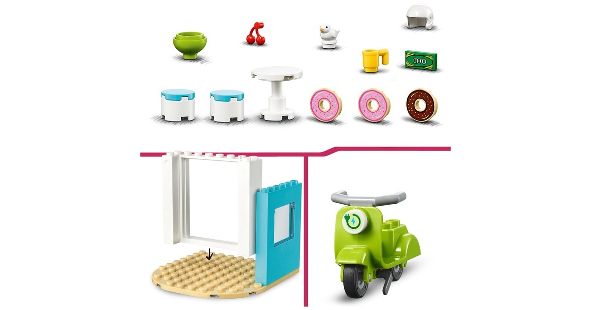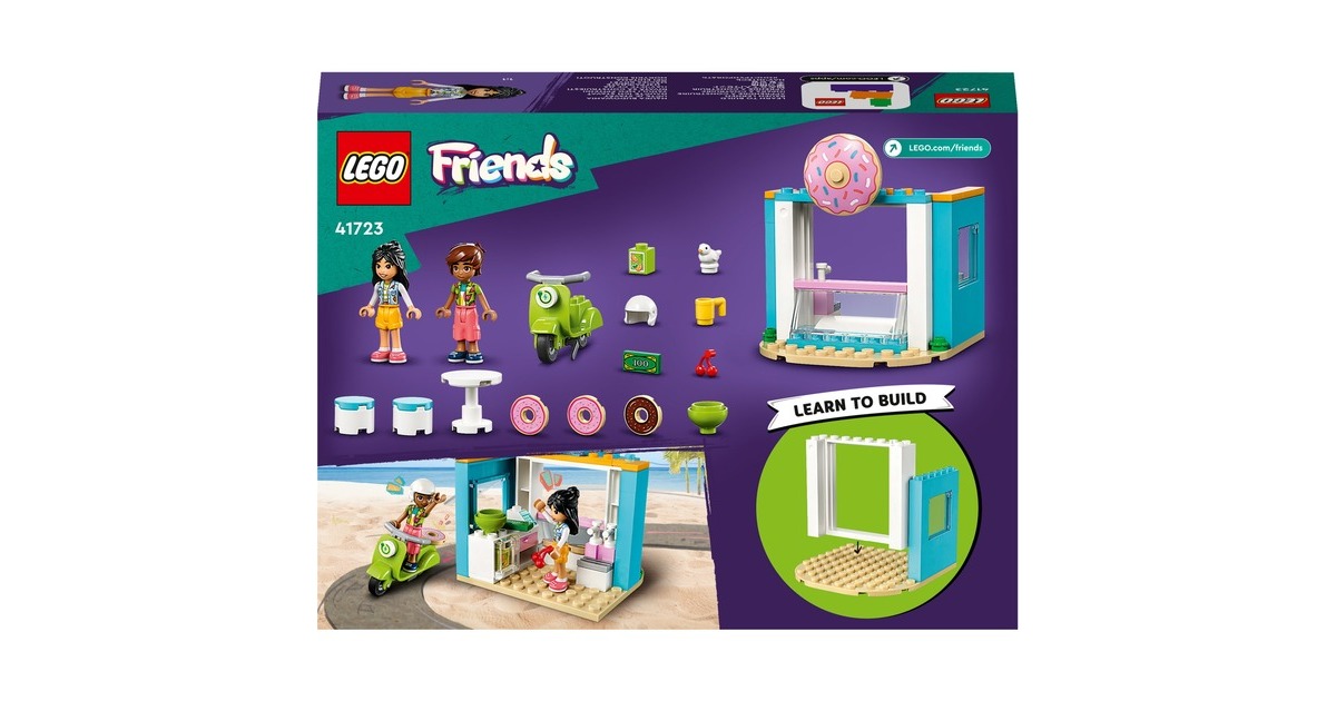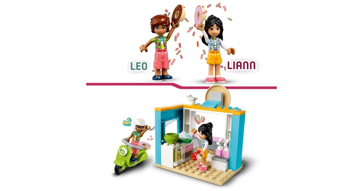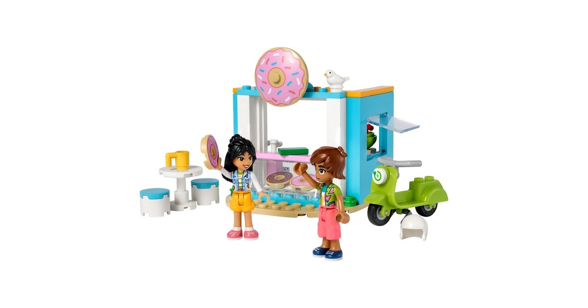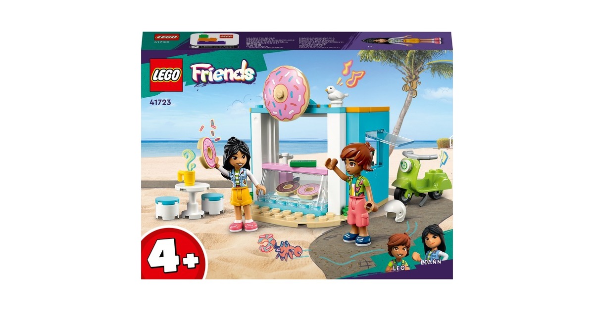 Dieses LEGO-Set aus der Serie Friends enthält einen baubaren Donut-Laden mit einem Durchfahrtsfenster und die Mini-Puppen Liann und Leo. Es gibt jede Menge Zubehör - darunter ein Friends Scooter, eine Schüssel, Beeren, eine Tasse, ein Vogel, Donuts, Saft, Geld, ein Tisch und 2 Stühle. Zu diesem Spielset ab 4 Jahren gehört auch ein hilfreicher Starter-Stein, der eine stabile Basis für schnellen Bauerfolg bildet.Art.-Nr.: 1869304