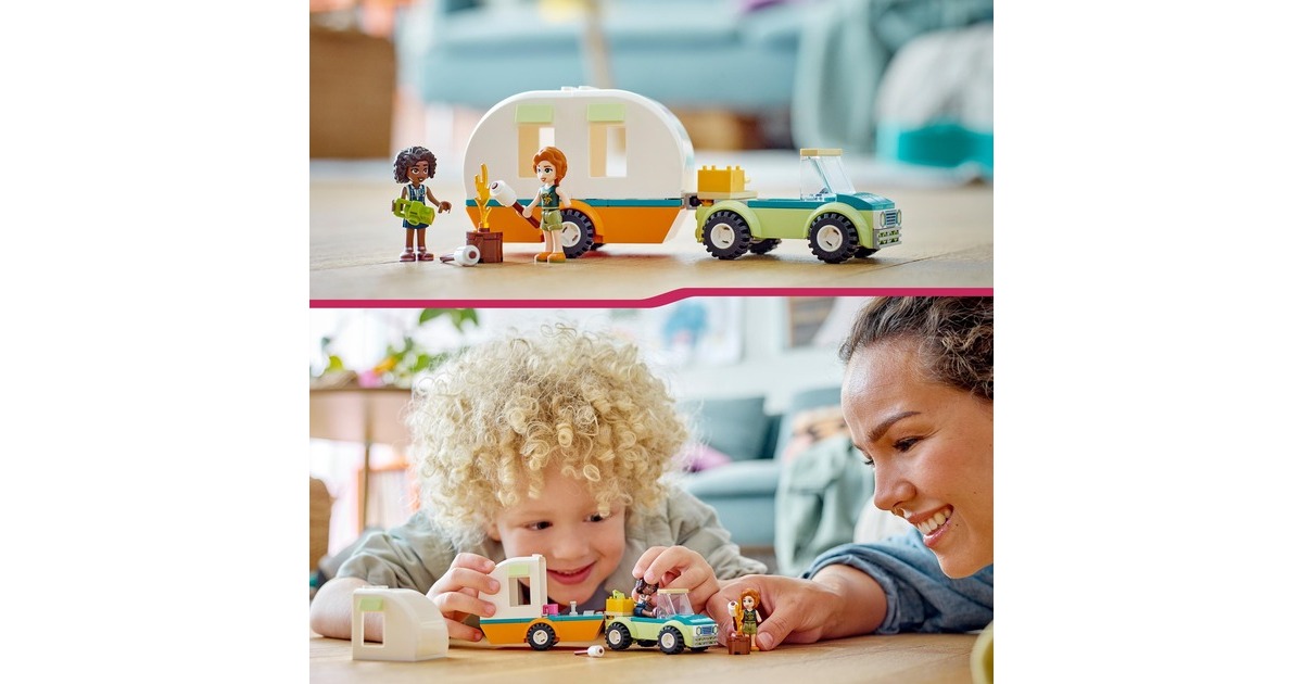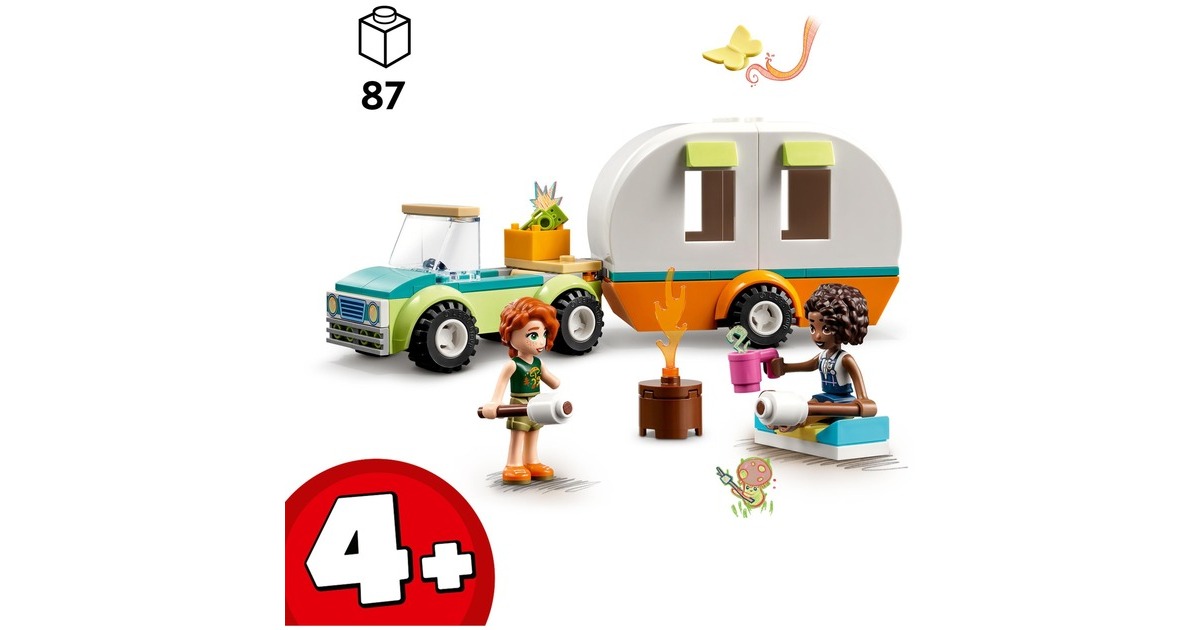 Auf geht`s in die Natur - mit dem Wohnwagen und den Minifiguren Autumn und Aliya. Mit dabei in diesem LEGO-Set aus der Serie Friends: Jede Menge Campingzubehör wie eine Kamera, ein Lagerfeuer und Marshmallows. Junge Baumeister ab 4 Jahren können Autumn und Aliya helfen, ihr Auto und den Wohnwagen zum perfekten Ort im Wald von Heartlake City zu fahren. Durch das abnehmbare Dach kann das Innere des Wohnwagen-Spielzeugs erkundet werden. Das Set wird mit einem Starter-Stein geliefert, der eine stabile Basis für schnellen Bauerfolg bietet.Art.-Nr.: 1869311