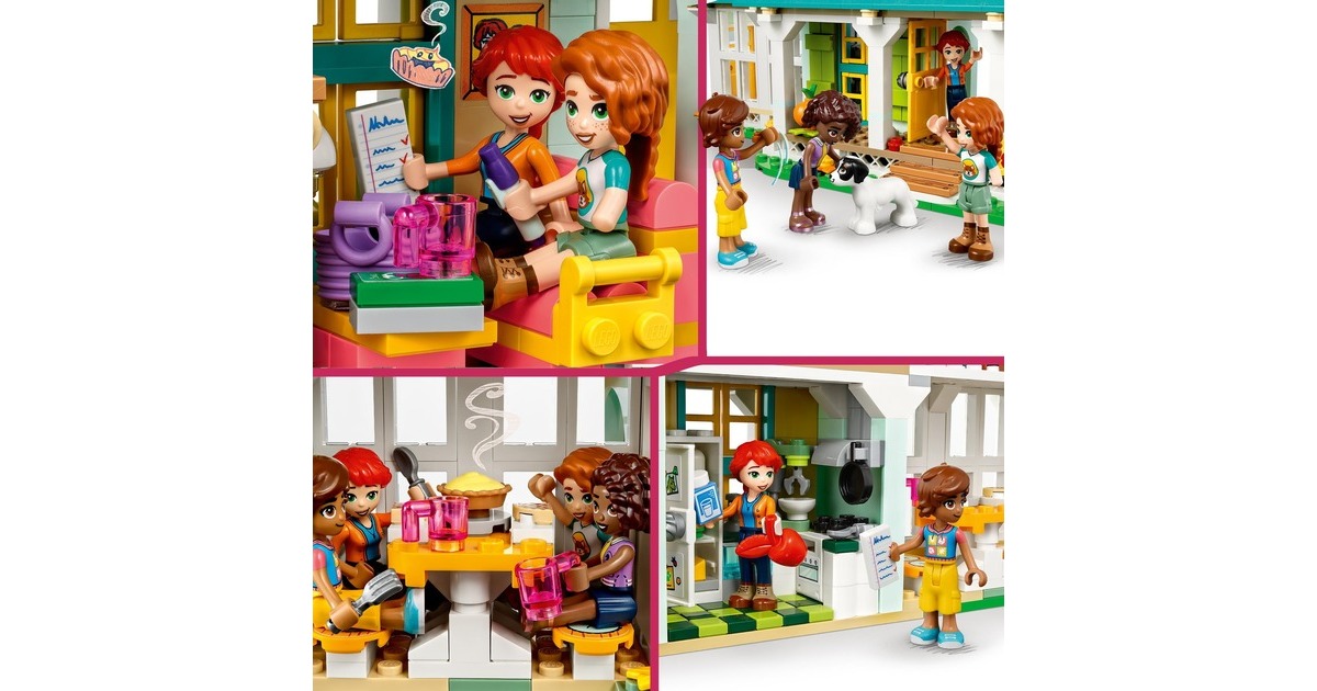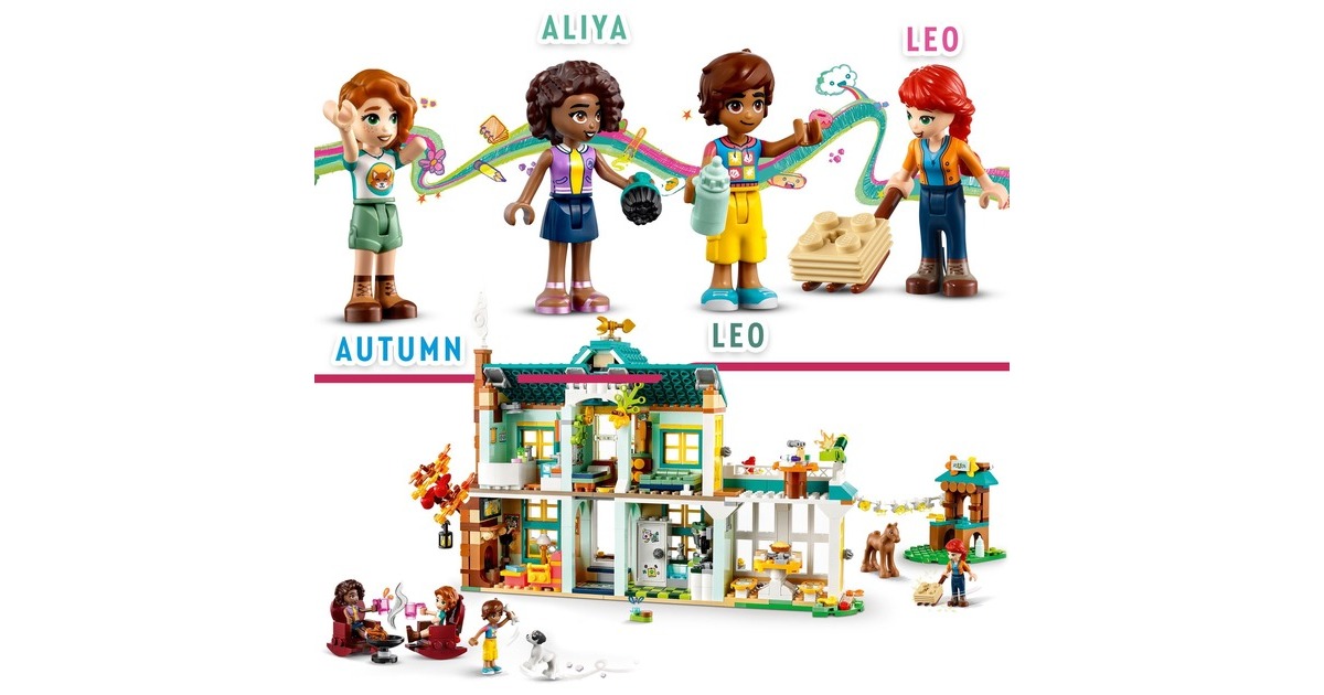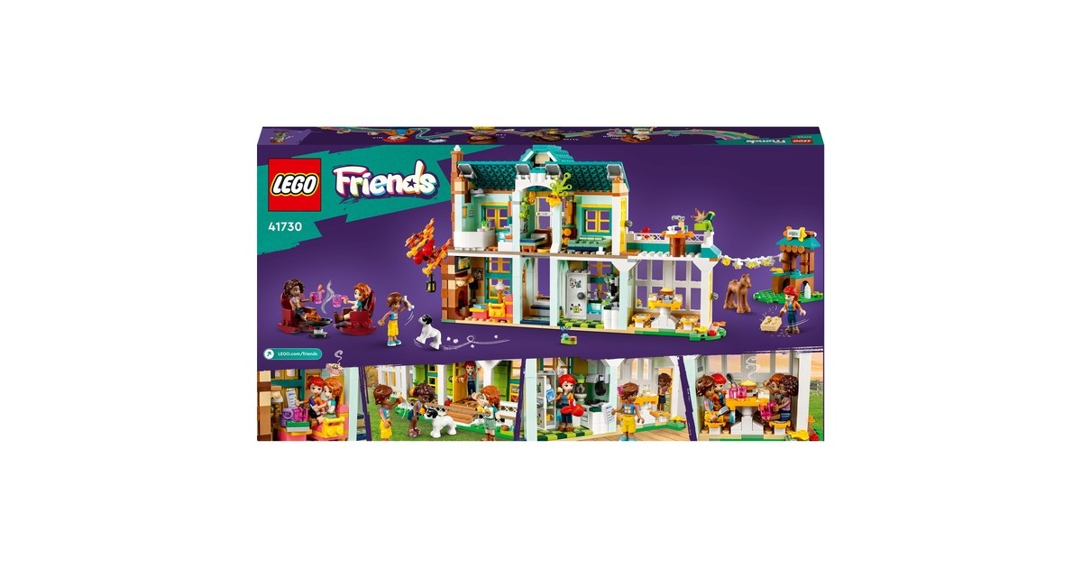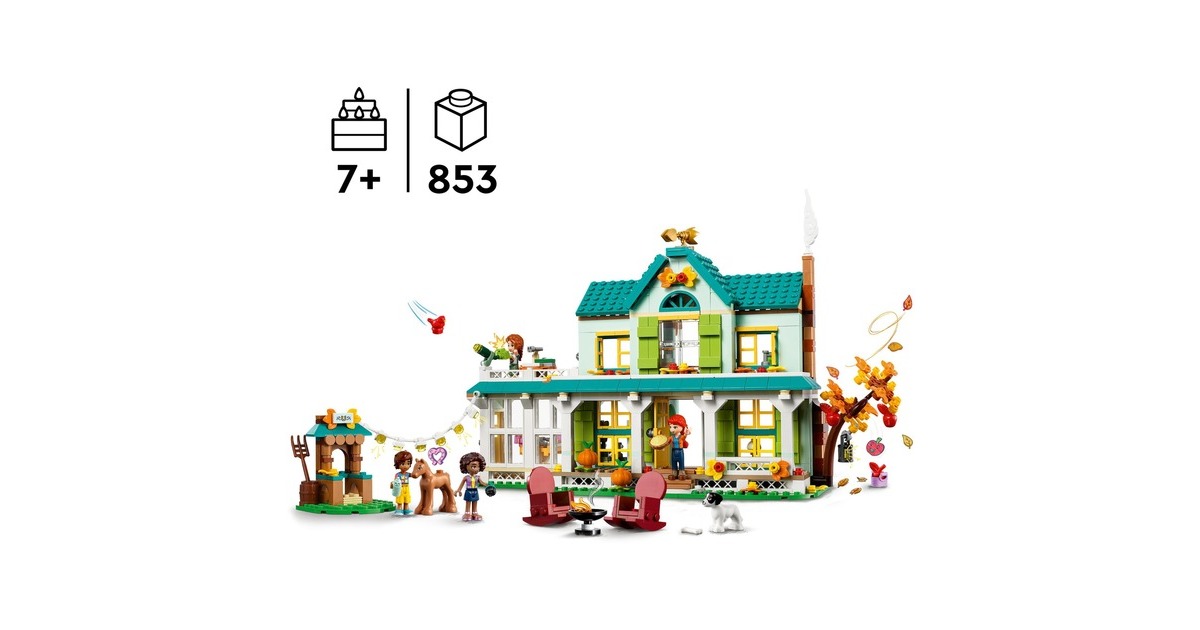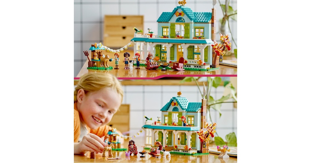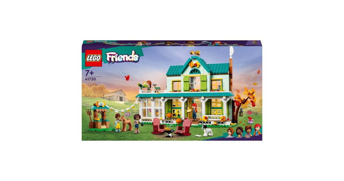 Mit dem Spielset LEGO Friends Autumns Haus gibt es viel zu erleben. Die gutherzige Autumn hat ihre Freunde Leo und Aliya zu sich nach Hause eingeladen. Für jeden gibt es etwas zu tun: Backfans können Leo beim Äpfelpflücken helfen und dann in der Küche einen Kuchen backen. Junge Tierfreunde können Aliya zur Hand gehen und das junge Fohlen umsorgen. Im Haus gibt es viele Zimmer zu entdecken - unter anderem eine Küche, ein gemütliches Wohnzimmer, eine Essecke, ein Badezimmer und Autums Kinderzimmer mit Naturmotiven. Auch draußen befinden sich spannende Bereiche wie der Balkon mit Teleskop, Notizbuch und Fernglas. Dort können die Freunde auch Vögel beobachten. Das Set enthält die Spielfiguren Autumn, Leo und Aliya sowie Aliyas Mutter Mia, die Hündin Daisy und das Fohlen der Familie. Hinzu kommt tolles Zubehör wie ein Fernrohr, ein Notizbuch und ein Fernglas, Backzutaten, Kürbisse, Äpfel, Tassen und Futter für die Schäferhündin Daisy.Art.-Nr.: 1869317