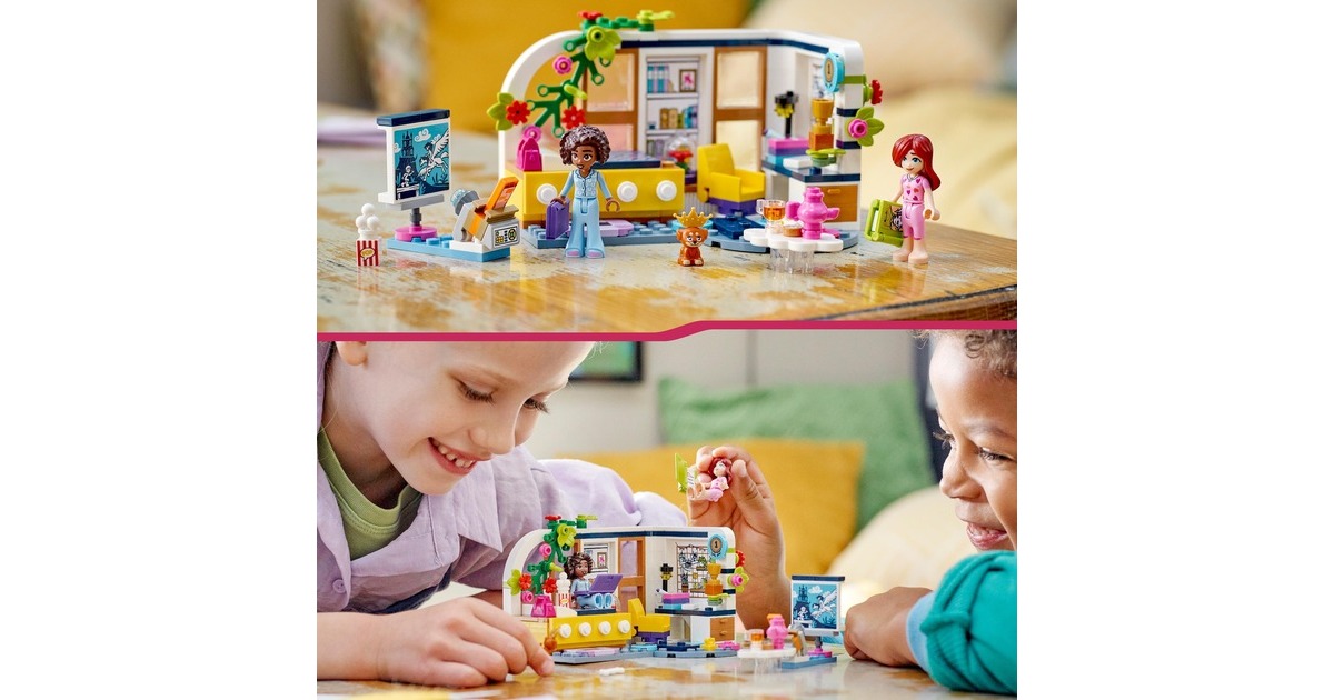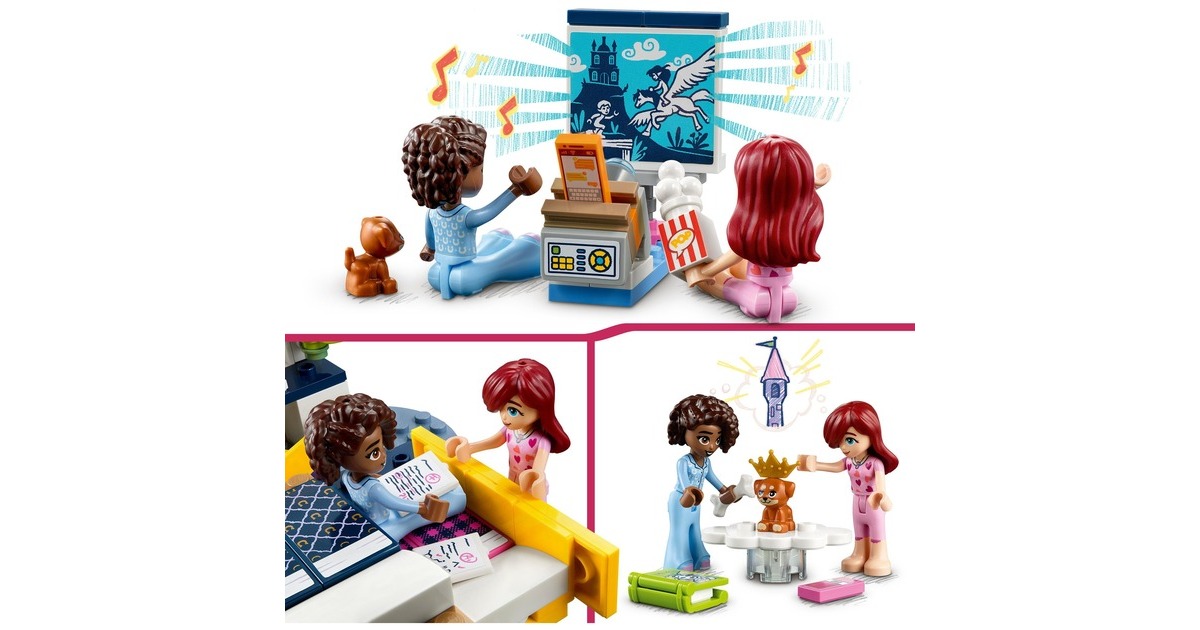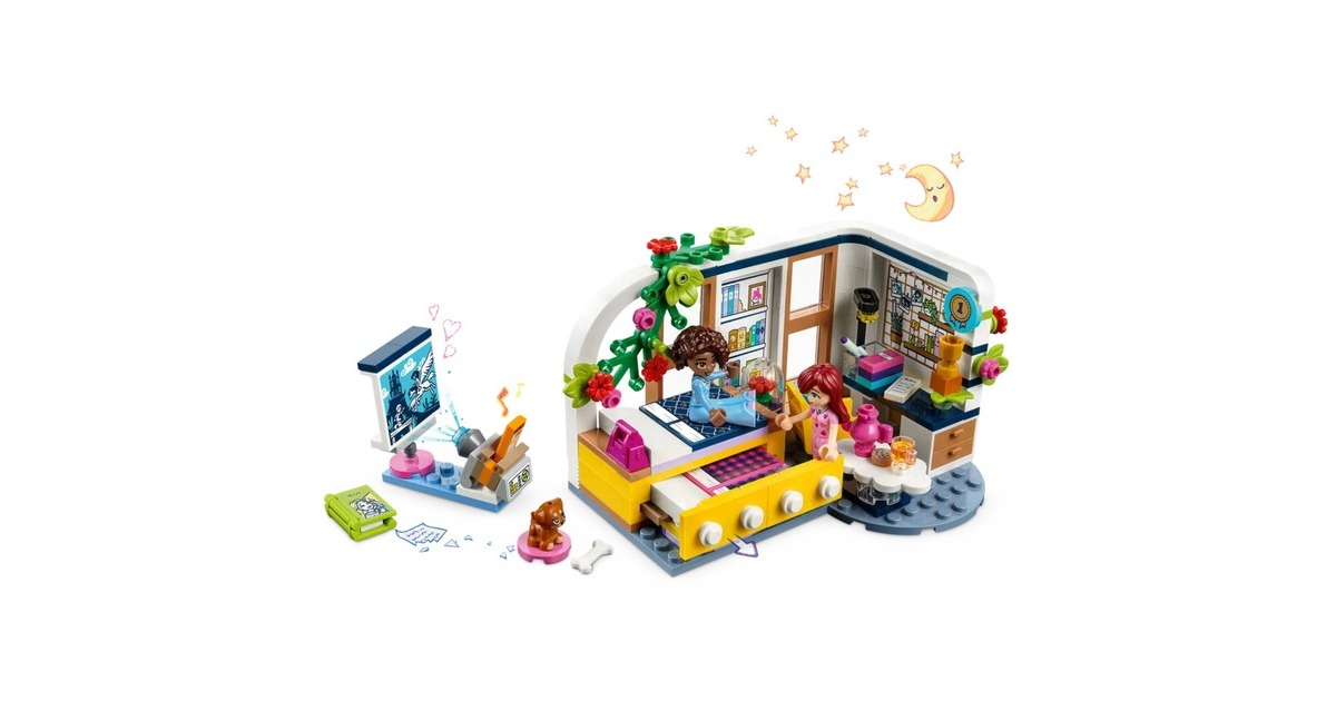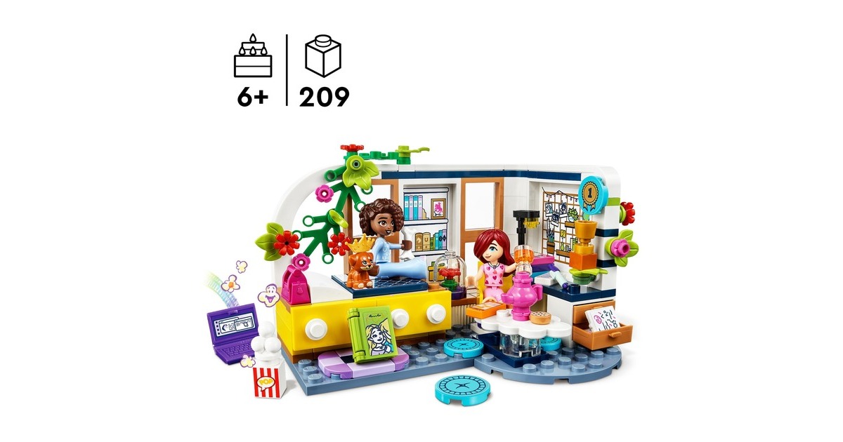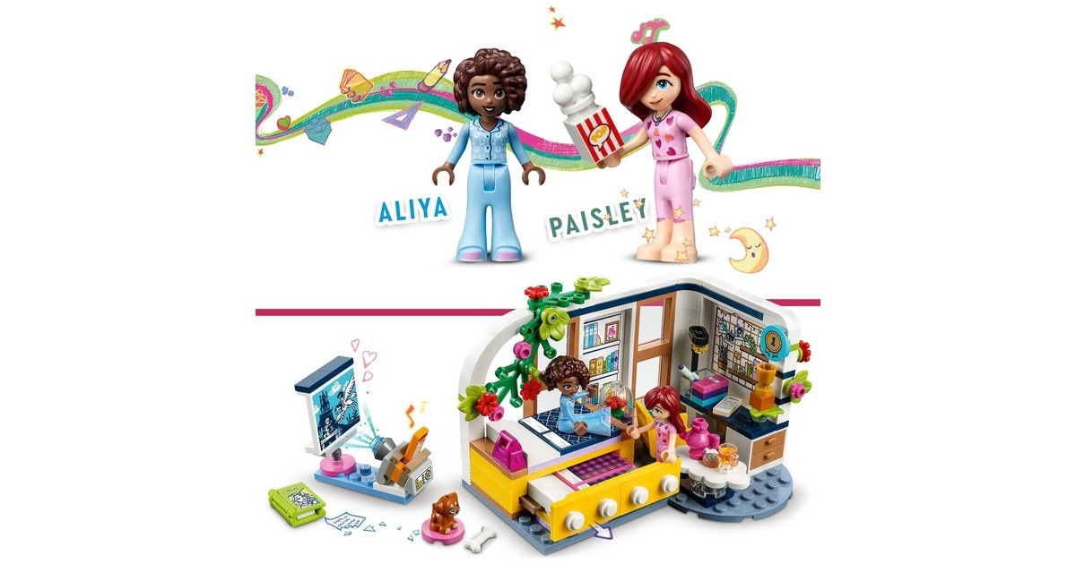 Dieses LEGO Friends Spielset besteht aus den LEGO Friends Minipuppen Paisley und Aliya sowie einem Haustier. Das Zimmer spiegelt Aliyas fleißige Natur wider - mit Zubehör wie Hausaufgaben, einem Drehstuhl, einem Laptop, einem Buch, einer Lampe und einer Trophäe. Hinzu kommen kleine Details wie die mit F benotete Hausaufgabe, die Aliya am Ende ihres Stapels von A-Noten versteckt hat! Vielleicht kann Paisley ihr helfen zu lernen, nicht so streng mit sich selbst zu sein. Wenn Zeit für Entspannung ist gibt es einen großen Bildschirm für Filme und Hundespielzeug für Spielstunden mit Aliyas Haustier.Art.-Nr.: 1869326