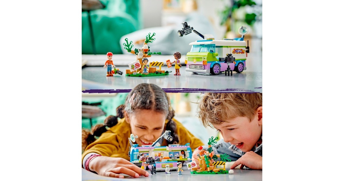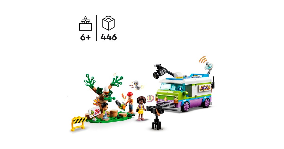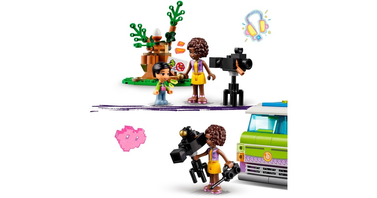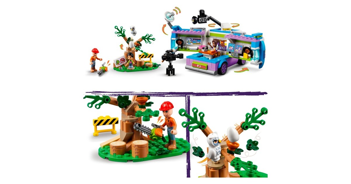 Der Nachrichtenwagen ist immer auf dem Weg zu den spannendsten Neuigkeiten von Heartlake City! Aliya filmt gern Nachrichtenbeiträge fürs örtliche Gemeinschaftszentrum. Heute ist sie mit dem Nachrichtenwagen unterwegs, um von einem Baum zu berichten, der gefällt werden soll. Doch da ist noch der Junge, der die Eule im Baum retten will. Werden die beiden den schönen Vogel und sein Ei retten können? Im Nachrichtenwagen ist alles vorhanden, um Nachrichtenbeiträge zu filmen und zu senden. Dort befinden sich unter anderem Bildschirme, Lampen, Mikrofone und ein Notizheft mit Stift. Wenn die Geschichte dann im Kasten ist, kann Aliya in den Wagen steigen, um den Beitrag im eingebauten Studio zu bearbeiten und zu senden. Das Set beinhaltet 3 Spielfiguren: Aliya, Holzfäller Peter und den Jungen Darrel. Art.-Nr.: 1904687
