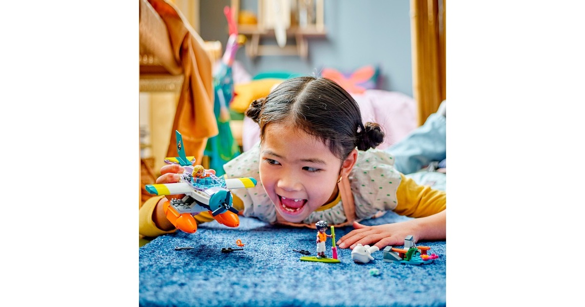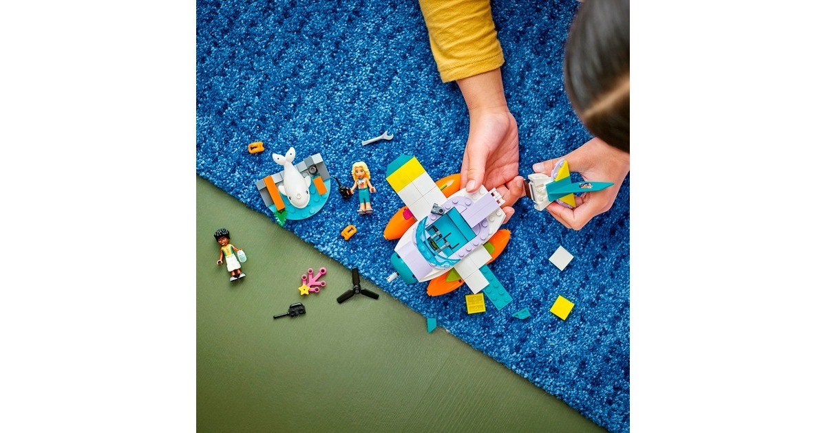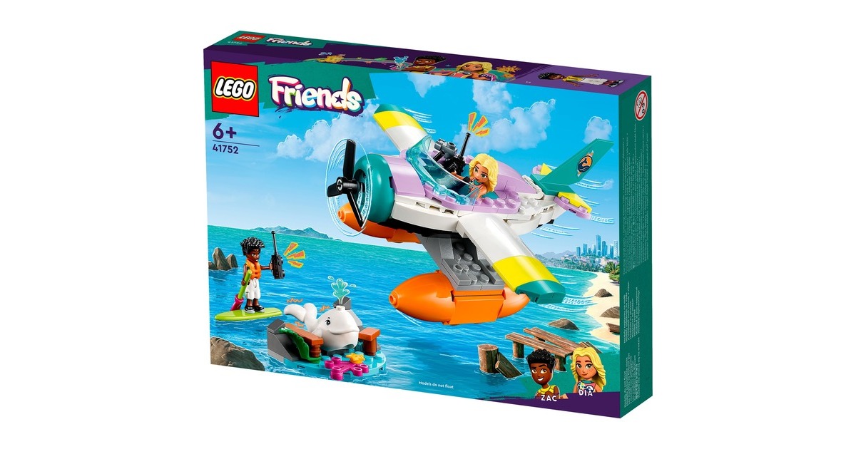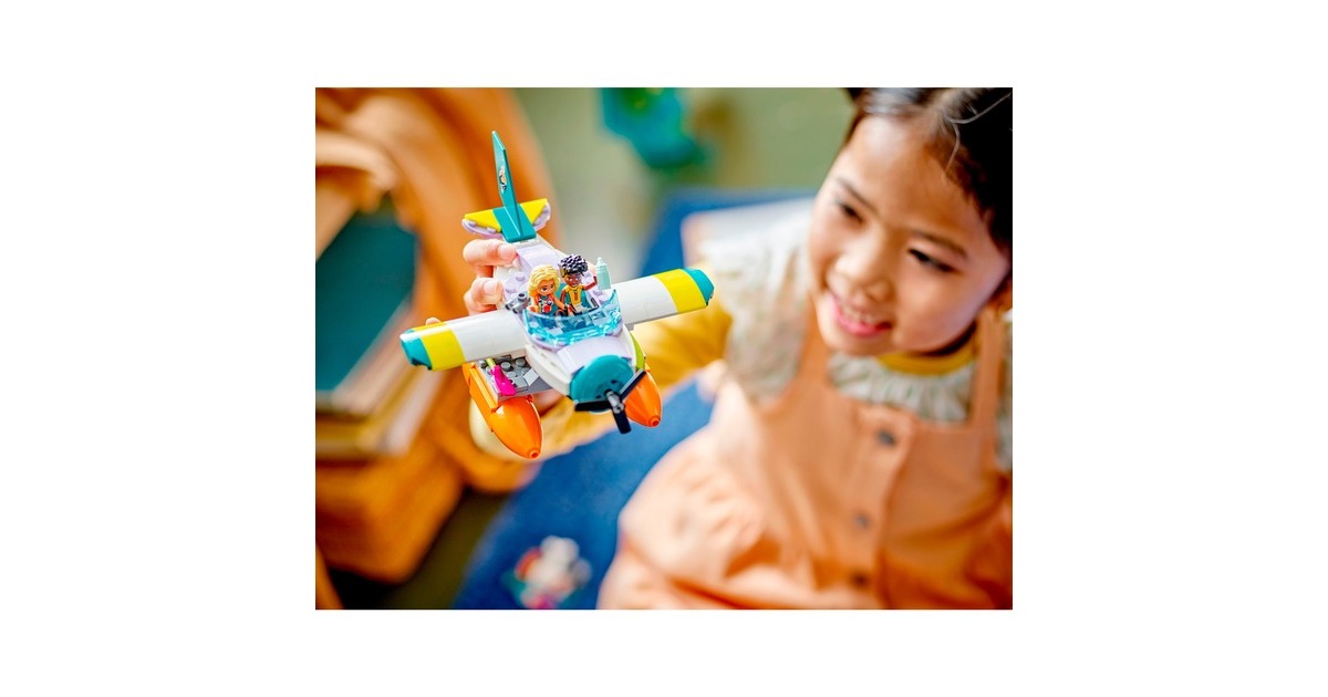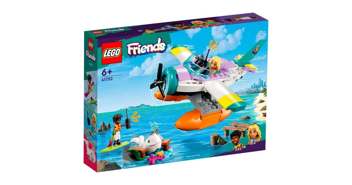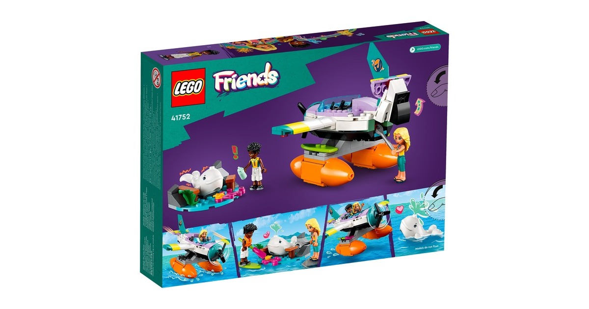 Mit LEGO Friends auf Wal-Rettungsmission: Zac hat einen Weißwal entdeckt, der zwischen Felsbrocken und altem Treibholz am Strand von Heartlake City festklemmt. Doch Dia ist schon mit ihrem Seerettungsflugzeug in der Luft. Zac funkt Dia an, damit sie zusammen den Wal retten können. Sobald der Wal wieder sicher ins Meer zurückgekehrt ist, darf sich Zac auf einen Rundflug freuen. Das baubare Rettungsflugzeug aus diesem Set hat 2 Sitze und einen Frachtraum. Die Strandkulisse besteht aus Zacs Paddelbrett und Teilen, die sich bewegen lassen. Mit dabei sind zwei Friends-Figuren und ein weißer Wal. Art.-Nr.: 1904688
