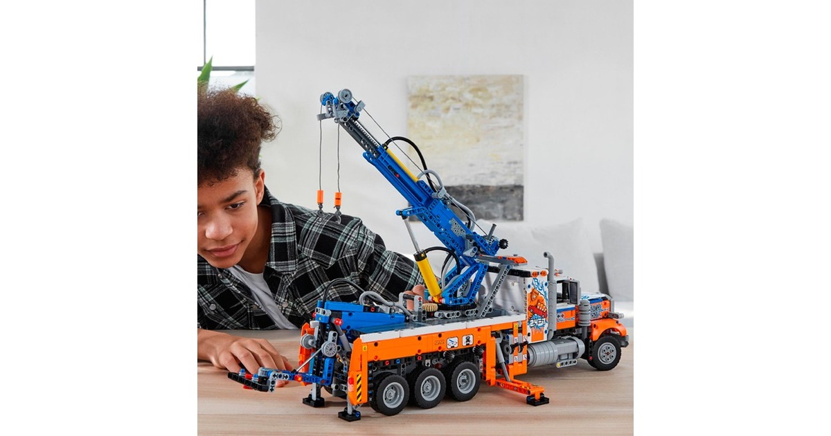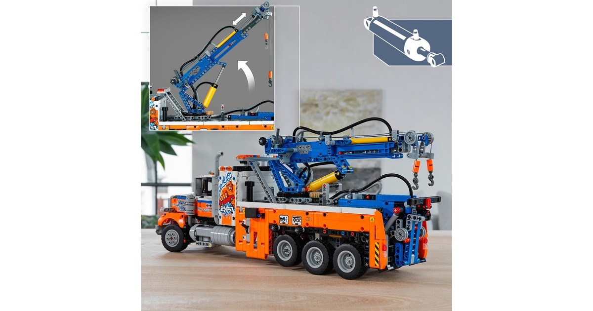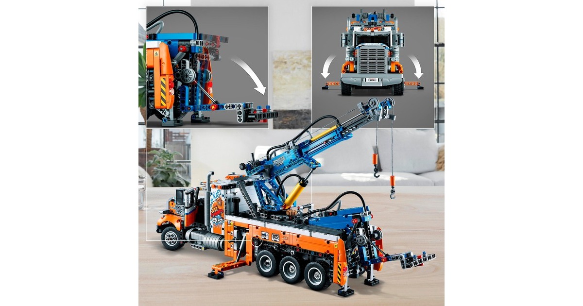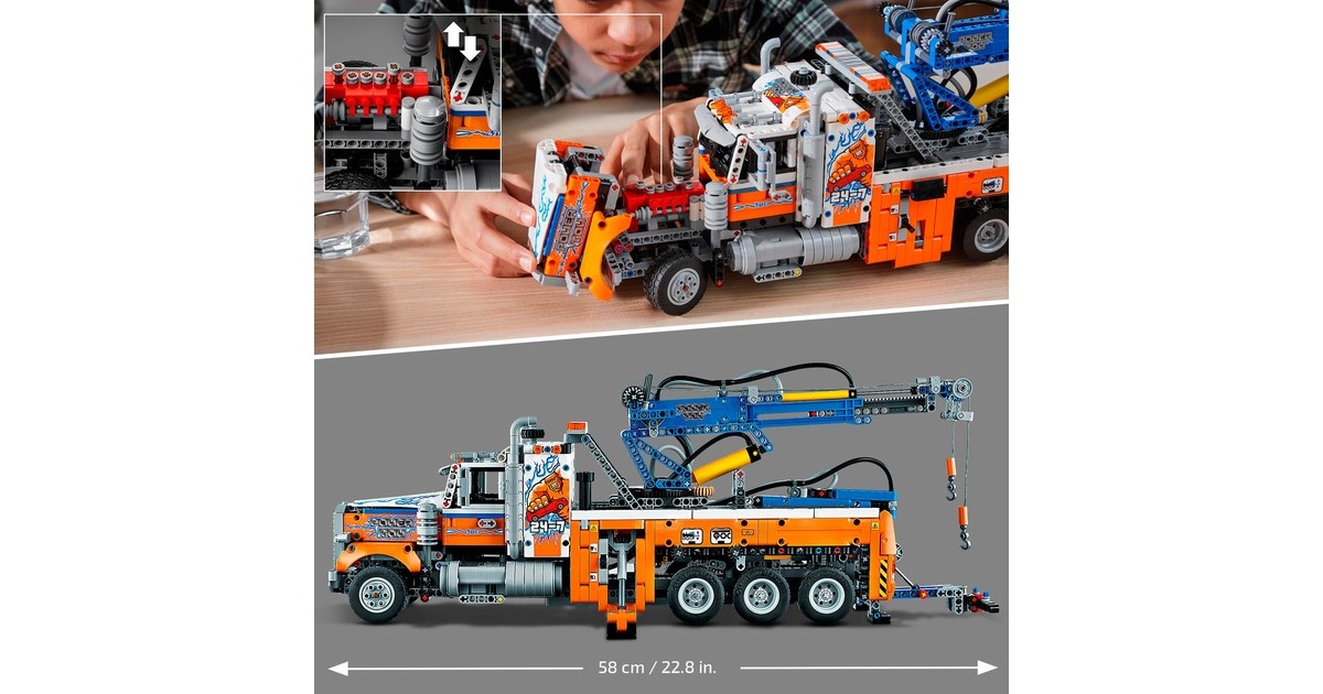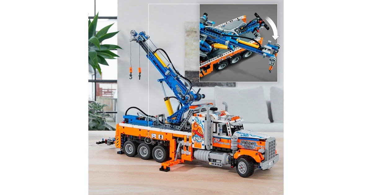 Mit diesem LEGO Technic Schwerlast-Abschleppwagen (42128) öffnet sich für Kinder die Welt der Technik. Vollgepackt mit Details ist das Set eine großartige Hommage an die beliebtesten Abschleppwagen der Welt. Sieh dir den authentischen Kühlergrill, die Luftfilter, die Lichter, das Auspuffrohr und das frische Farbschema an. Erkunde dann alle pneumatischen und mechanischen Funktionen, die das Modell so realistisch machen. Dieser Abschleppwagen mit Kran wartet mit beeindruckenden Funktionen auf. Öffne die Motorhaube, um den 6-Zylinder-Reihenmotor mit beweglichen Kolben zu betrachten. Lenke den Abschleppwagen, indem du das Rad auf dem Dach drehst. Aktiviere den Kran, pumpe den Ausleger hoch, ziehe die Winde heraus und fahre die Stützfüße aus. Und zum ersten Mal in der Geschichte von LEGO Technic hat das Gefährt eine Liftachse, um zusätzliche Räder herunterzuziehen und das Gewicht der Lasten zu verteilen. LEGO-Technic-Sets begeistern mit realistischen Bewegungen und Mechanismen, die LEGO-Baumeistern die Welt der Technik auf verständliche und realistische Weise näherbringt.Art.-Nr.: 1737112