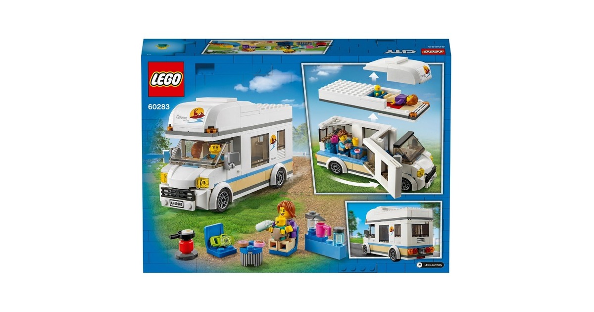 Das LEGO City Spielset „Ferien-Wohnmobil“ (60283) lässt Jungen und Mädchen an jeden Ort reisen, den sie sich vorstellen können. Das Wohnmobil enthält unzählige realistische Funktion für fantasievolle Rollenspiele. Es gibt zum Beispiel eine kleine Küchenzeile und Schlafplätze. Mutter und Vater als Minifiguren und die süße Babyfigur ermöglichen viele Campingabenteuer. Zu diesem Spielset gibt es eine einfach gedruckte Bauanleitung sowie Instructions PLUS in der kostenlosen LEGO Building Instructions App für Smartphones und Tablets. Diese interaktive Bauanleitung mit Vergrößerungs- und Drehfunktionen macht das Bauen zum Kinderspiel! LEGO City Bausets aus der Reihe „Starke Fahrzeuge“ sind tolle Geschenke für Jungen und Mädchen, die mit unterschiedlichsten coolen Fahrzeugen realistische Alltagssituationen nachstellen und spannenden Geschichten erzählen können.Art.-Nr.: 1702145