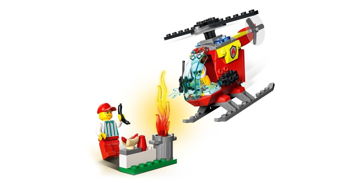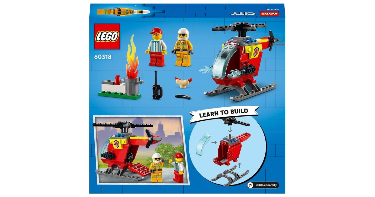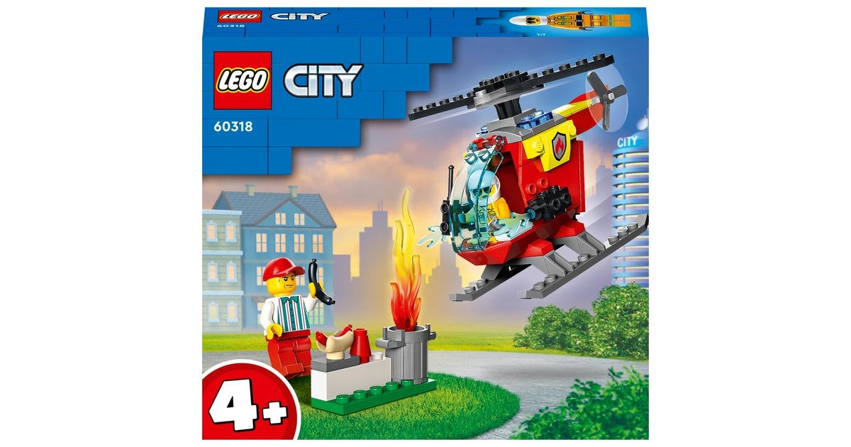 Mit dem LEGO Feuerwehrhubschrauber (60318) können Vorschulkinder in die aufregende Welt von LEGO City eintauchen. Dieses Set enthält einen Spielzeughubschrauber mit einem Staufach und Rotoren zum Drehen sowie die Minifiguren eines Feuerwehrmanns und eines Hotdog-Verkäufers. Mit dem Mülleimer, den LEGO Flammen und dem verbrannten Hotdog sind stundenlange fantasievolle Spielstunden sicher. Dieses Spielzeug für Jungen und Mädchen ab 4 Jahren beinhaltet eine bebilderte, gedruckte Bauanleitung und ein LEGO Startbaustein-Element – eine vorgeformte Basis, auf der der Hubschrauber gebaut werden kann. Außerdem erhalten die Kinder eine interaktive digitale Anleitung, mit der sie das fertige Modell während des Baus vergrößern, drehen und aus allen Blickwinkeln betrachten können. Die Bauanleitung ist in der kostenlosen LEGO Bauanleitungen App für Smartphones und Tablets verfügbar. Die LEGO City Sets enthalten detailreiche Gebäude, realistische Fahrzeuge und lustige Figuren, die die Fantasie der Kinder anregen und sie zu allerlei Abenteuern einladen, die Alltagshelden und reale Ereignisse nachzustellen. Sie sind tolle, kreative Geburtstagsgeschenke für Jungen und Mädchen ab 4 Jahren.Art.-Nr.: 1787755