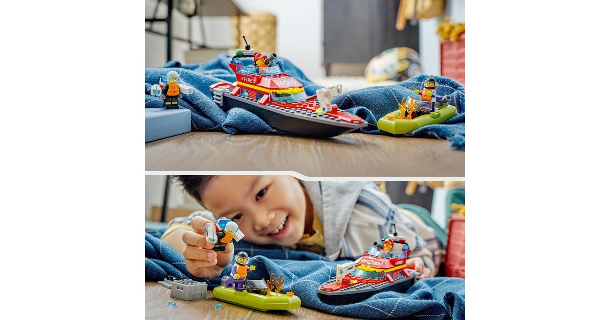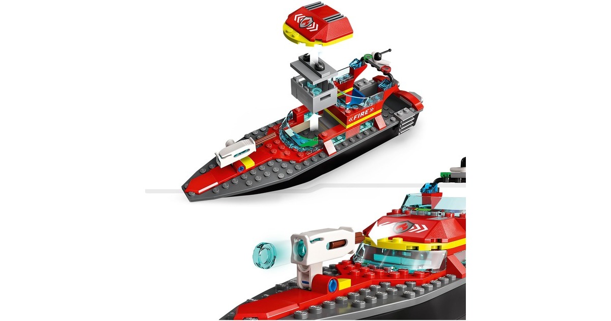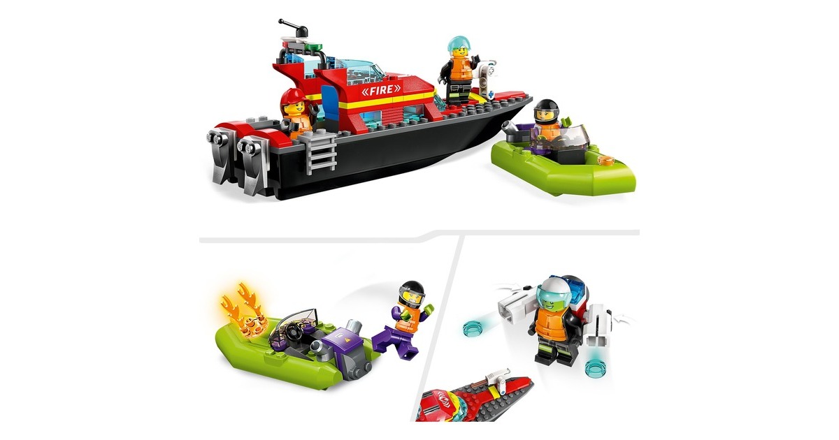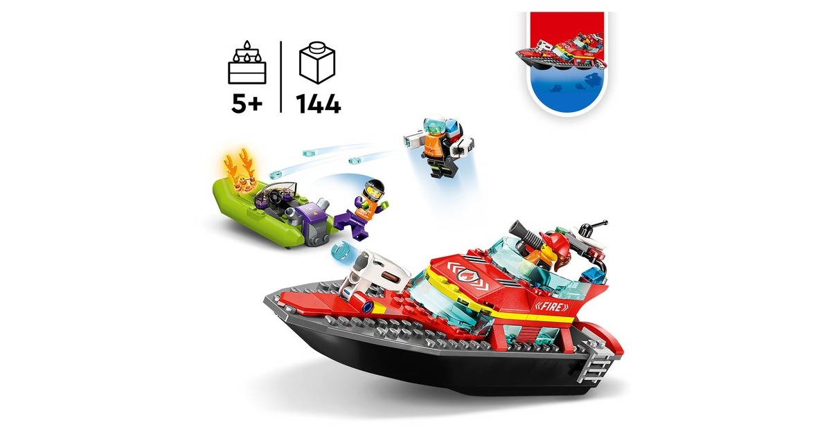 Mit dem Feuerwehrboot aus der Serie LEGO City stehen aufregende Abenteuer bevor. Das Spielset beinhaltet ein cooles Feuerwehr-Spielzeug und ein Rennboot. Mit der Löschkanone können LEGO-Wasserelemente verspritzt werden. Zusätzlich kann ein Raketenrucksack zum Löschen der Flammen genutzt werden. Es sind drei Minifiguren in diesem Set enthalten. Das Boot ist im Wasser schwimmfähig.Art.-Nr.: 1870247
