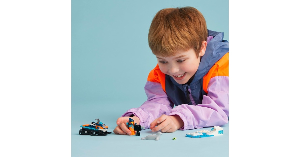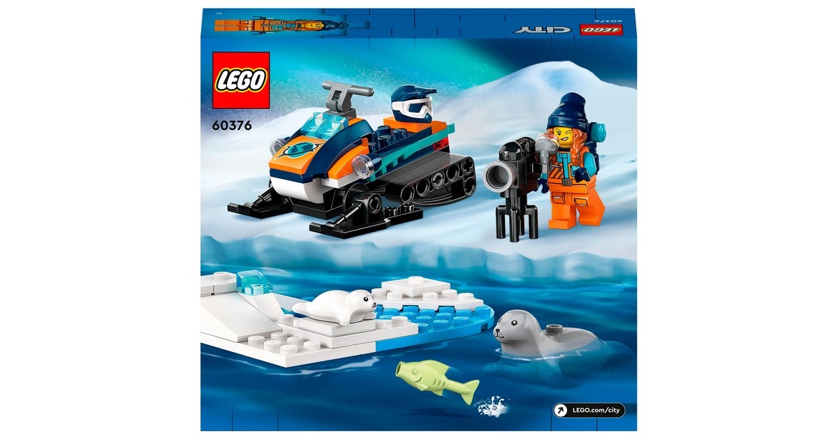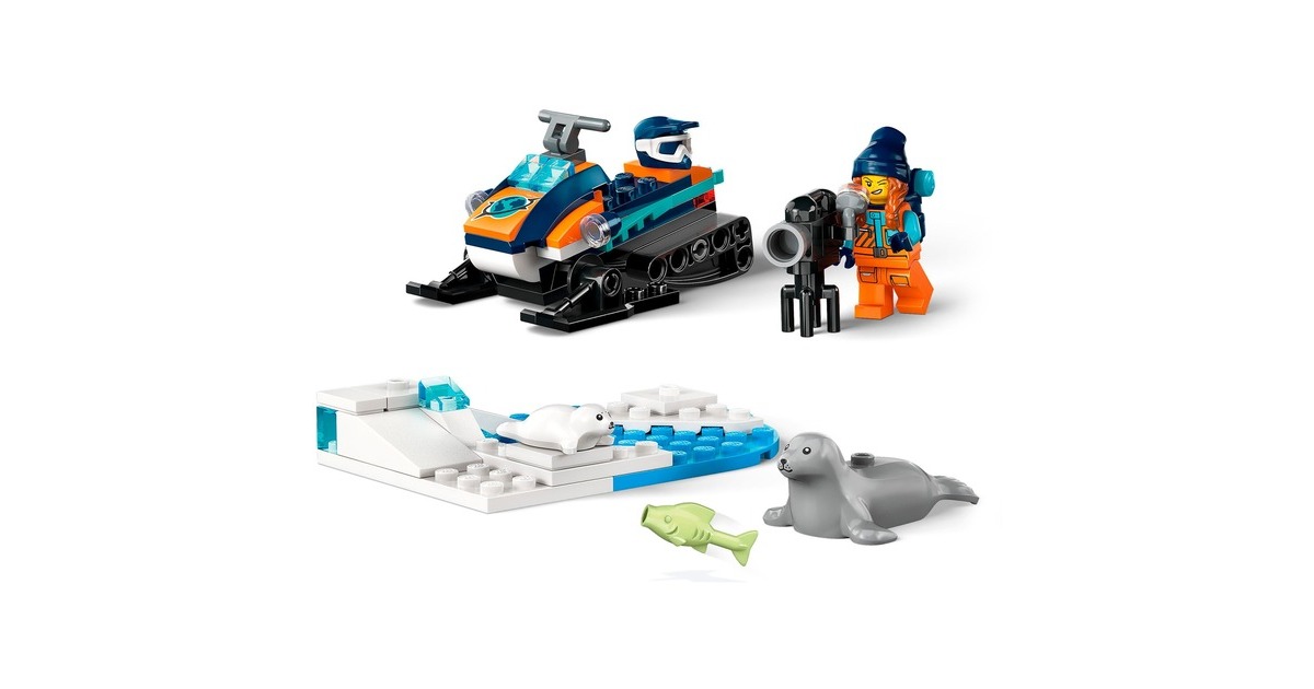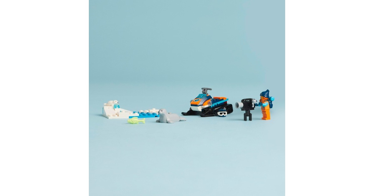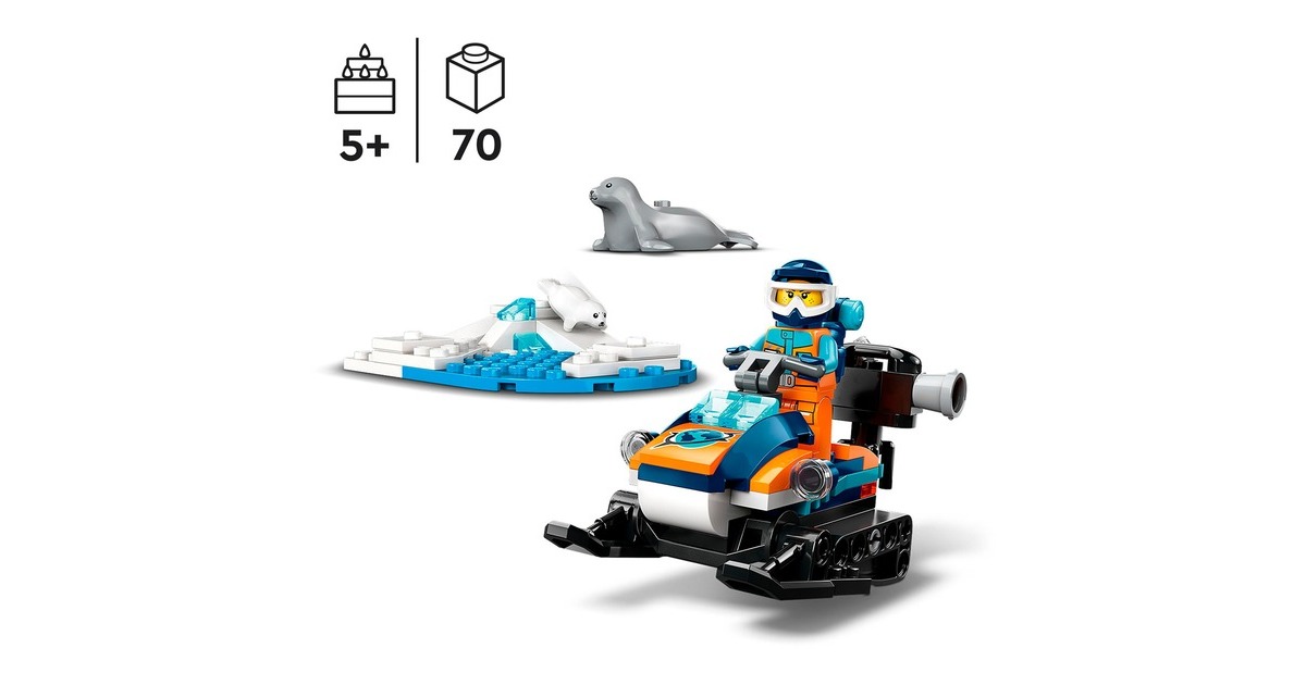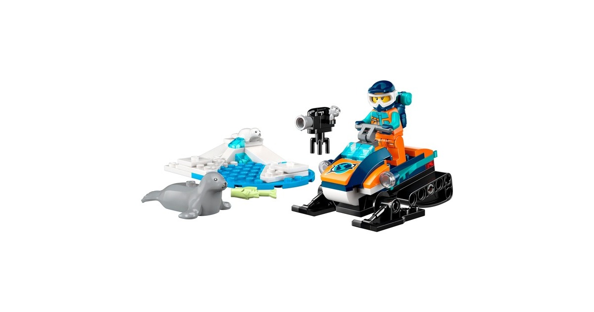 Mit diesem tollen Schneemobil erreicht der Forscher die entlegensten Gegenden der Arktis. Es hat Ketten und Kufen für Fahrten auf Schnee. Ein Rucksack und eine Kamera sind ebenfalls mit dabei, um Tiere in freier Wildbahn zu filmen. Eine Robbe und ihr Junges hat der Forscher bereits entdeckt! Das Set beinhaltet ein baubares Schneemobil, eine Forscher-Figur, eine Robbe und ein Robbenjunges mit Arktis-Kulisse. Art.-Nr.: 1907387