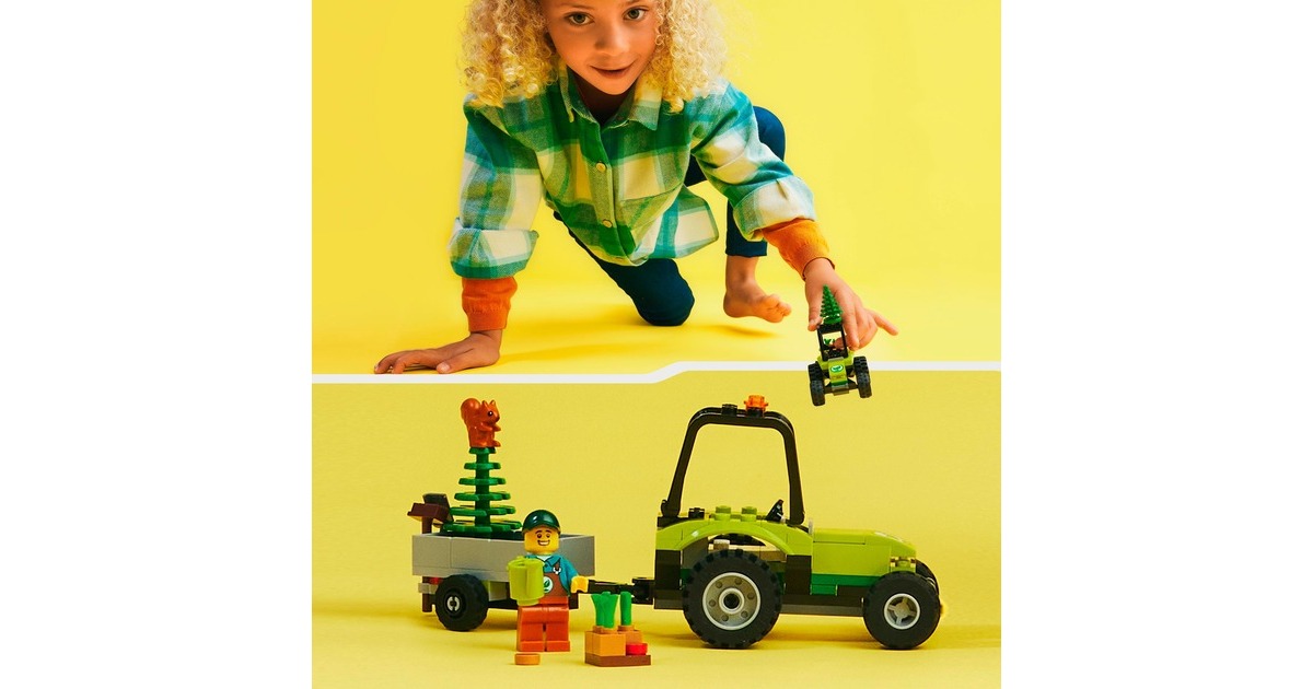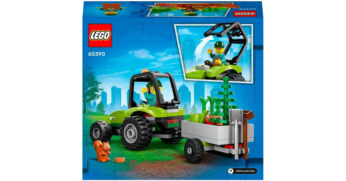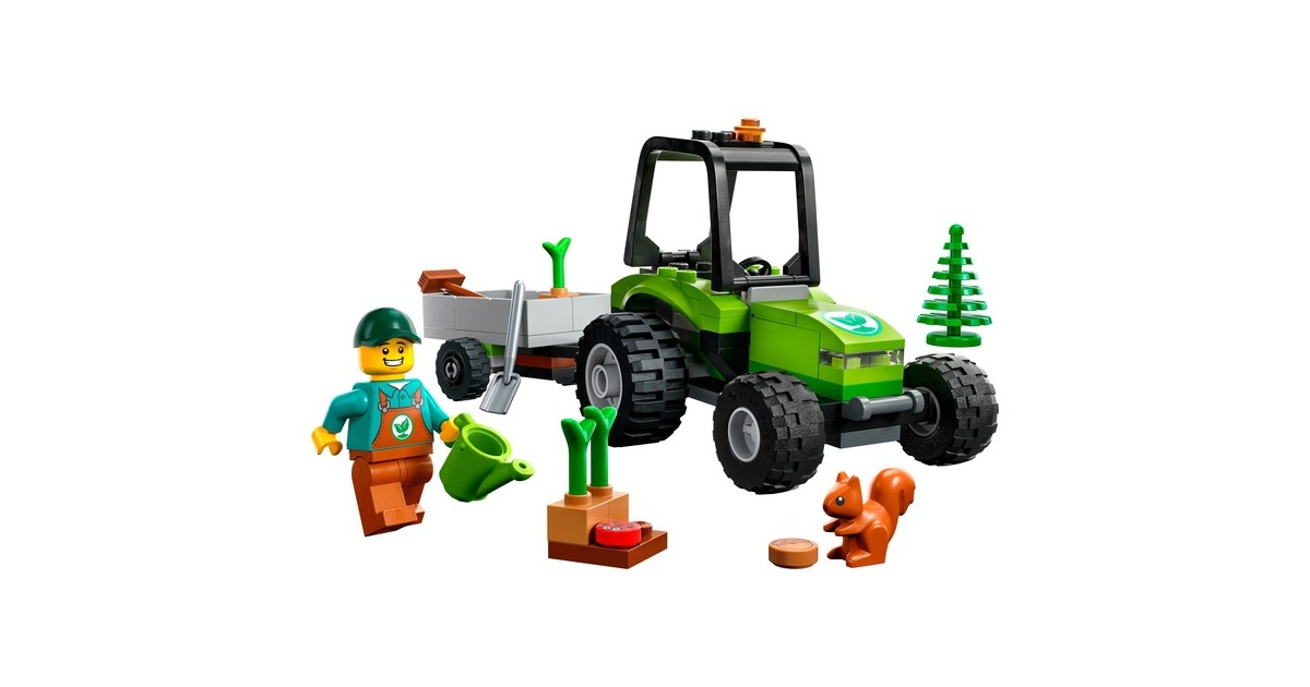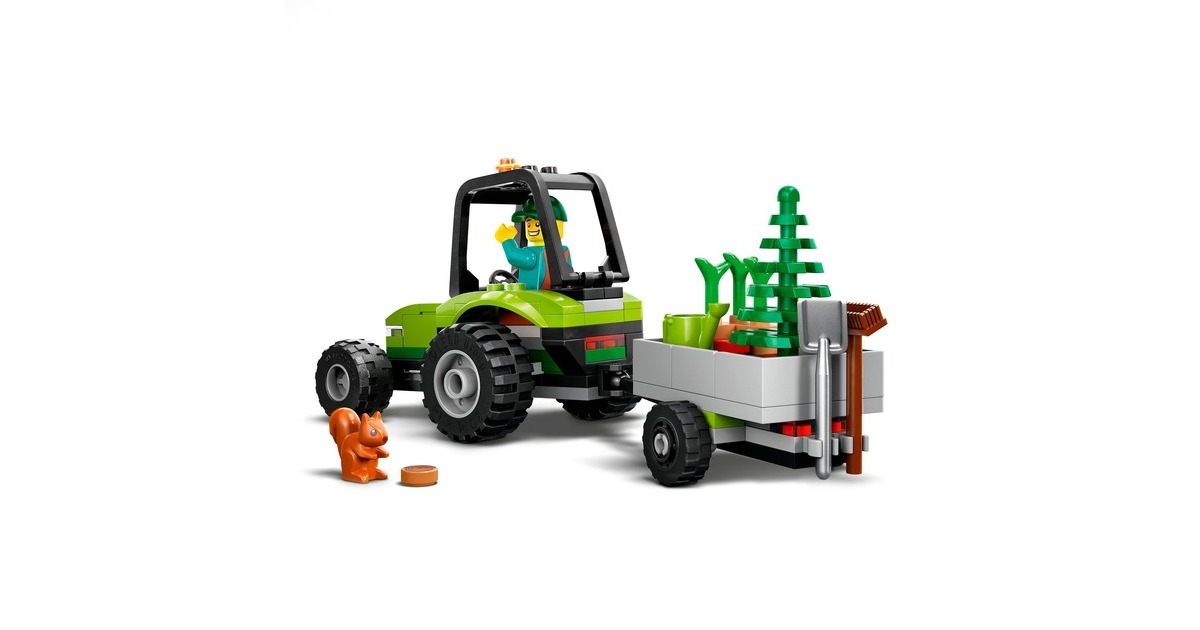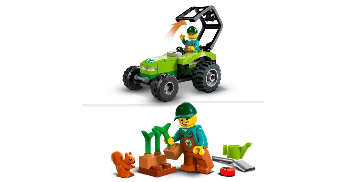 Dieses Konstruktionsspielzeug für Kinder ab 5 Jahren enthält einen Spielzeugtraktor mit Anhänger, einen Baum, Setzlinge und Gartengeräte sowie eine Gärtner-Minifigur und zwei Tierfiguren: Einen Marienkäfer und ein Eichhörnchen. Mit Schaufel und Besen kann der Anhänger beladen werden und los geht es auf eine Entdeckungsreise an Bord des grünen Spielzeugtraktors. Und dieser lässt sich dank seiner grobstolligen Reifen auch von unwegsamem Gelände nicht aufhalten. Die Kabinenabdeckung des Traktors lässt sich hochklappen.Art.-Nr.: 1870266