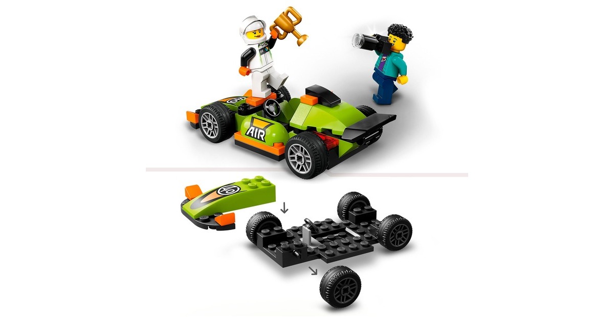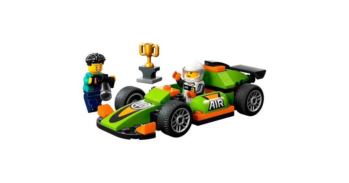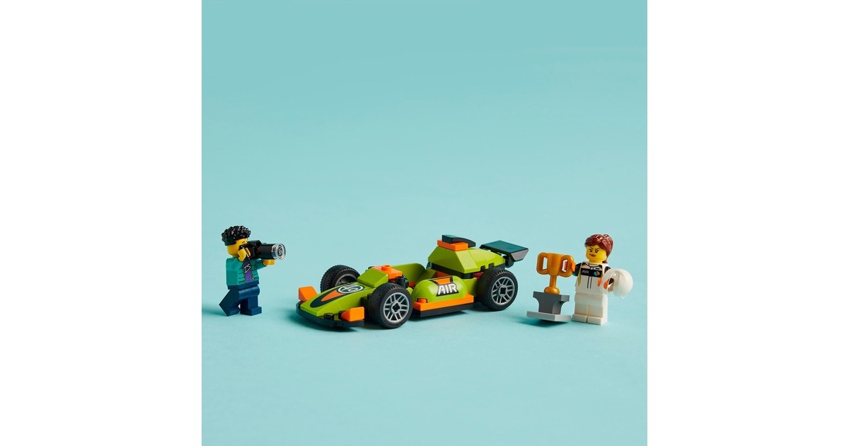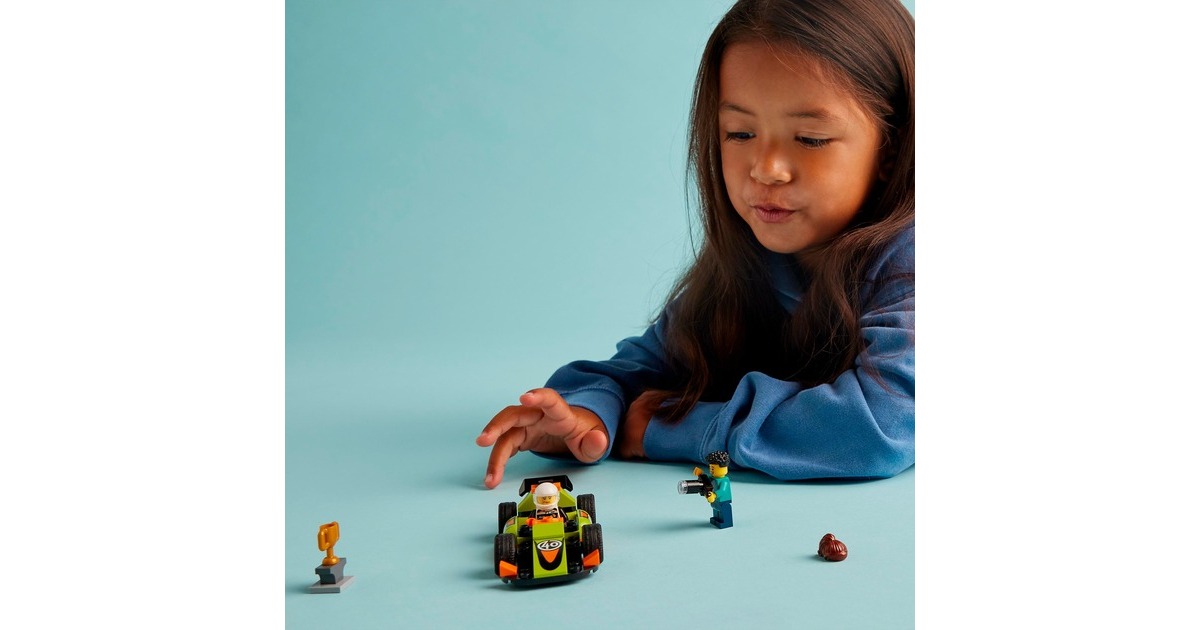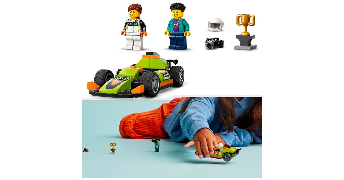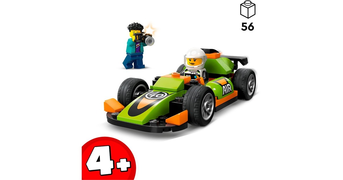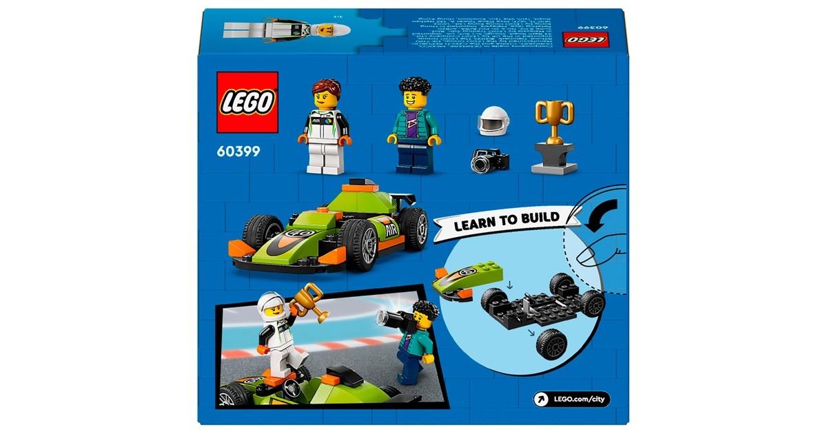 Dieser coole Rennwagen ist stets rasant unterwegs - und immer ein Kandidat auf den Sieg beim Rennen in LEGO City. Dieses Spielzeugauto aus 56 Teilen ist bereits für Kinder ab 4 Jahren gut baubar und verfügt über einen Heckspoiler und Rennreifen. Die Rennfahrer-Minifigur kommt im Rennanzug und mit Helm. Wenn sie den begehrten Siegerpokal in die Höhe stemmt, wird dieser Moment von der Fotografen-Minifigur festgehalten. Art.-Nr.: 100012303
