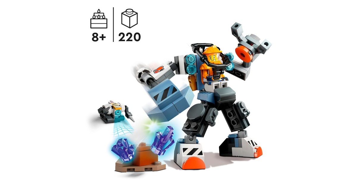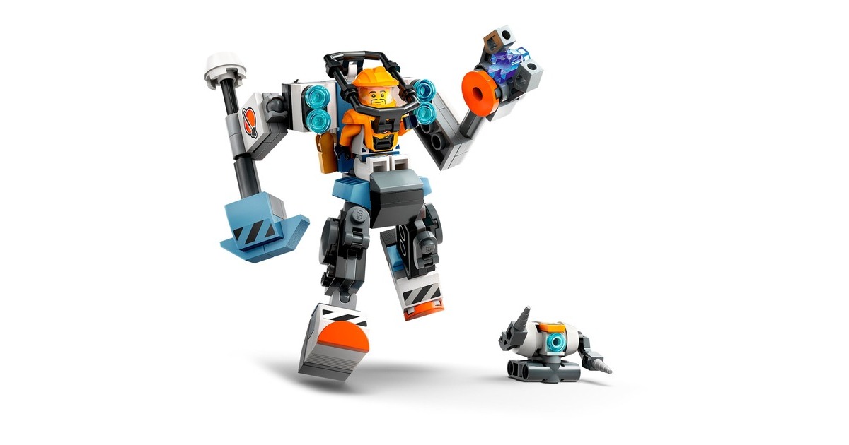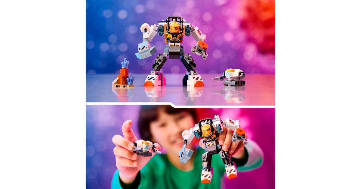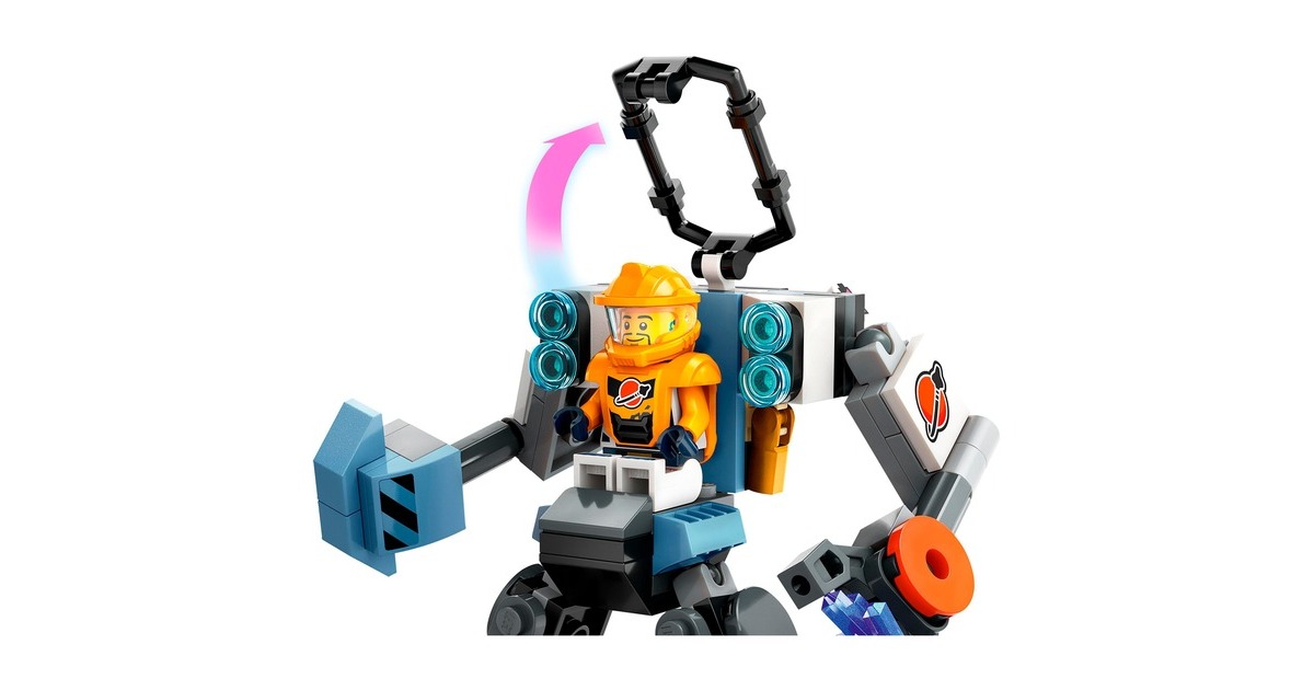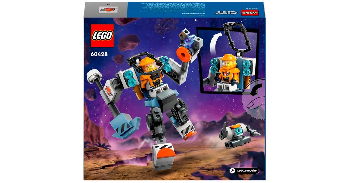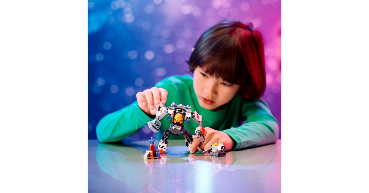 Mit diesem Weltraum-Mech erkunden die Weltraumforscher aus LEGO City fremde Planeten. Der zehn Zentimeter große Roboter wird aus 140 LEGO-Teilen zusammengebaut und hat einen Hammer und eine Greifklaue an den Armen. Im Cockpit kann die Weltraumforscher-Minifigur Platz nehmen. Ein kleinerer Bauroboter steht dem Weltraum-Mech bei seinen Projekten zur Seite.Art.-Nr.: 100012350
