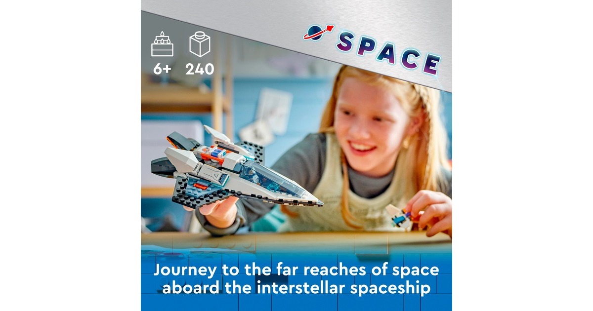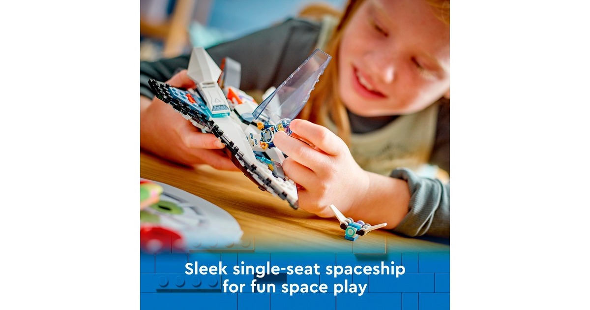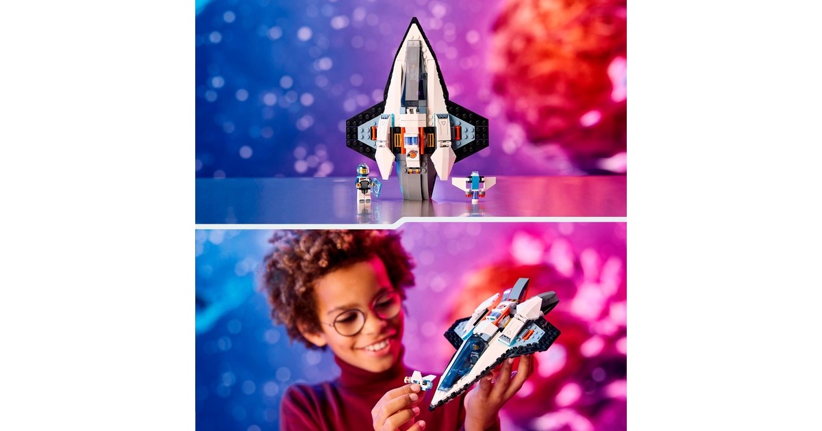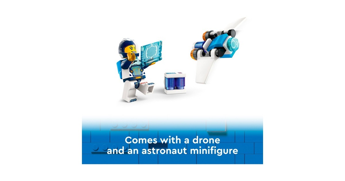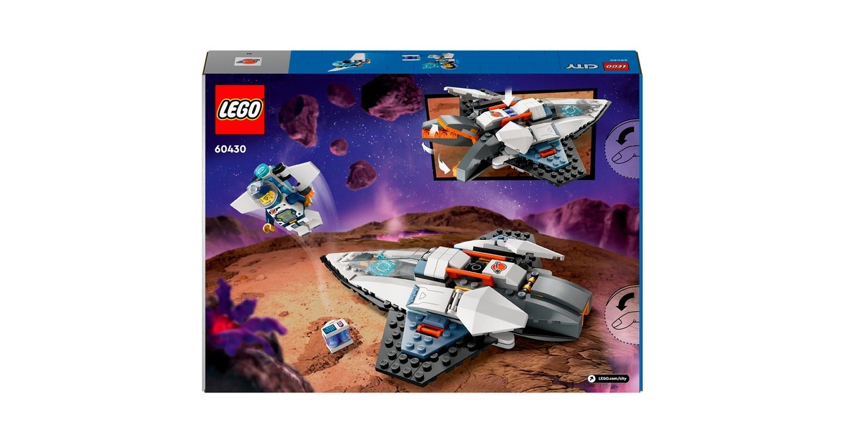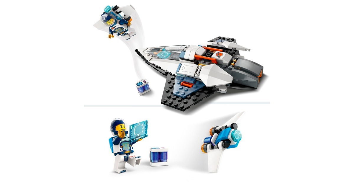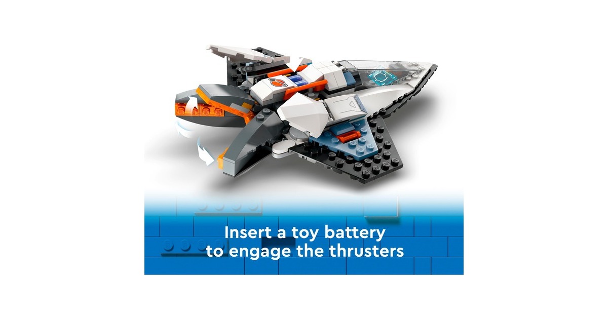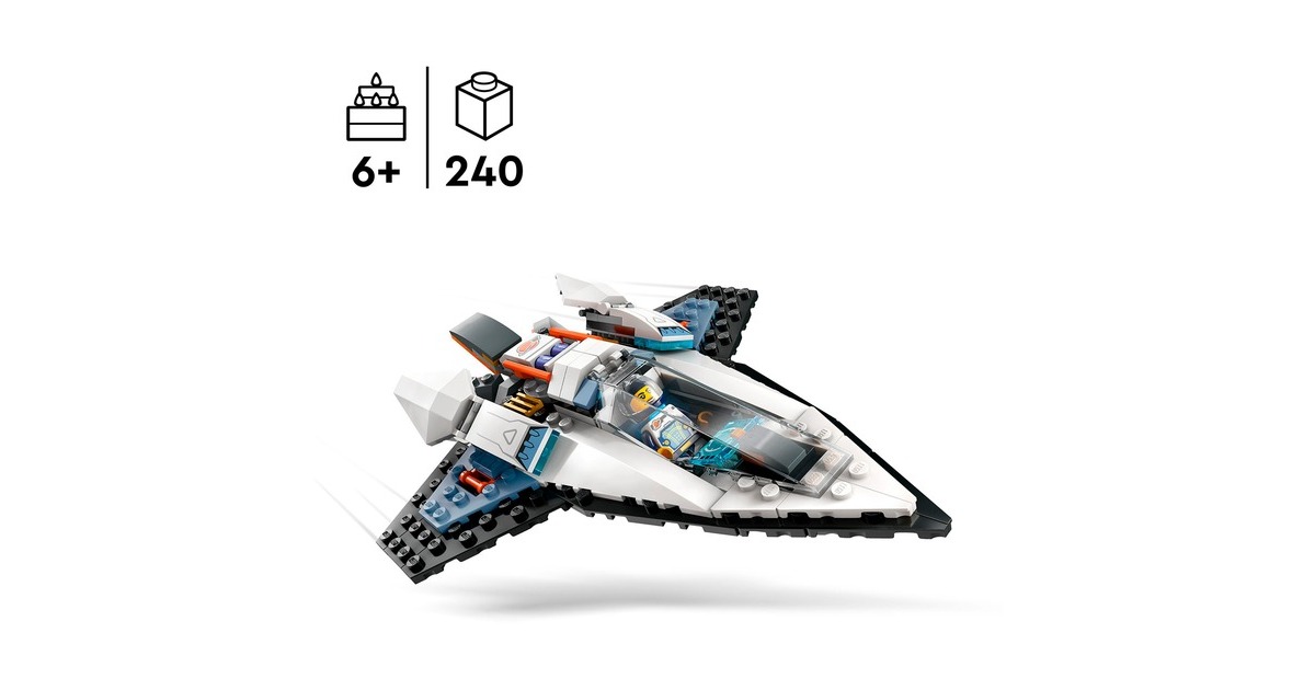 Mit LEGO City geht es nun auch in den Weltraum - an Bord dieses coolen Raumschiffs! Dieses superschnelle Spielzeug-Raumschiff verfügt über ausklappbare Hauptschub-Düsen. Mit dabei ist außerdem ein Drohnenroboter, der in einen Raketenrucksack für die beiliegende Astronaut-Minifigur verwandelt werden kann. Das Set besteht aus 240 LEGO-Teilen.Art.-Nr.: 100012352